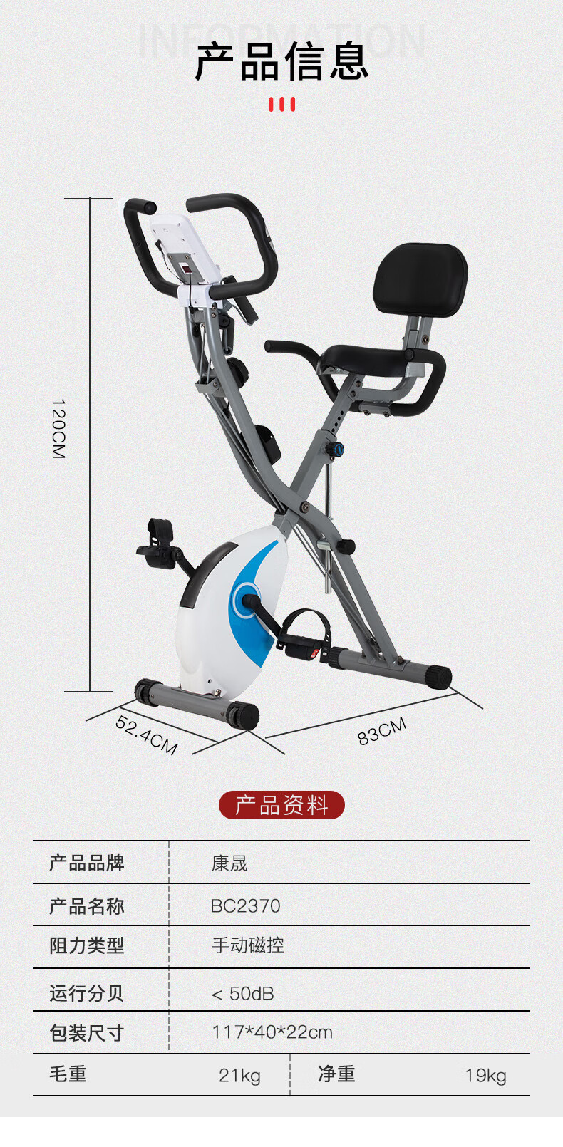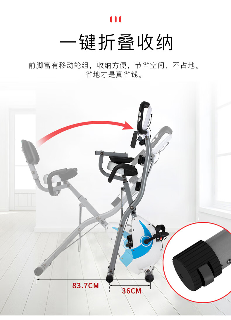 Kangsheng Kangsheng Spinning Bike Foldable Home Exercise Bike Magnetic Silent Pedal Bicycle Indoor Sports Equipment Light Blue Upgraded + Armrest + Backrest