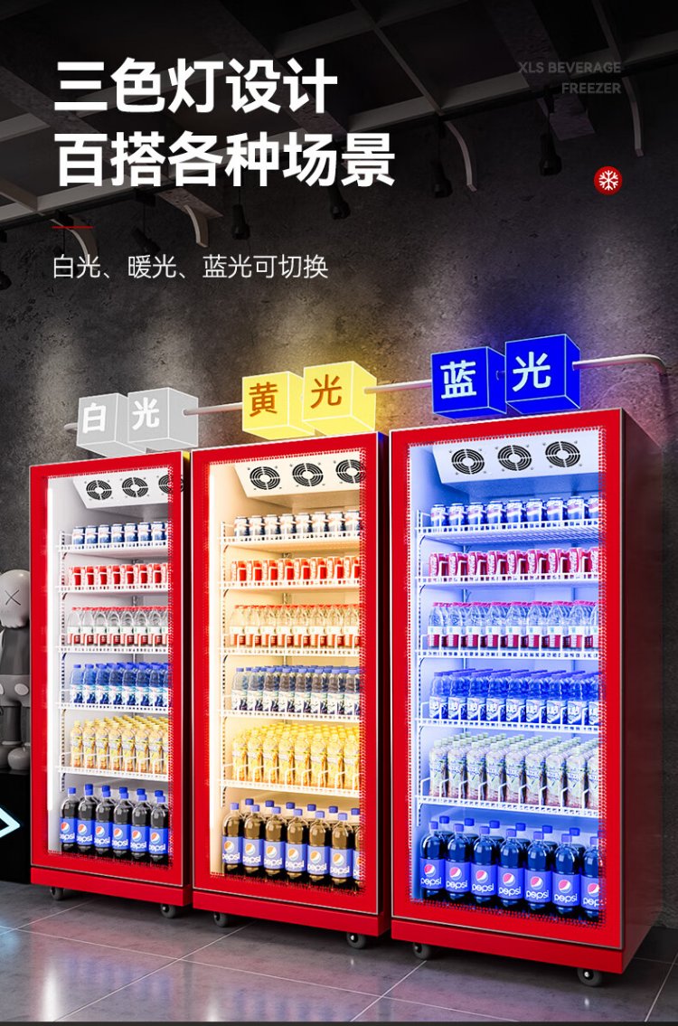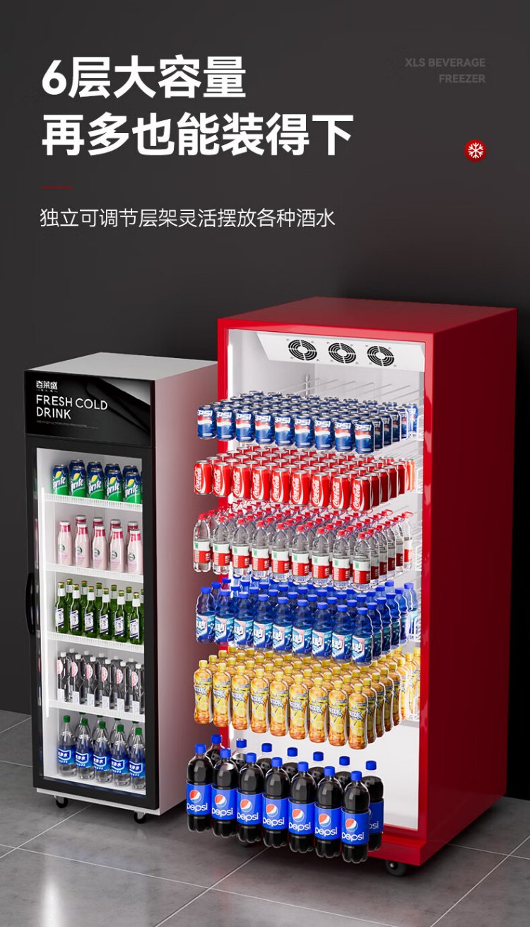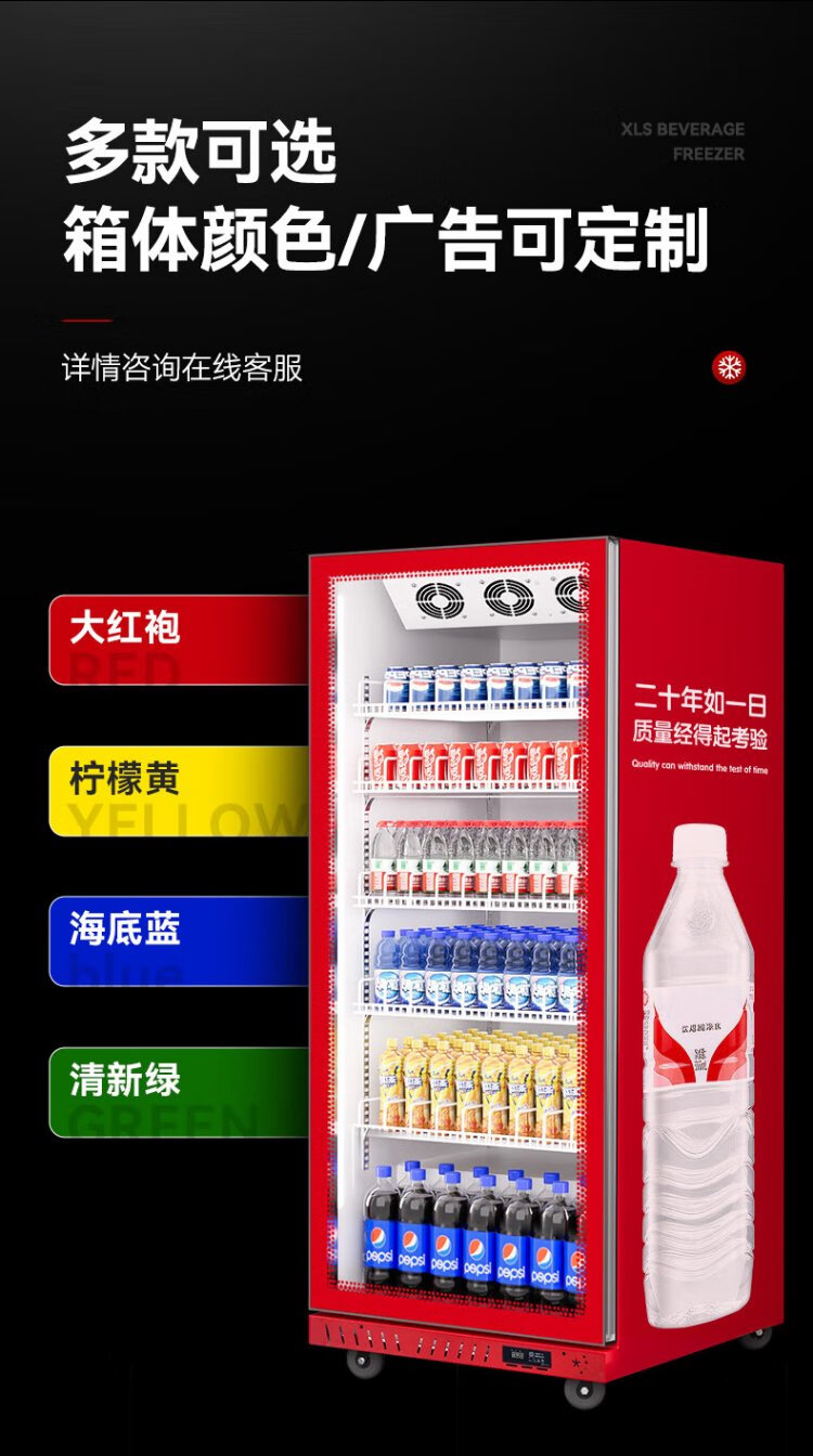 Xilaisheng display cabinet refrigerated beer cabinet beverage cabinet supermarket convenience store refrigerator four-door freezer commercial bar wine fresh cabinet full screen cold drink cabinet air-cooled rebound door full screen borderless 2 meters high | double door 1.1 meters long | full screen high-end model