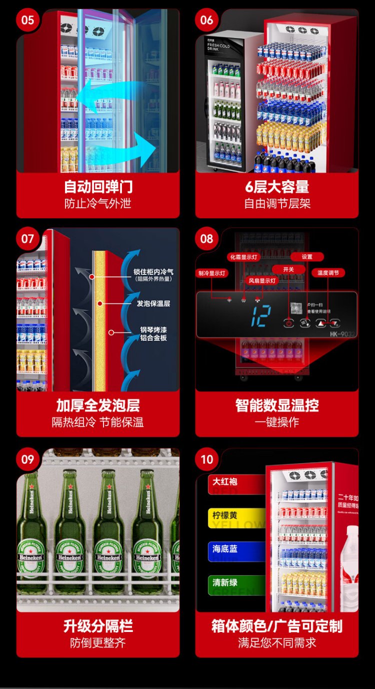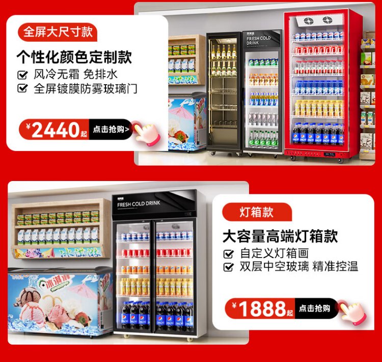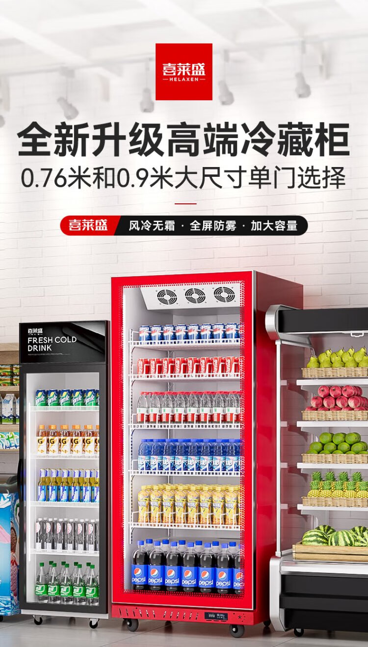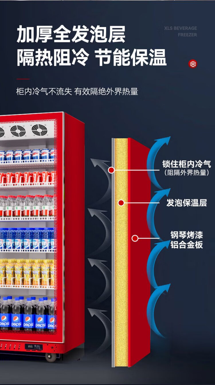 Xilaisheng display cabinet refrigerated beer cabinet beverage cabinet supermarket convenience store refrigerator four-door freezer commercial bar wine fresh cabinet full screen cold drink cabinet air-cooled rebound door full screen borderless 2 meters high | double door 1.1 meters long | full screen high-end model