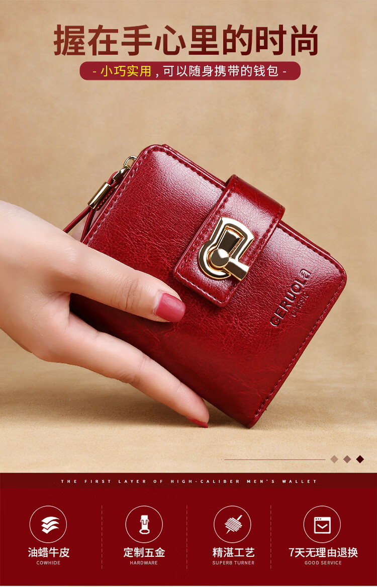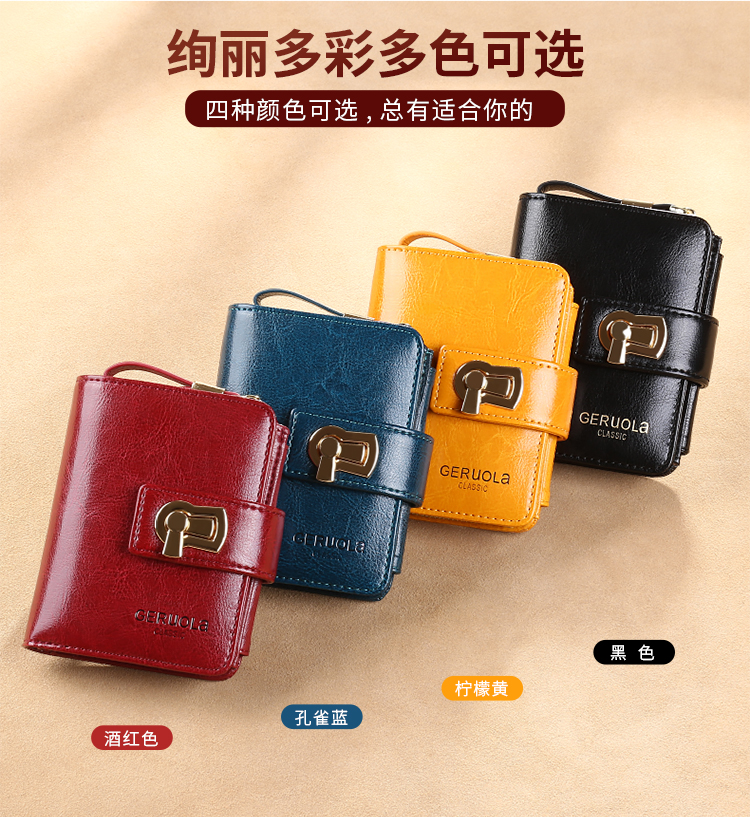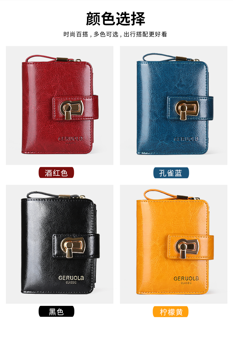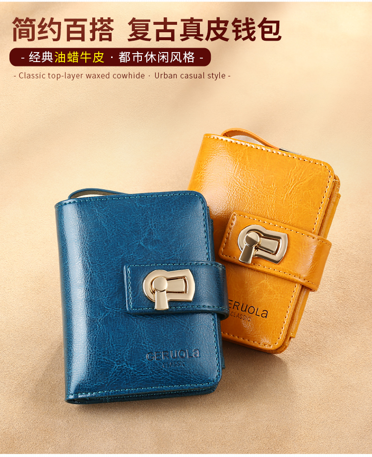 GERUOLA 2025 New Wallet Women's Genuine Leather Folding Short Simple Zipper Wallet Card Case Integrated Large Capacity Coin Purse Peacock Blue Anti-Theft Brush