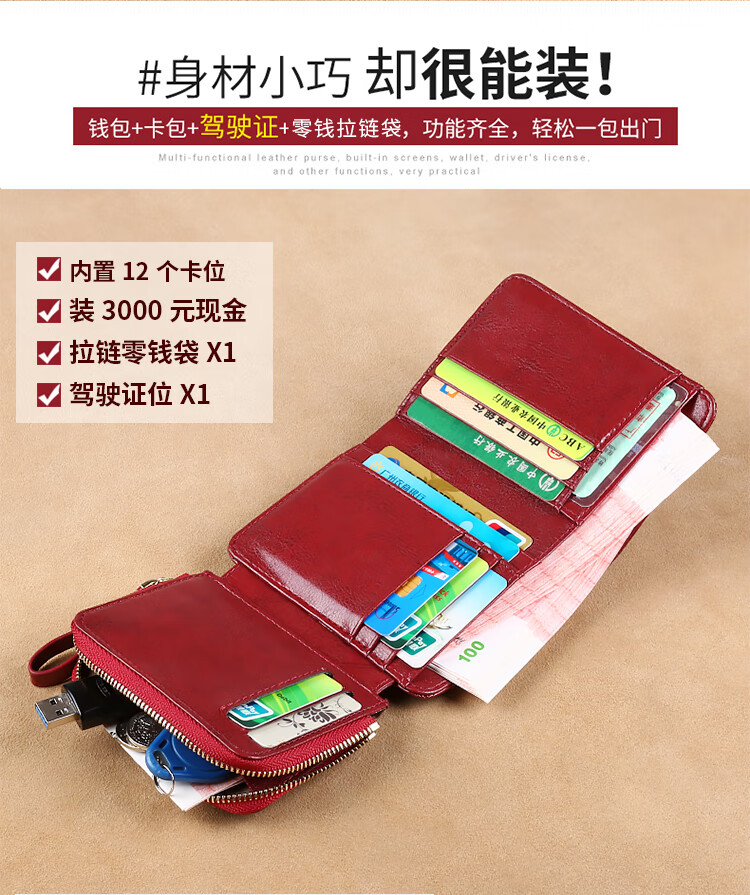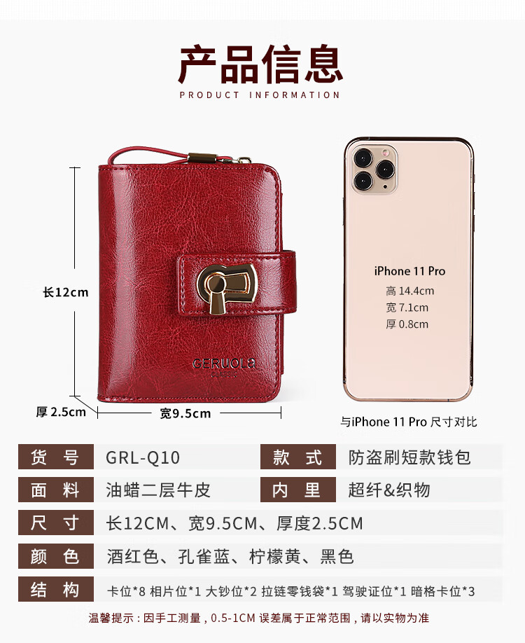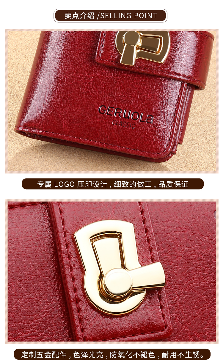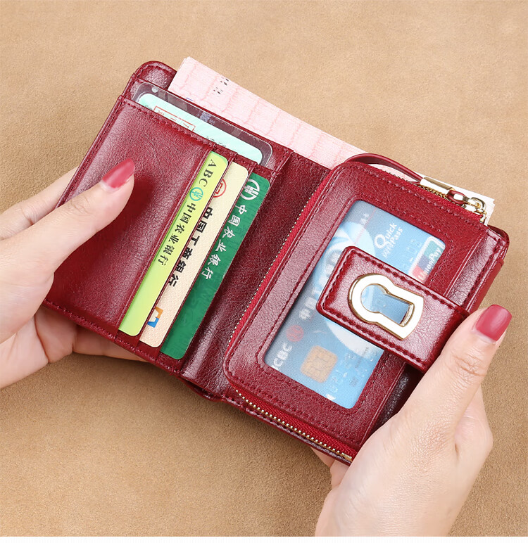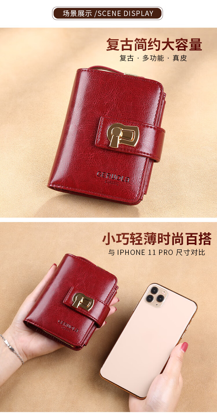 GERUOLA 2025 New Wallet Women's Genuine Leather Folding Short Simple Zipper Wallet Card Case Integrated Large Capacity Coin Purse Peacock Blue Anti-Theft Brush