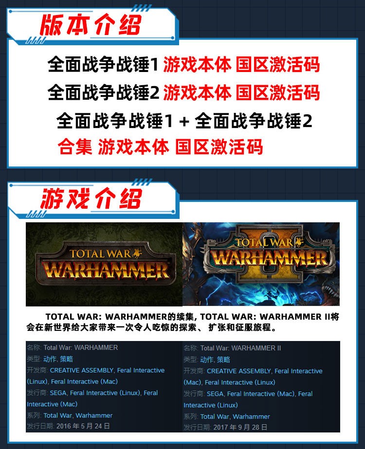 PC game steam Total War Warhammer 1+2 Warhammer 2 National Region Activation Code CDKEY Warhammer Collection National Region Activation Code Total War Warhammer 1+2 Collection