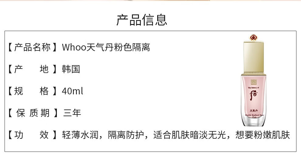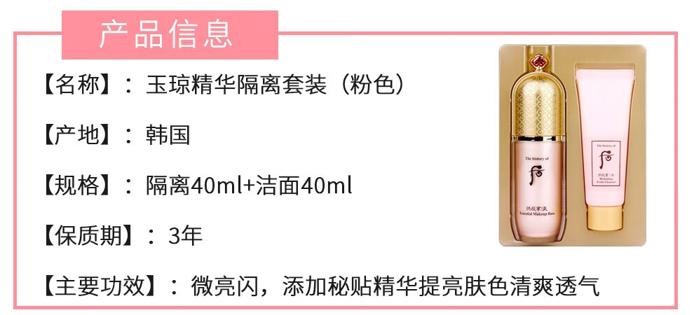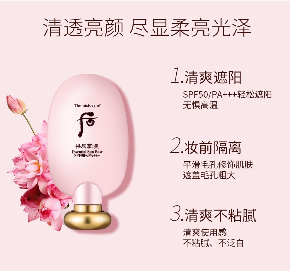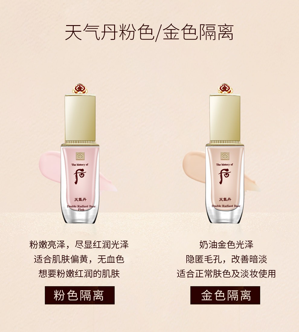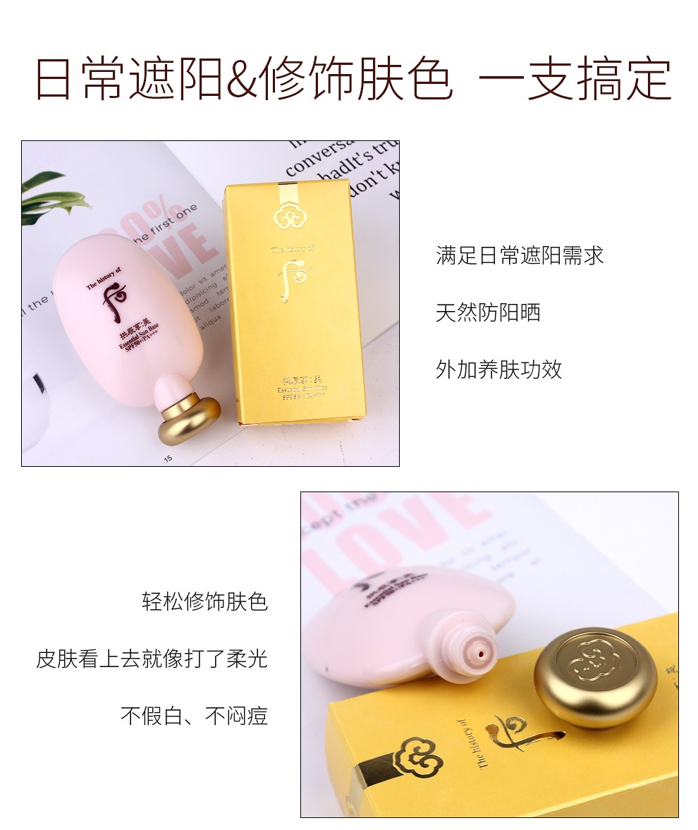 The history of Whoo Korean isolation cream Jade Rong Essence before makeup makeup natural and docile skin care products for women Weather Dan Pink Isolation 40ml