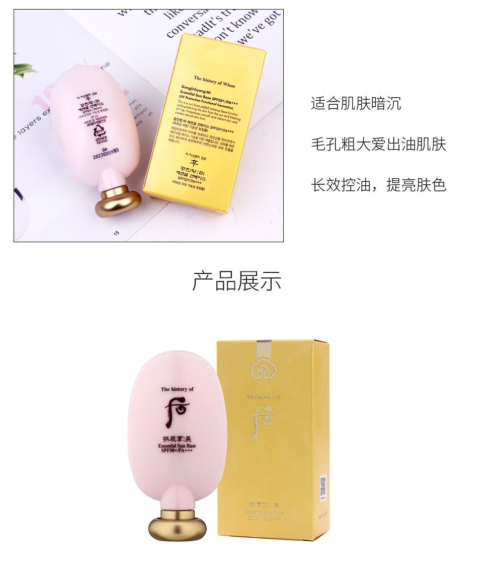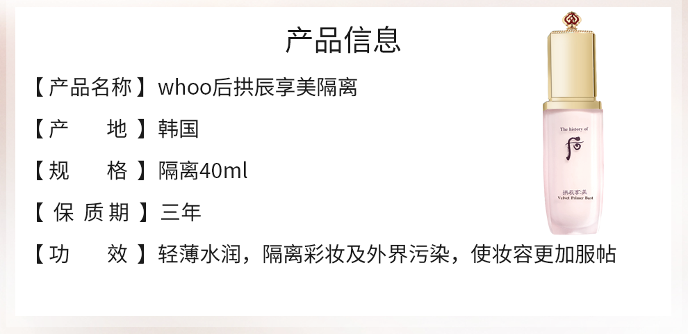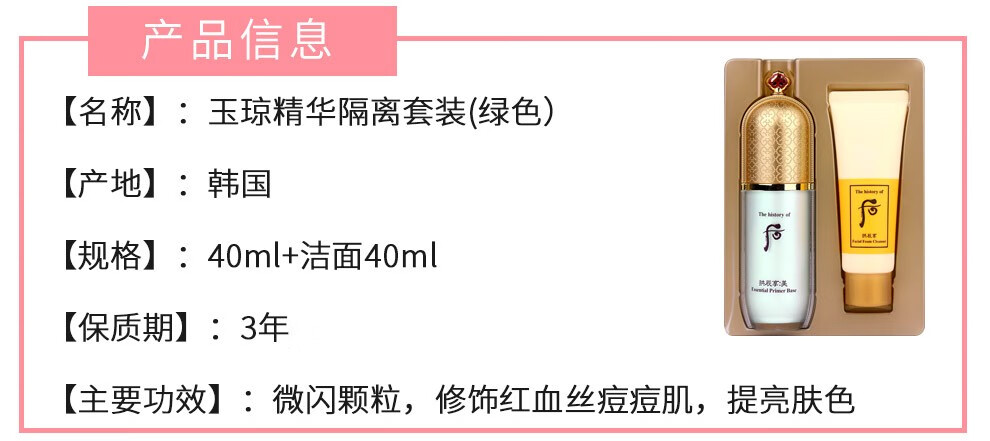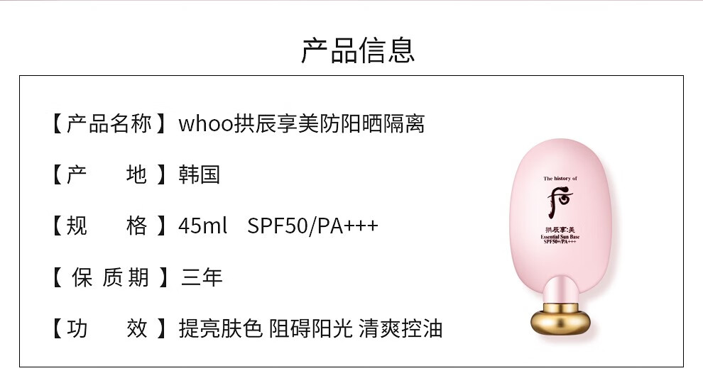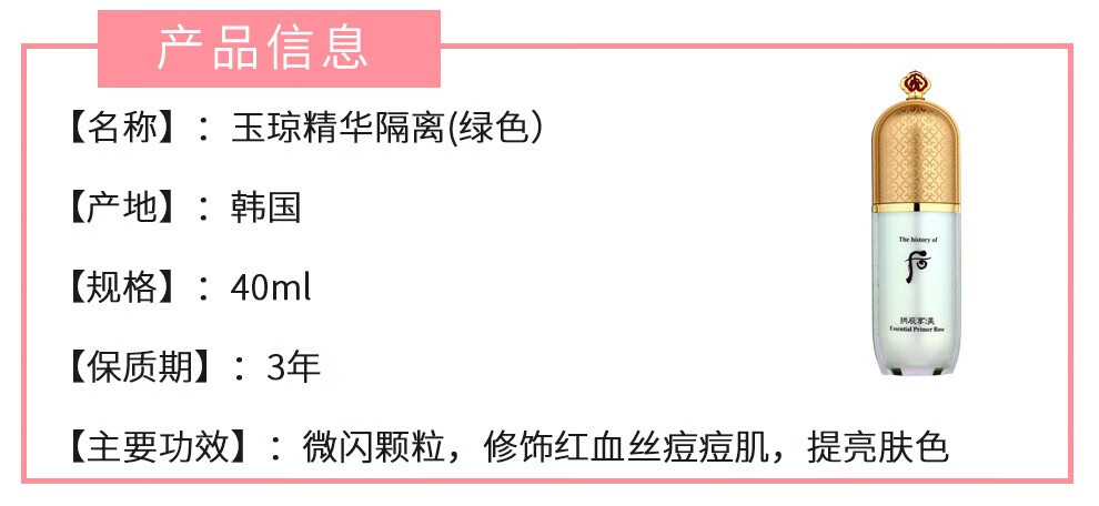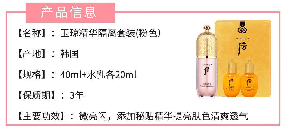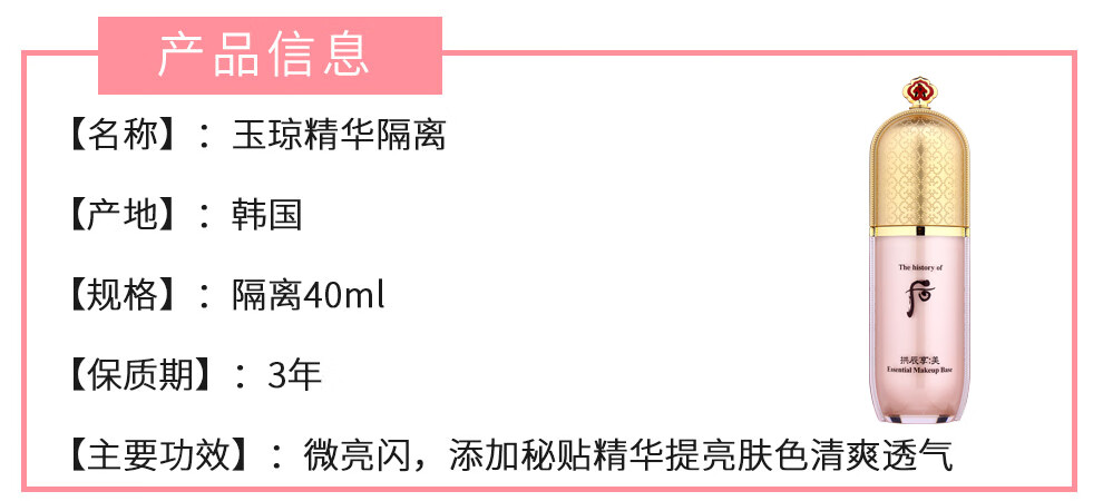 The history of Whoo Korean isolation cream Jade Rong Essence before makeup makeup natural and docile skin care products for women Weather Dan Pink Isolation 40ml