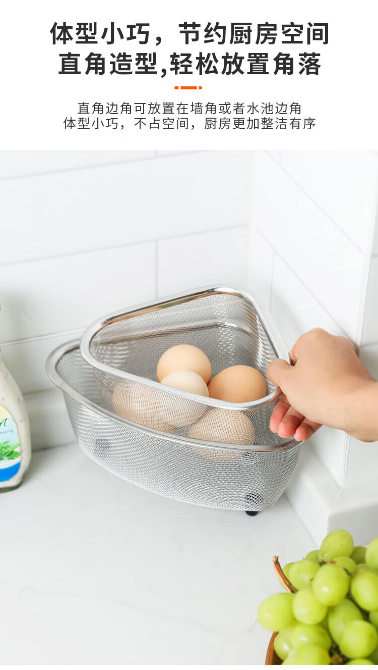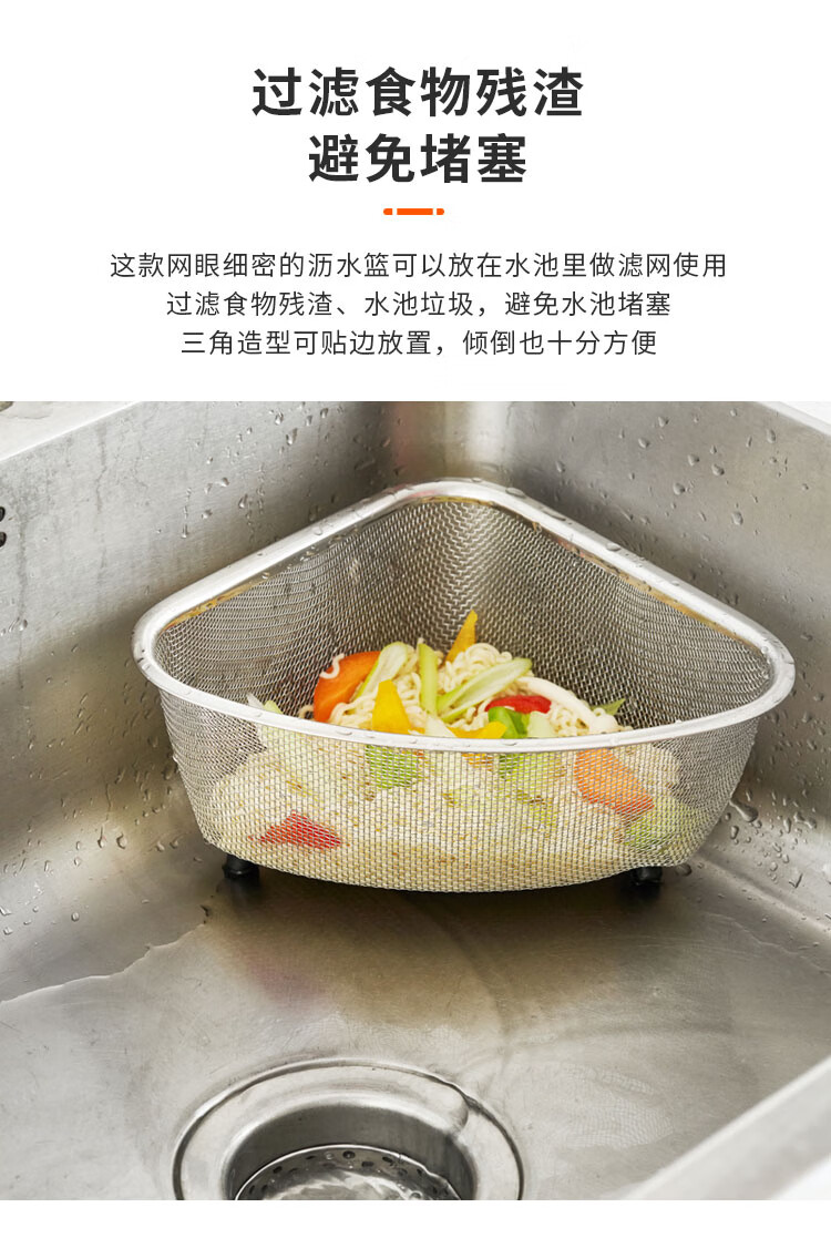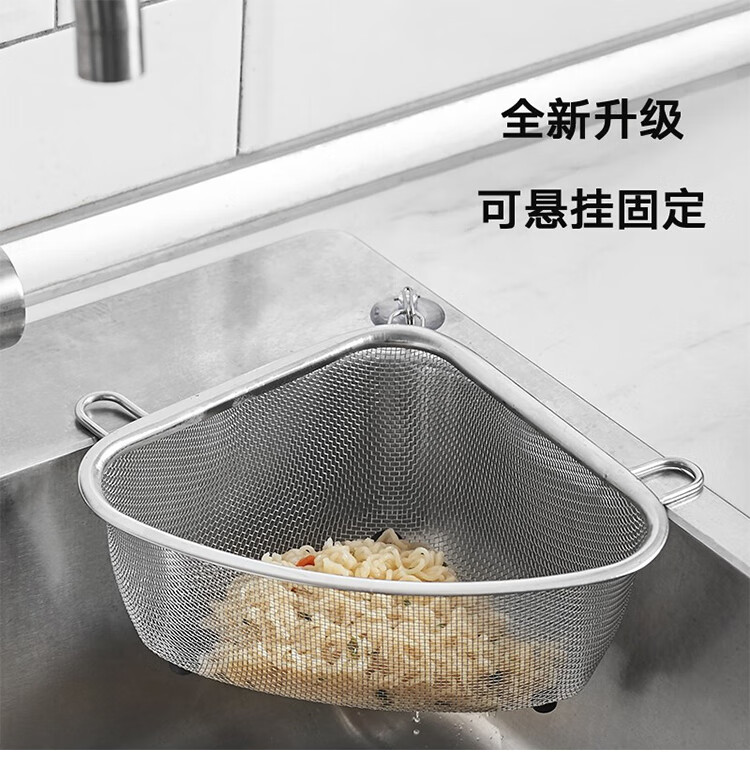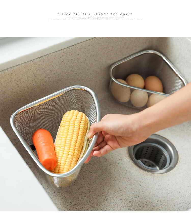 Four-month triangle drain basket, sink drain rack, kitchen stainless steel rack, sink leftovers drain net filter, square (can hold ginger, onion and garlic) filter artifact