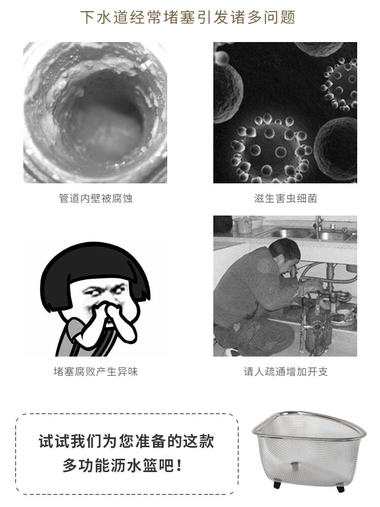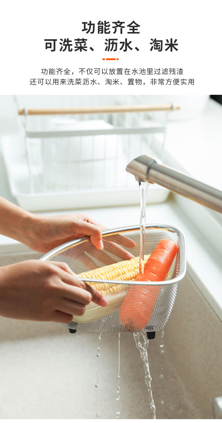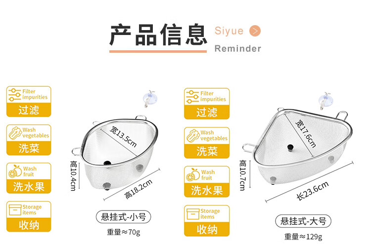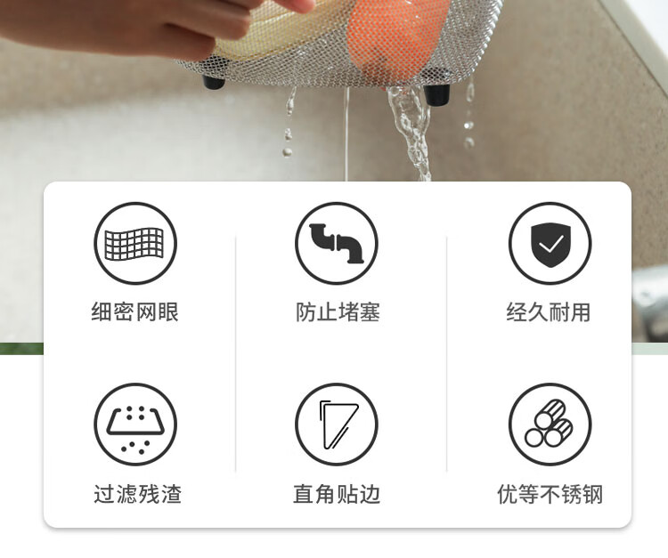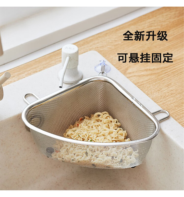 Four-month triangle drain basket, sink drain rack, kitchen stainless steel rack, sink leftovers drain net filter, square (can hold ginger, onion and garlic) filter artifact