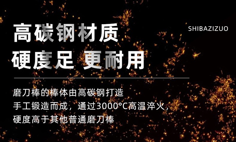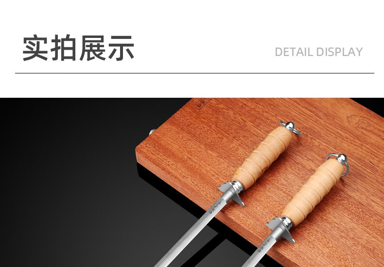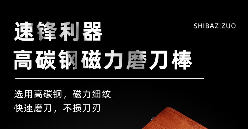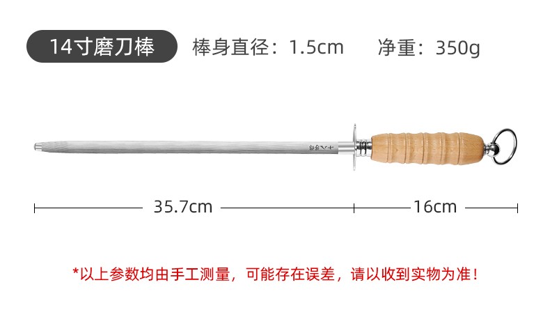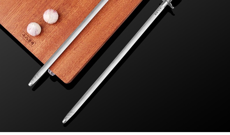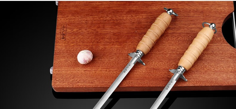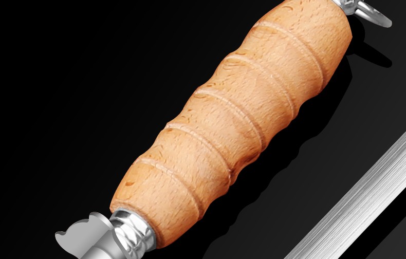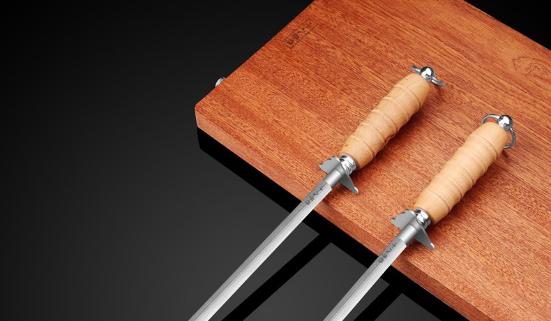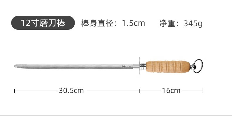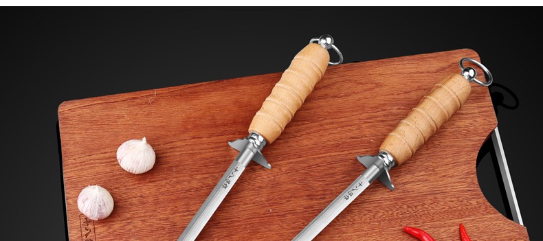 Shibazi fine-grained sharpening stick, professional commercial butchery and meat stall special sharpening stick, household kitchen knife sharpening tool, 12-inch wooden handle sharpening stick