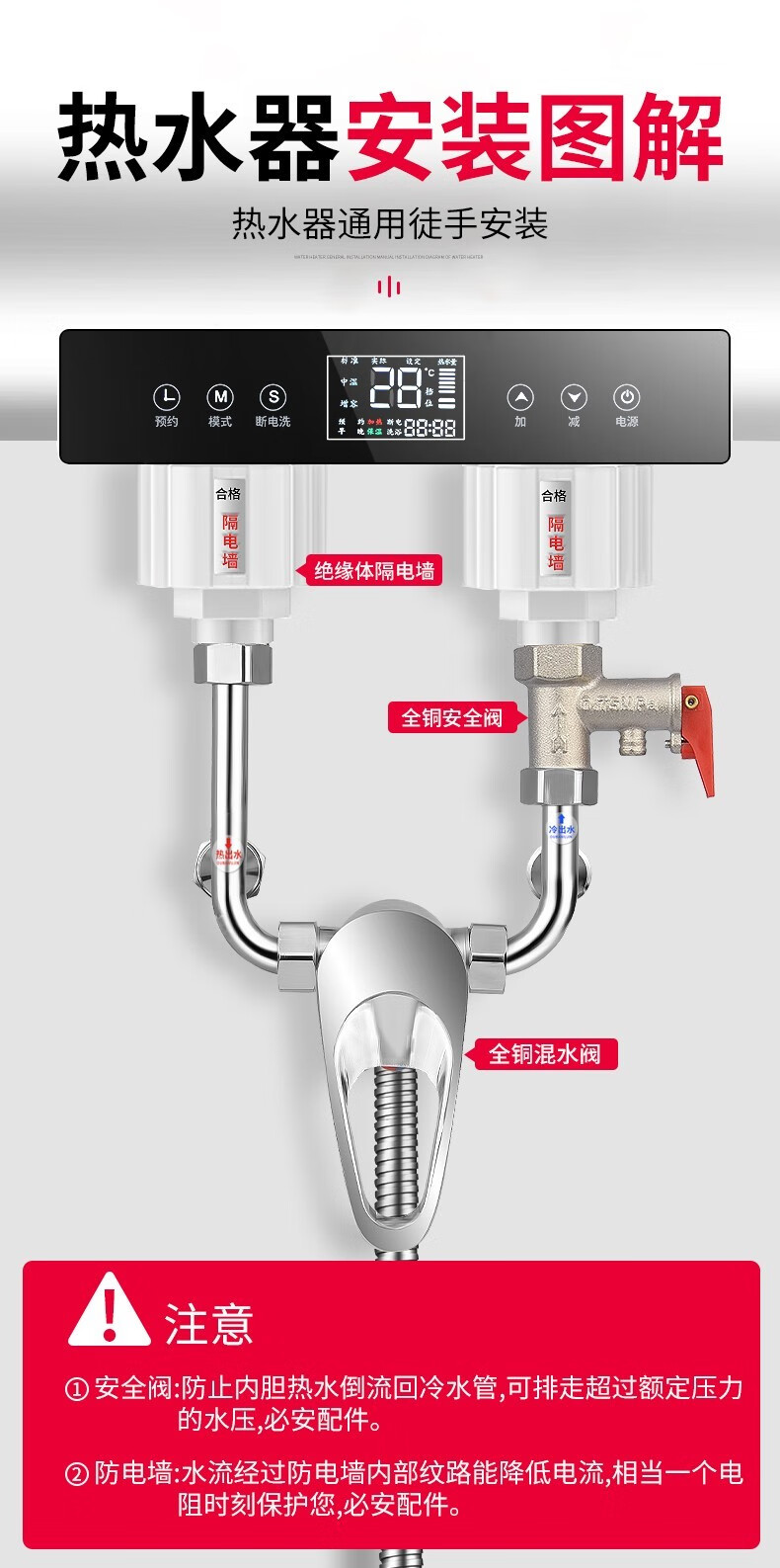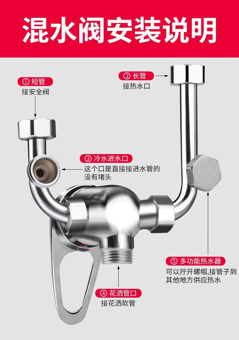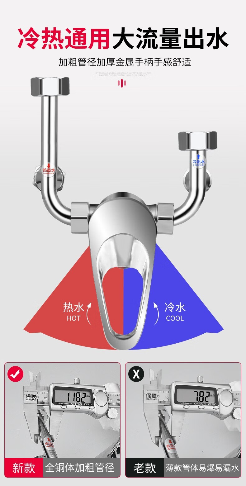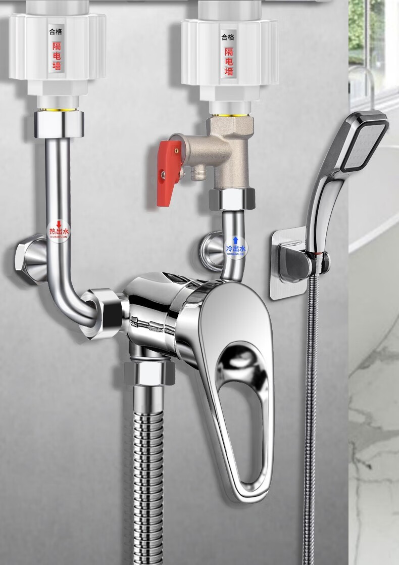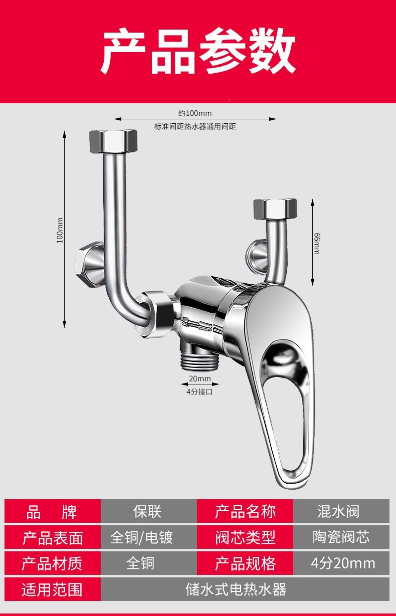 Baolian electric water heater mixing valve hot and cold faucet accessories collection hot and cold switch U-shaped mixing valve faucet universal all-copper water heater mixing valve universal interface