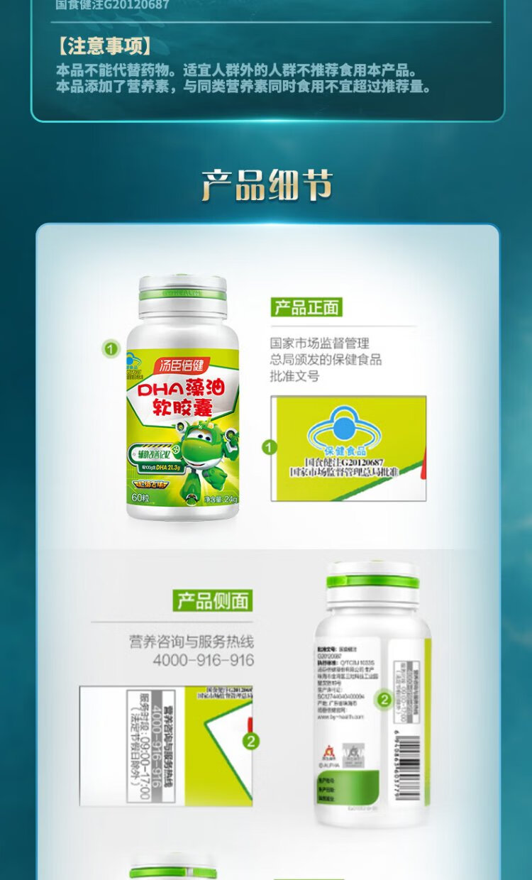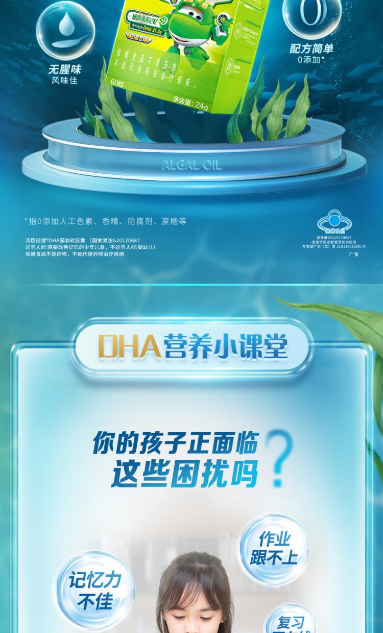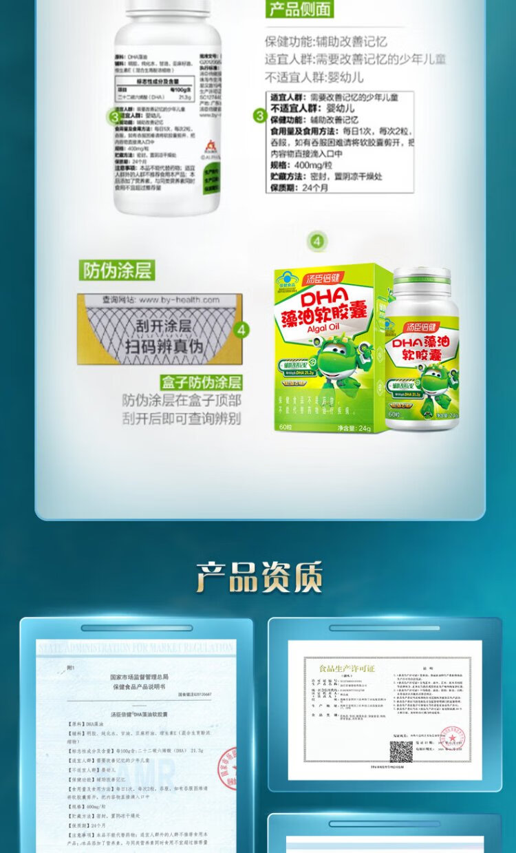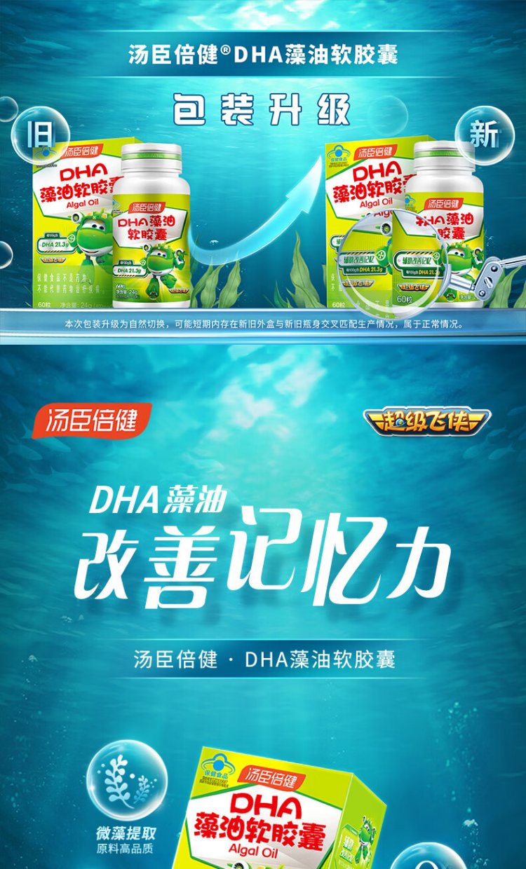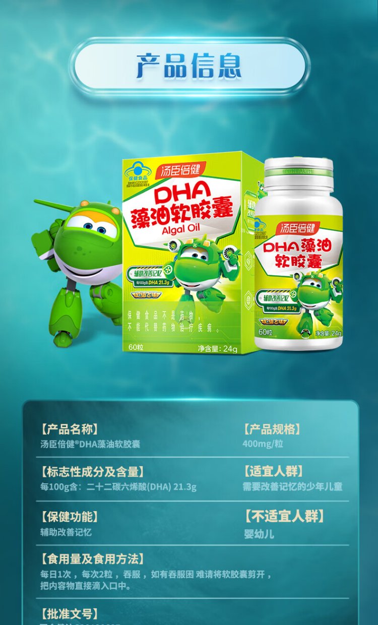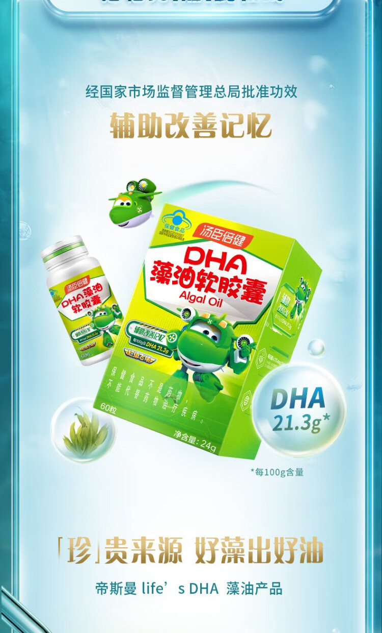 Tomson By-Health 6-18 children, adolescents and students to assist in improving memory and supplementing DHA nutrition DHA algae oil soft capsules 30 capsules*2