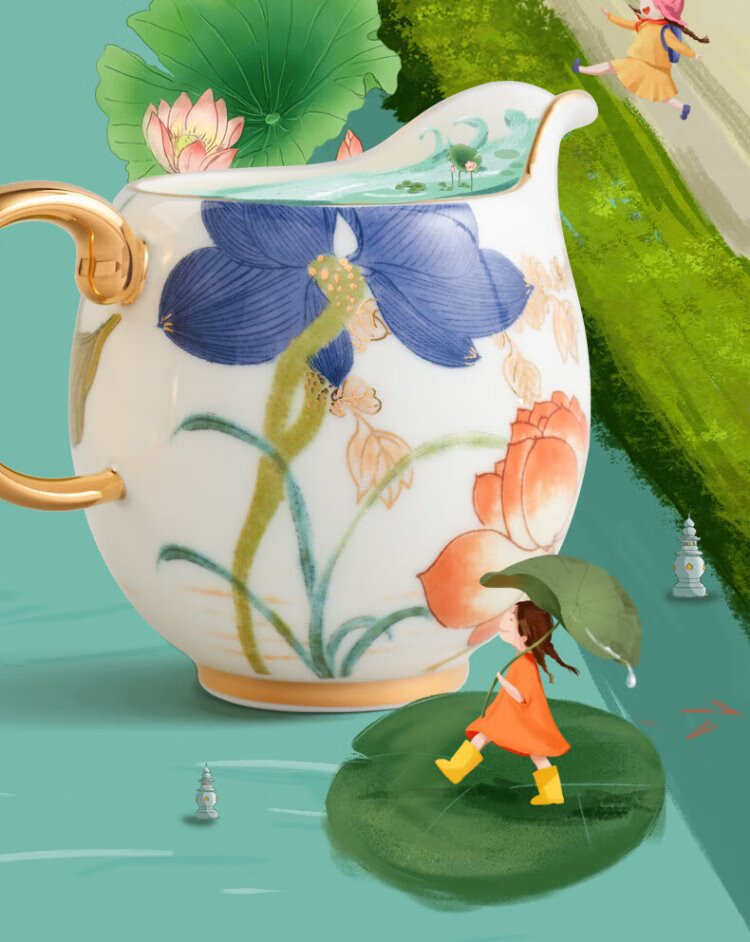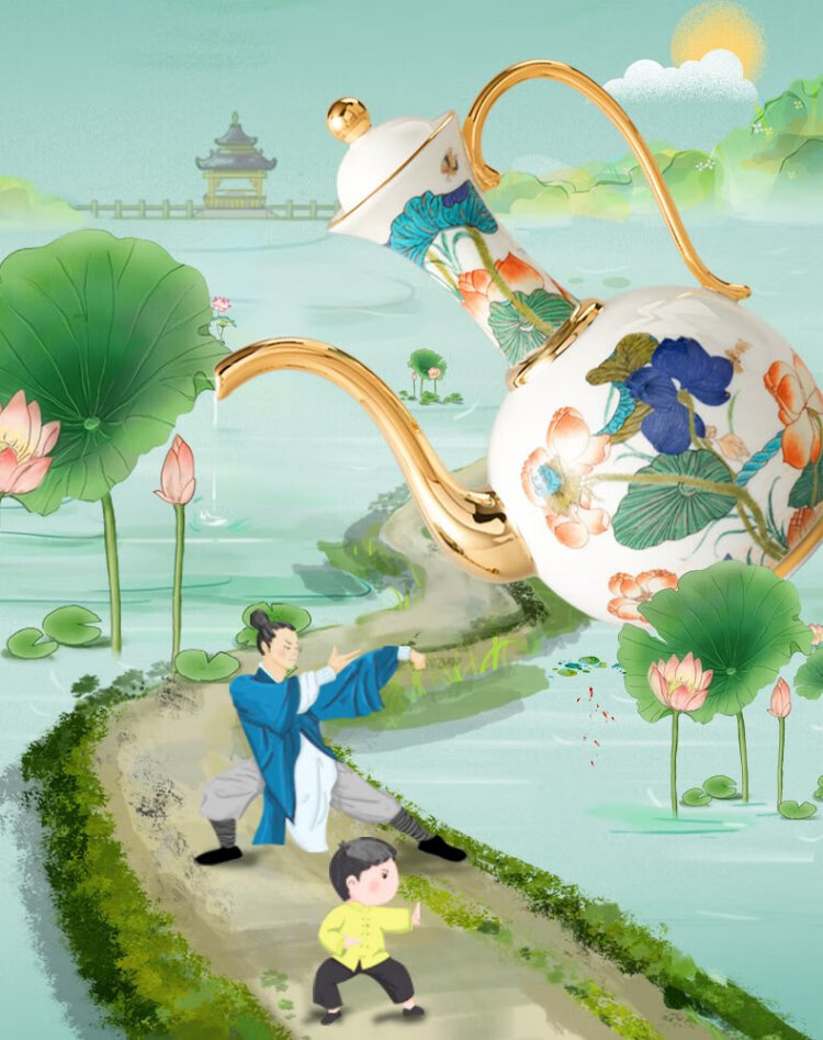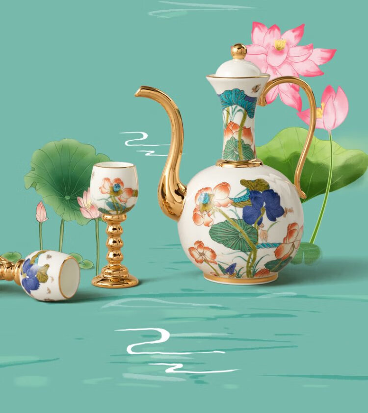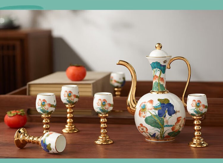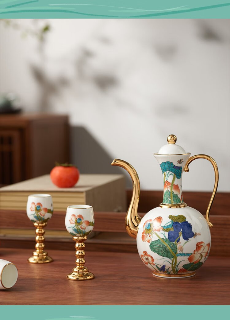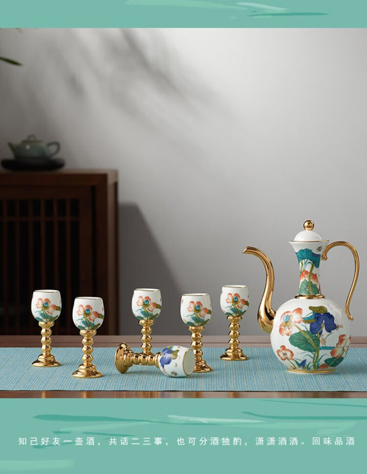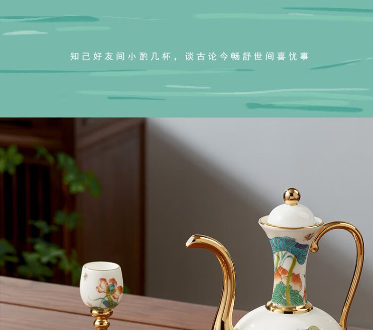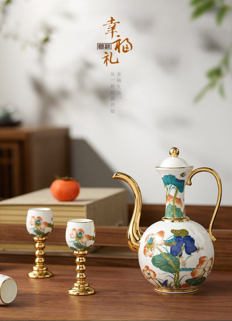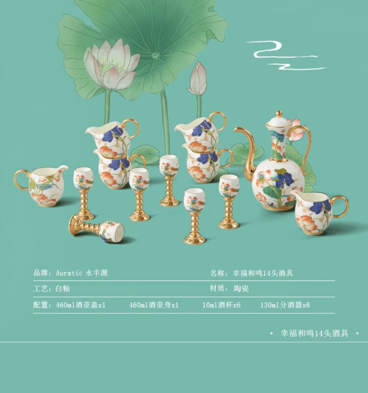 Yongfengyuan Yongfengyuan Xingfu Heming 14-head ceramic wine set, wine pot and wine dispenser, Chinese gift set, 14-head set