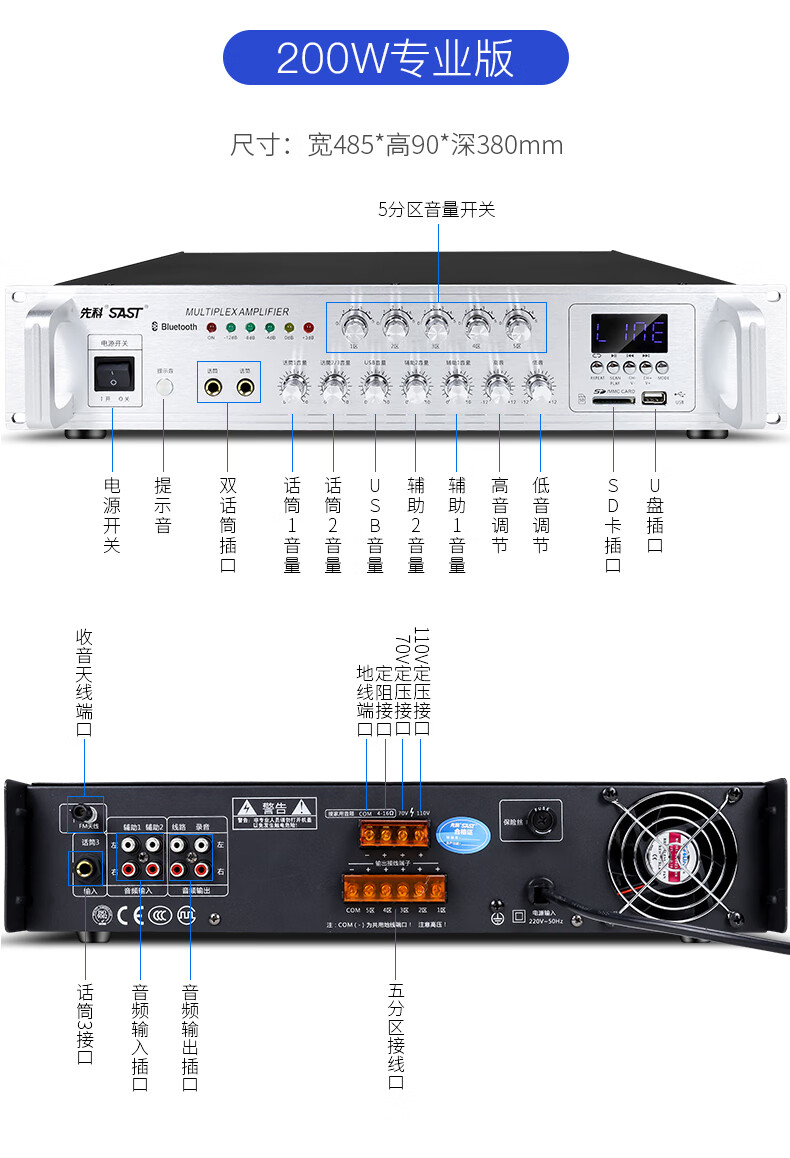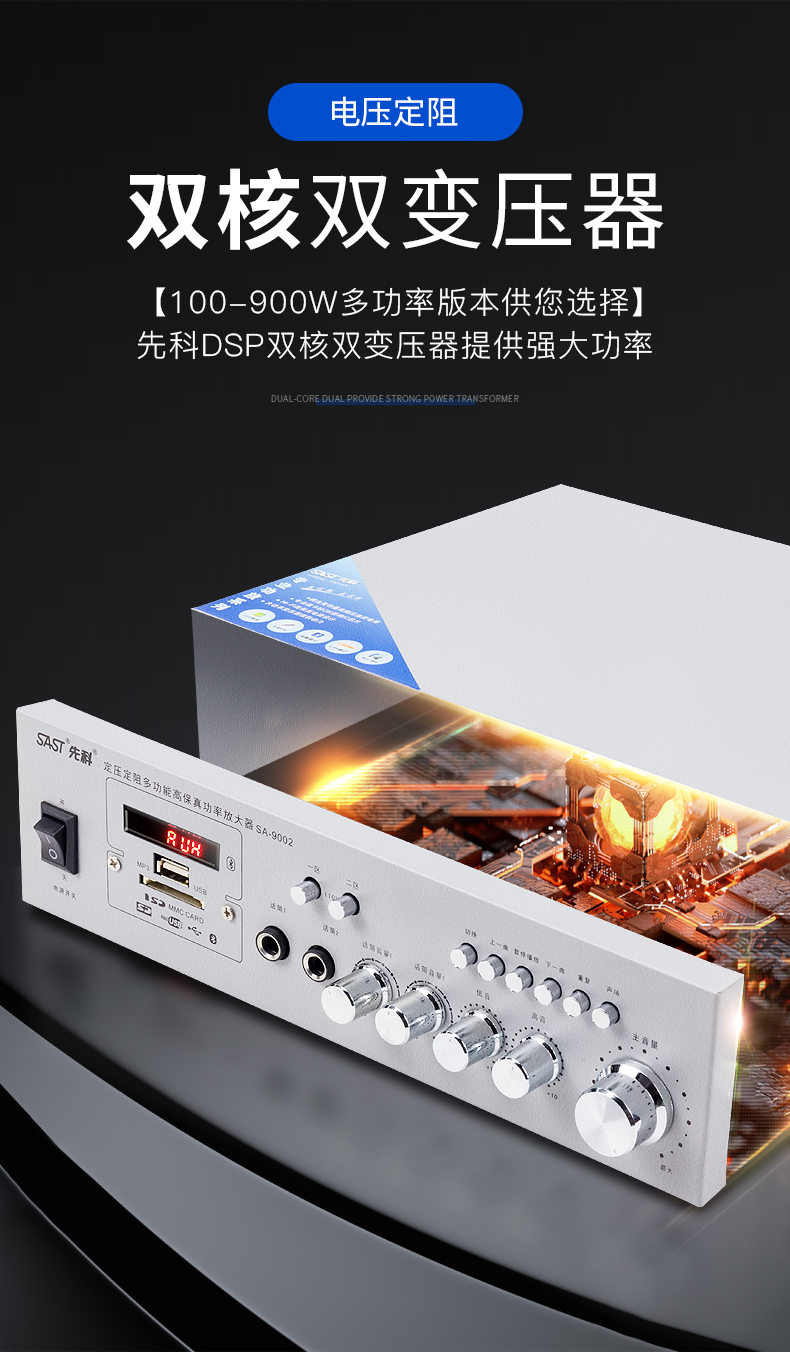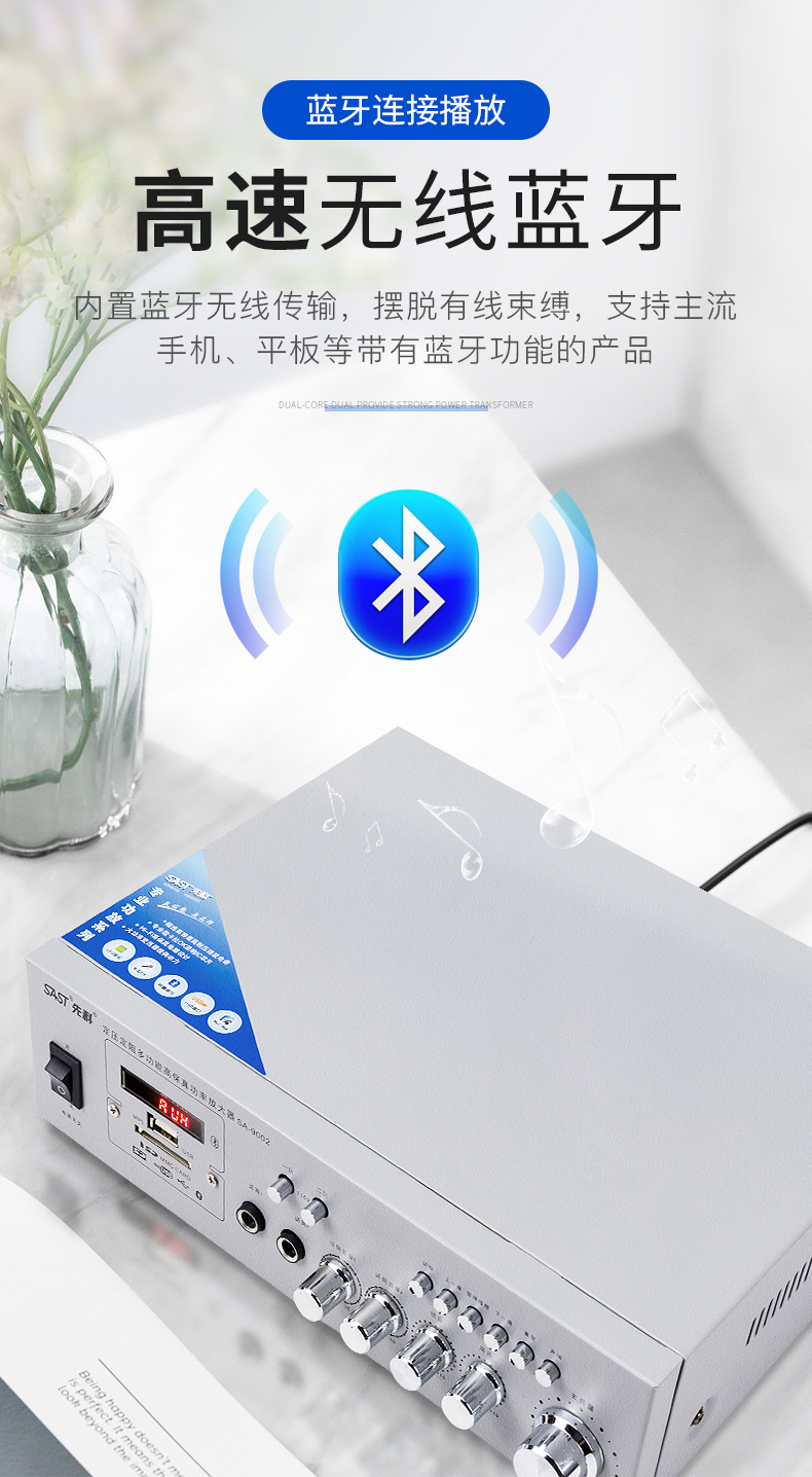 SAST Bluetooth power amplifier for home use, fixed resistance and constant voltage, high power speaker, subwoofer, hifi, stage speaker, karaoke digital home, 100 watt constant resistance and constant voltage Bluetooth power amplifier
