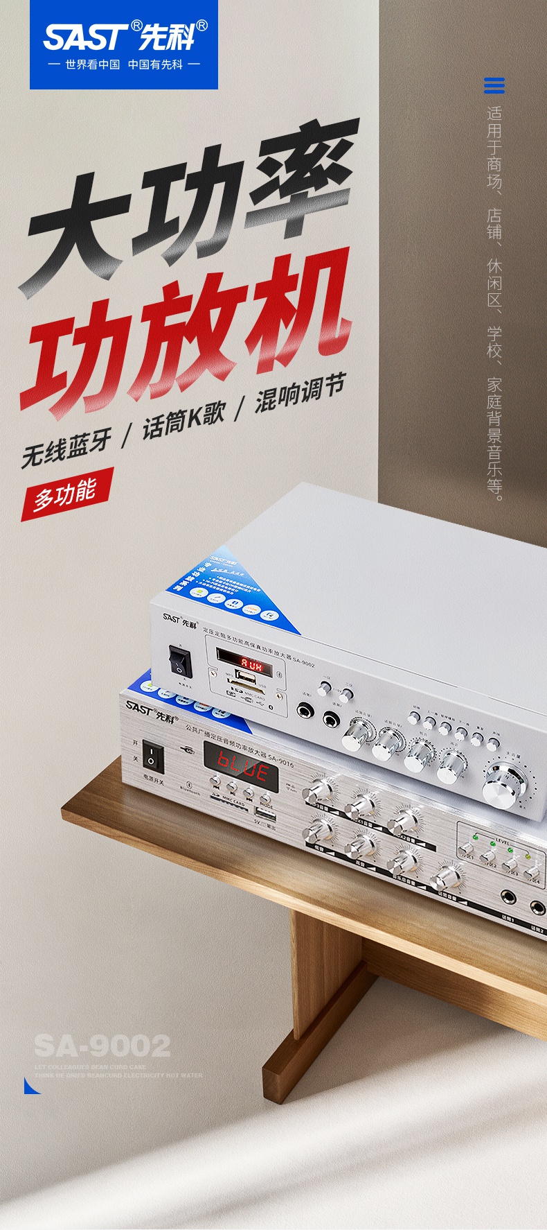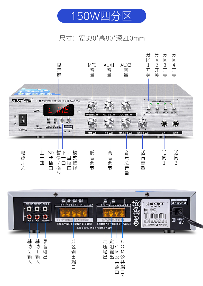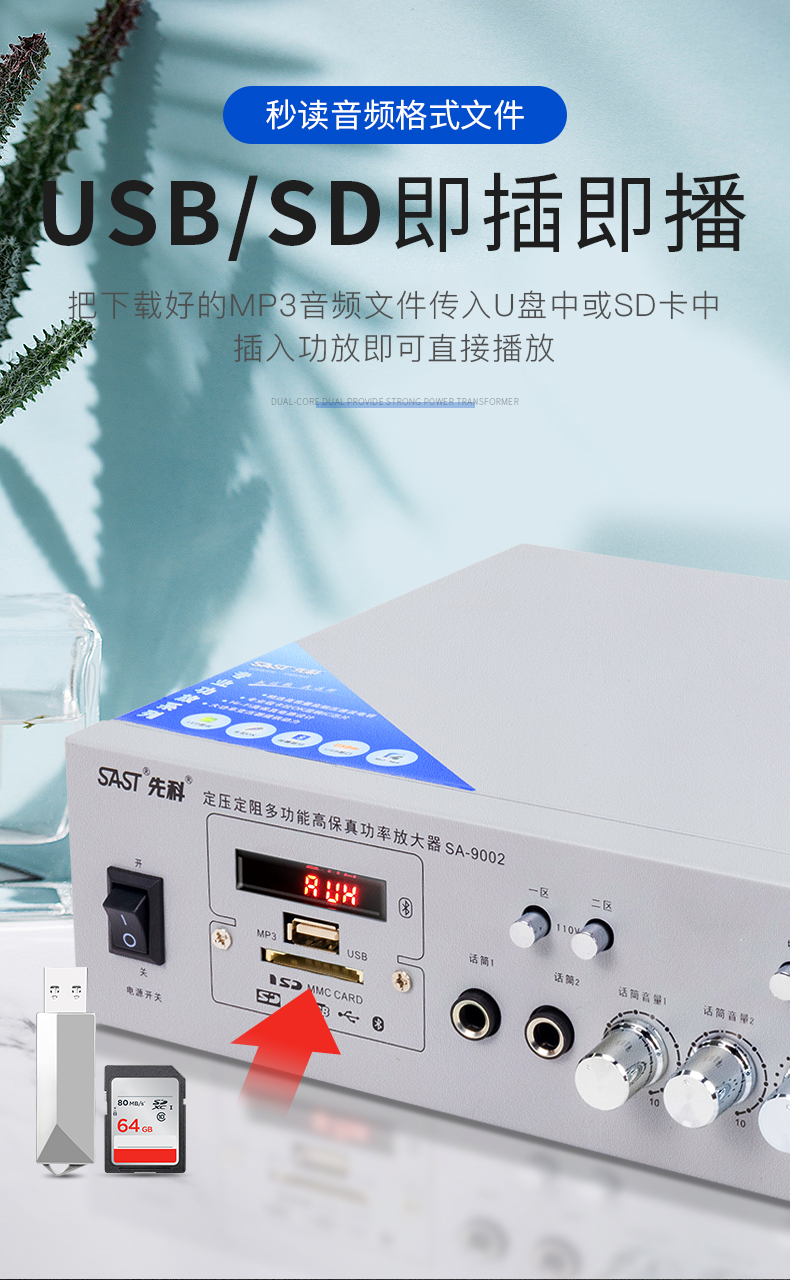 SAST Bluetooth power amplifier for home use, fixed resistance and constant voltage, high power speaker, subwoofer, hifi, stage speaker, karaoke digital home, 100 watt constant resistance and constant voltage Bluetooth power amplifier