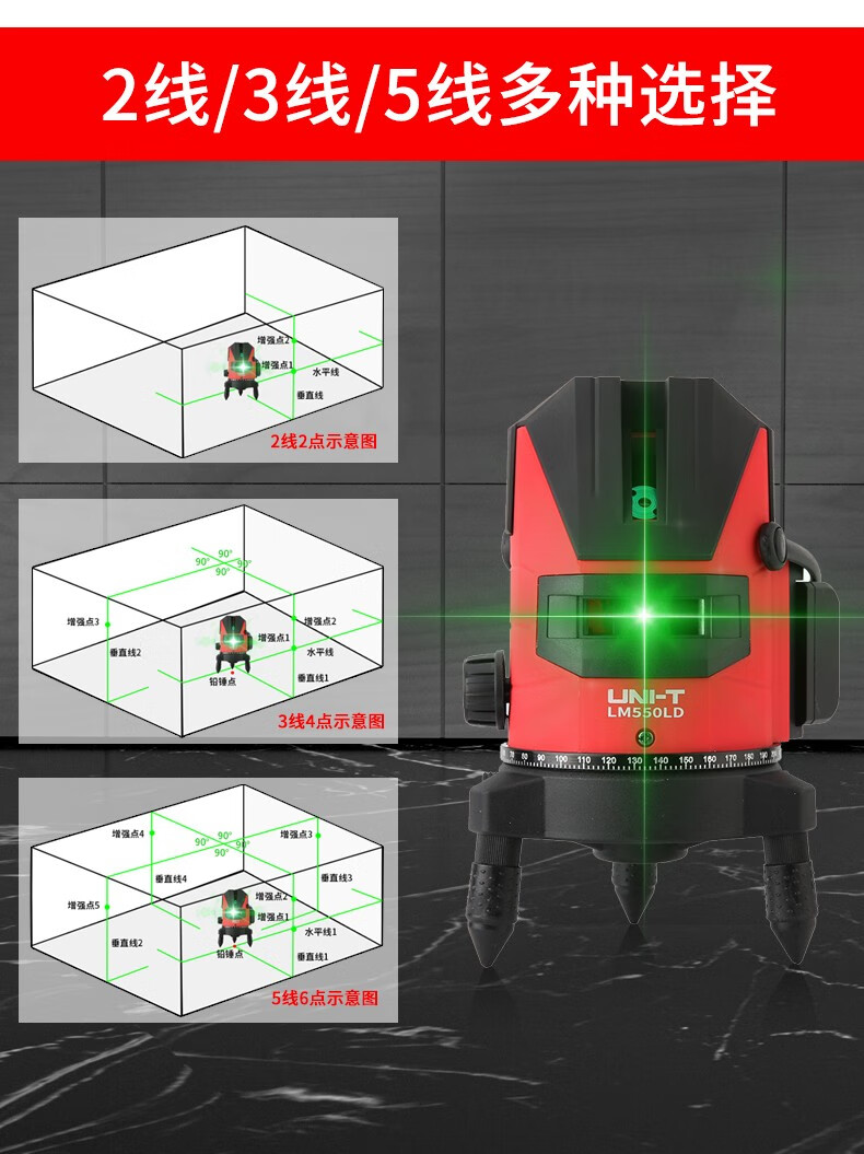 UNI-T LM550LD laser level high-precision green light 2-line 3-line 5-line LD diagonal level LM520LD (green light 2 lines)