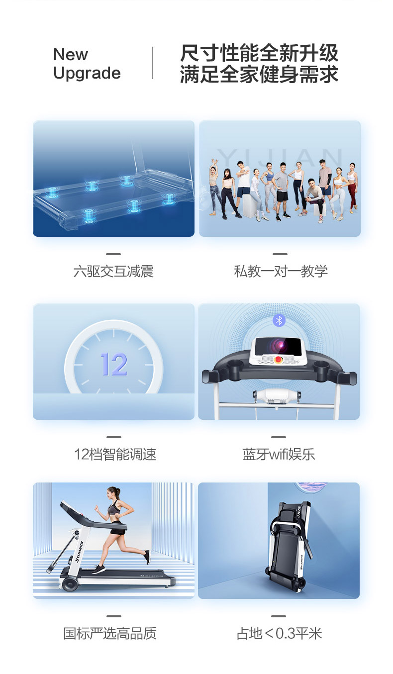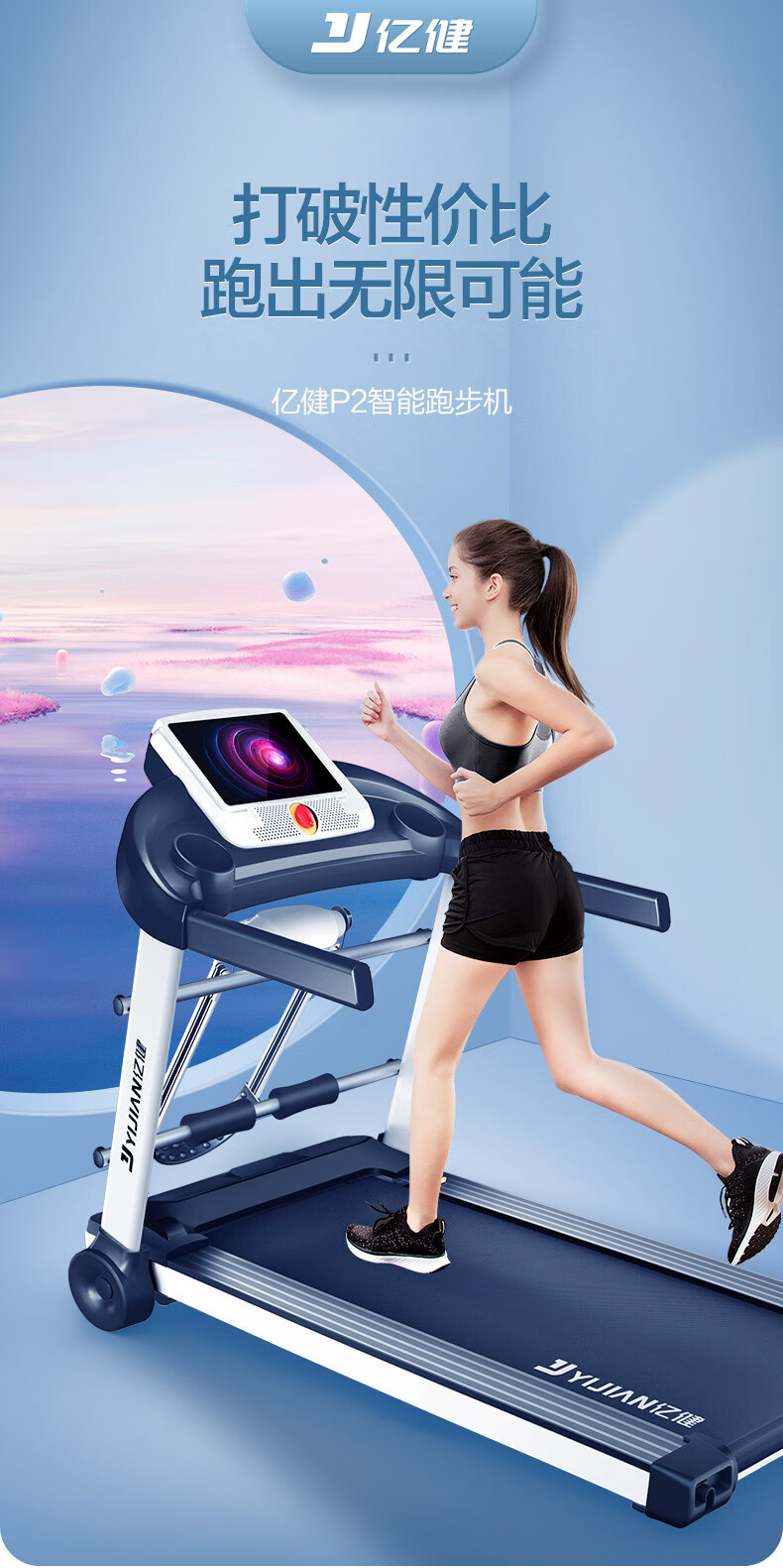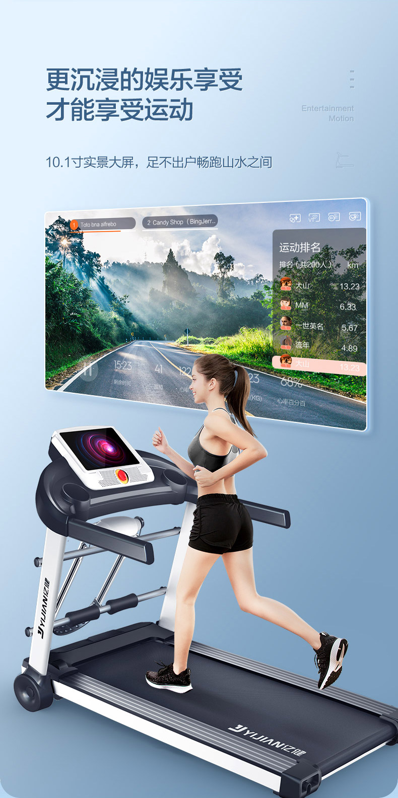 YIJIAN treadmill home smart Bluetooth speaker foldable walking machine slope adjustable fitness equipment upgraded model P2 10.1-inch color screen multi-function / built-in massage machine