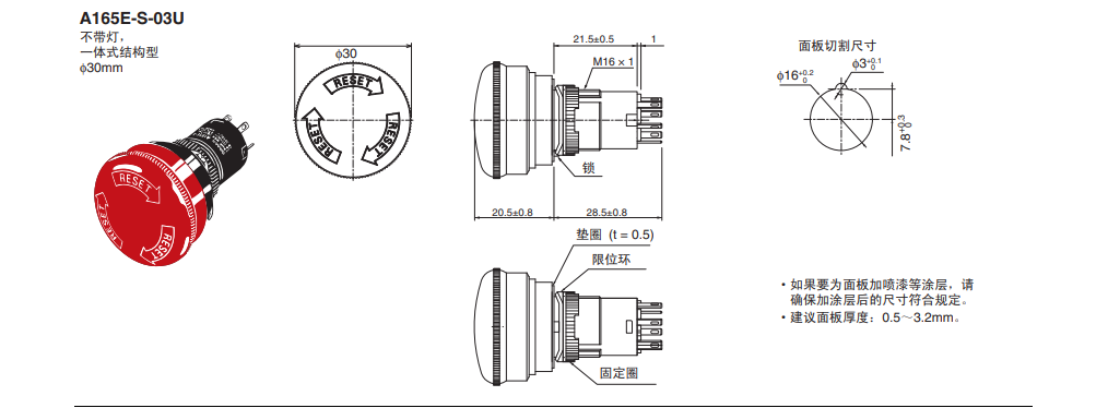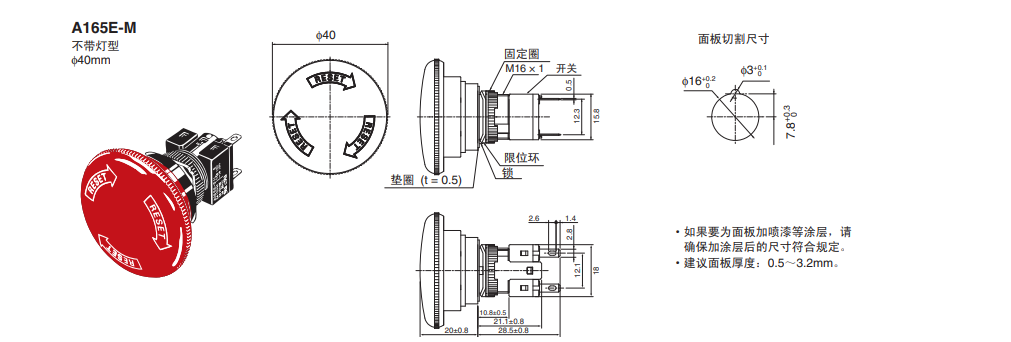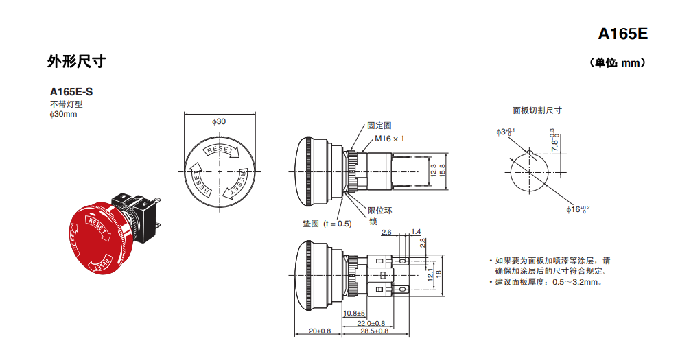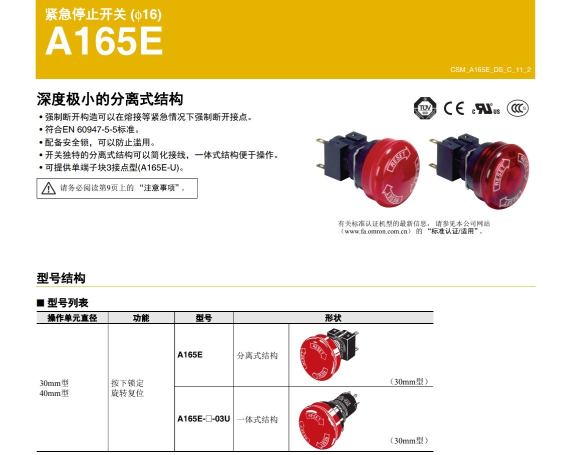 Omron OMRON Japan imported original emergency stop switch M16 emergency stop switch A165E A165E-S-01