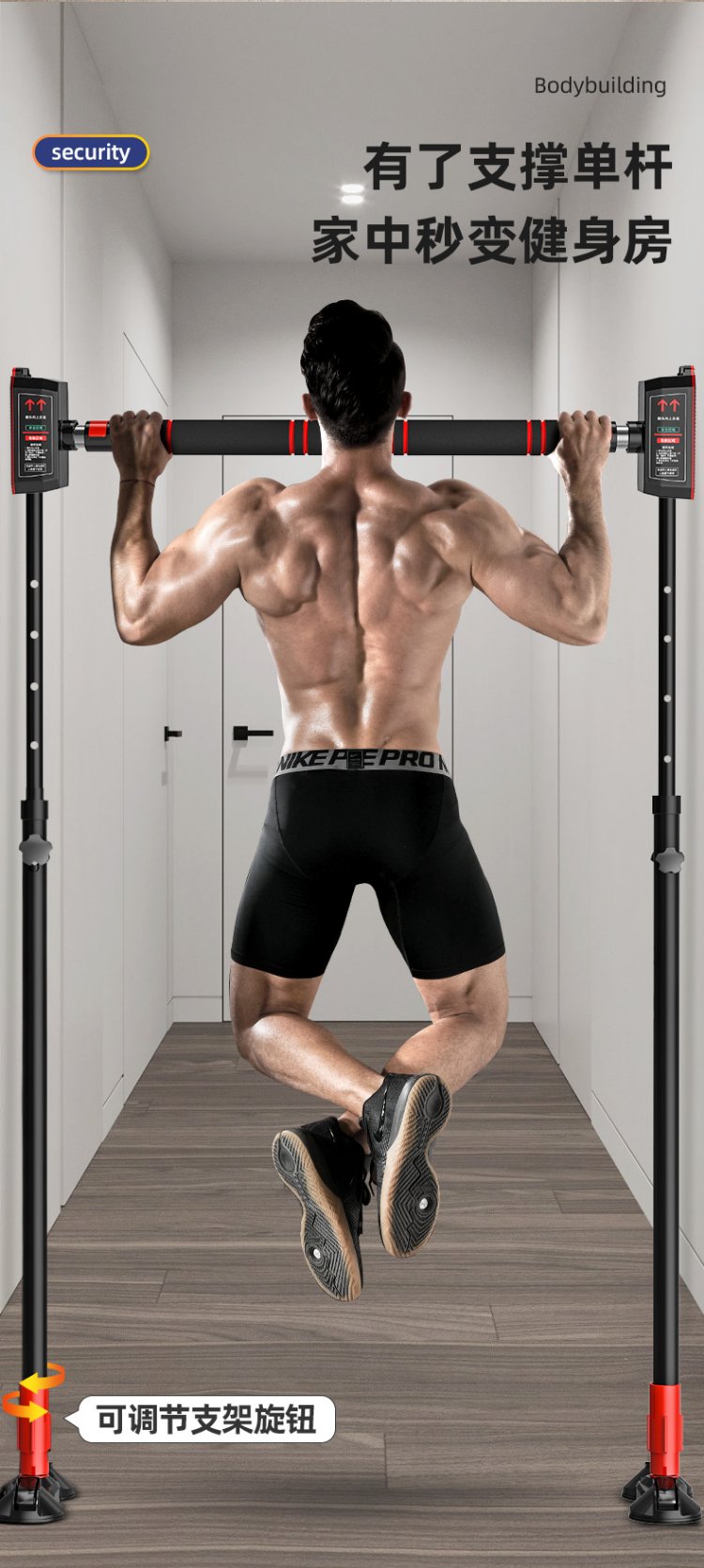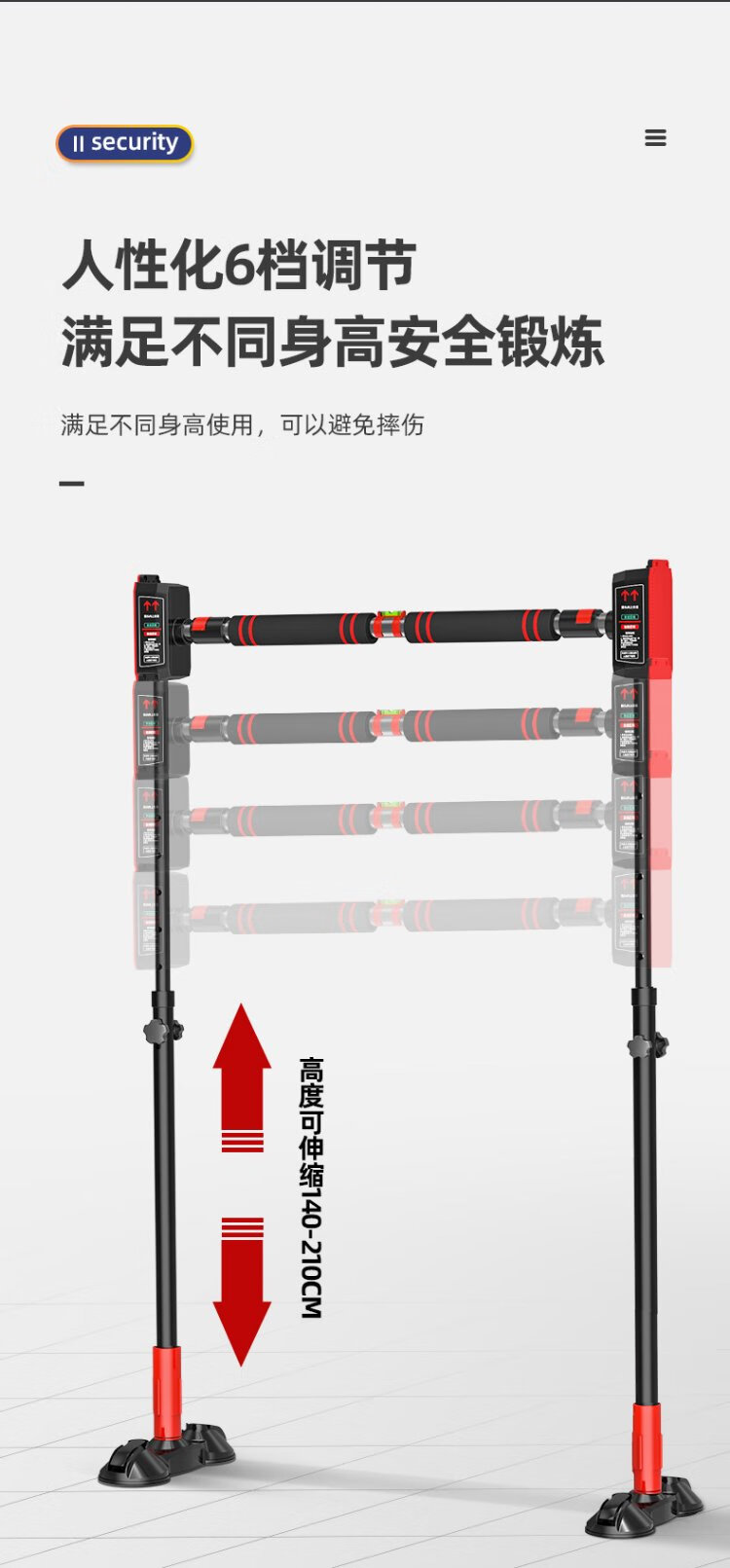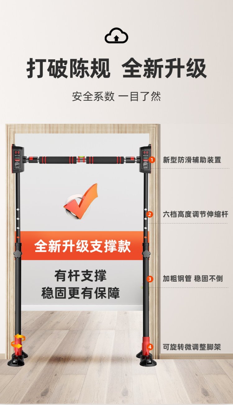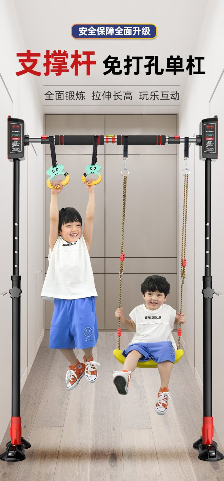 Gumi bear horizontal bar household indoor pull-up device fitness sports equipment children adult door aisle door frame tile wall punch-free human body swing household telescopic single pole bracket high-end model applicable installation distance 155-210CM + hanging ring