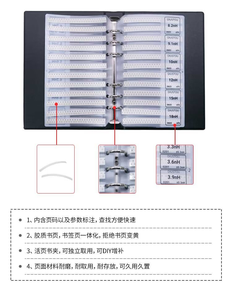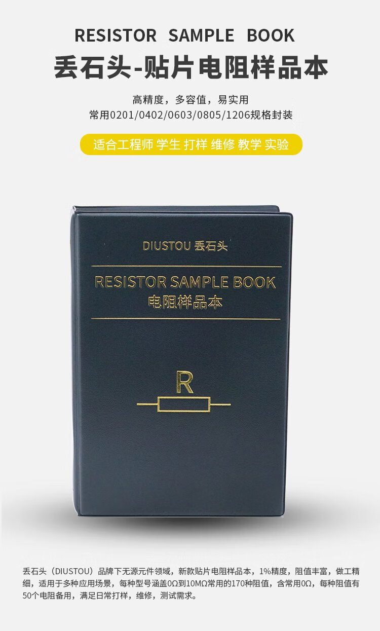 Throwing stones Chip resistor book Capacitor book Multilayer inductor book Electronic component sample book High-precision circuit experimental components 0201 170 kinds of resistance values 1% resistor book 1 box