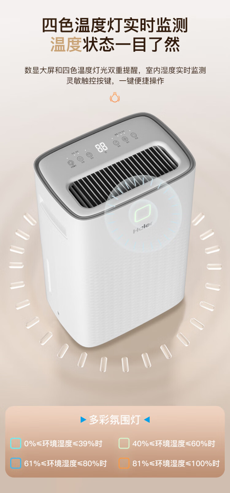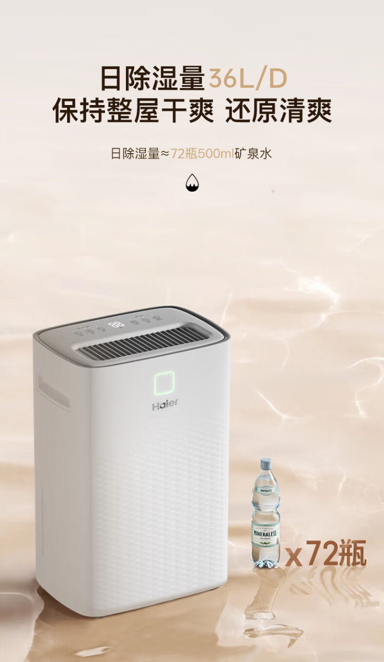 Haier Dehumidifier/Dehumidifier Home Light Noise Moisture Absorber Basement Dryer Clothes Dryer Positive and Negative Ion Purification 36L/day 70-120 Whole House Dehumidification CF36-PJ1