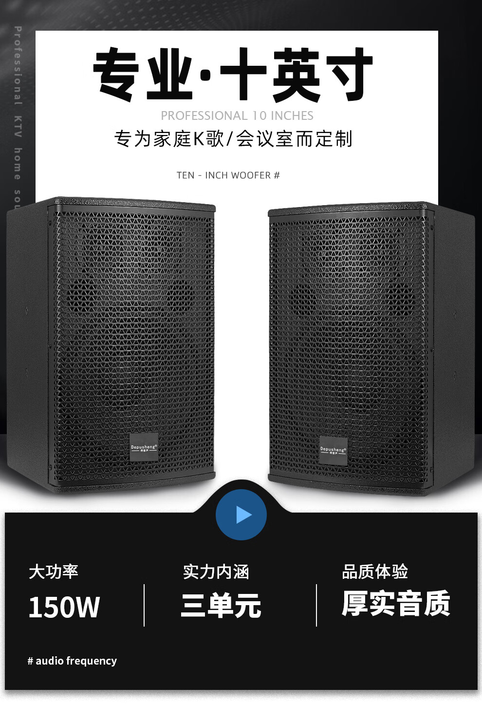 Depusheng D200 professional home KTV audio set 10-inch speaker home conference stage performance K song karaoke training campus 150W professional audio (single)