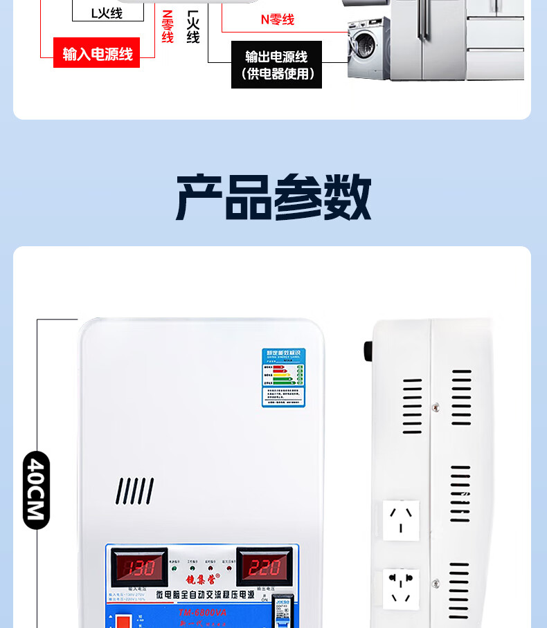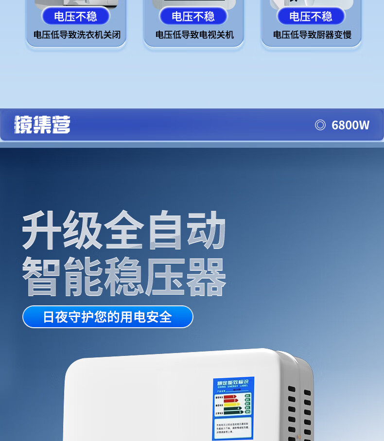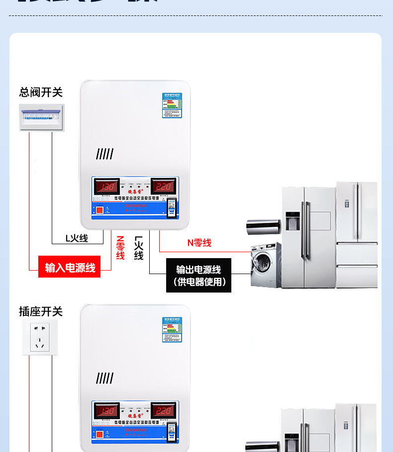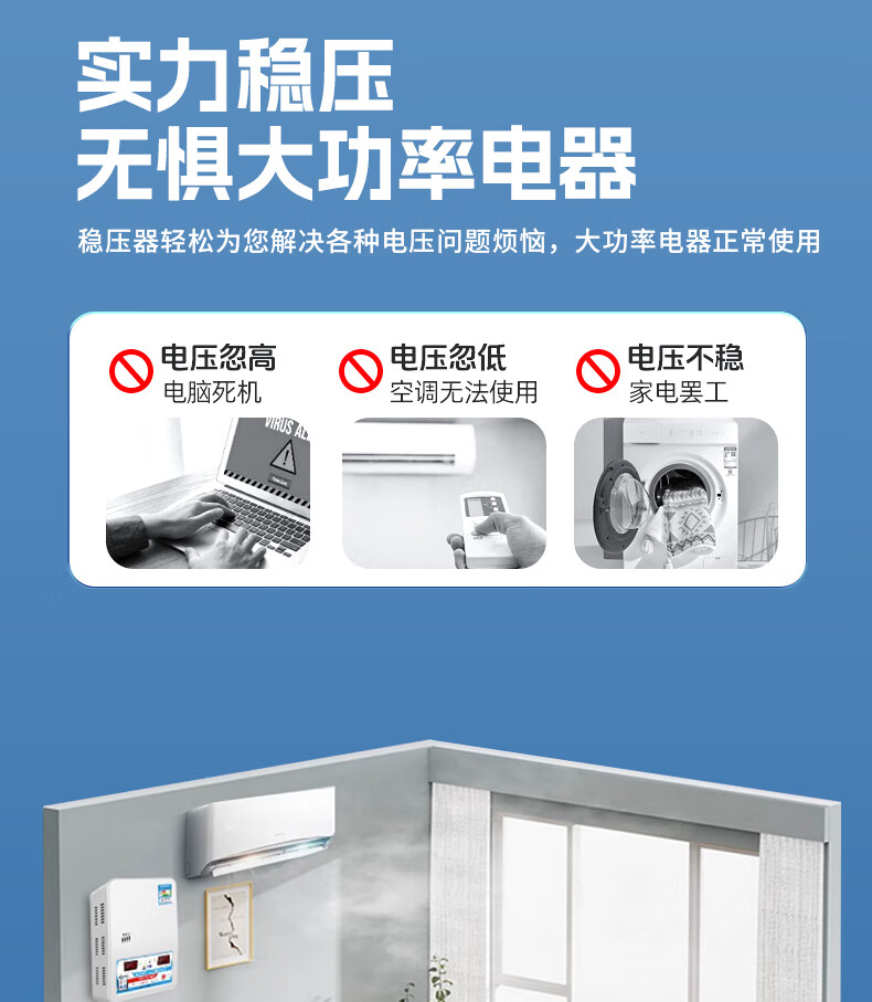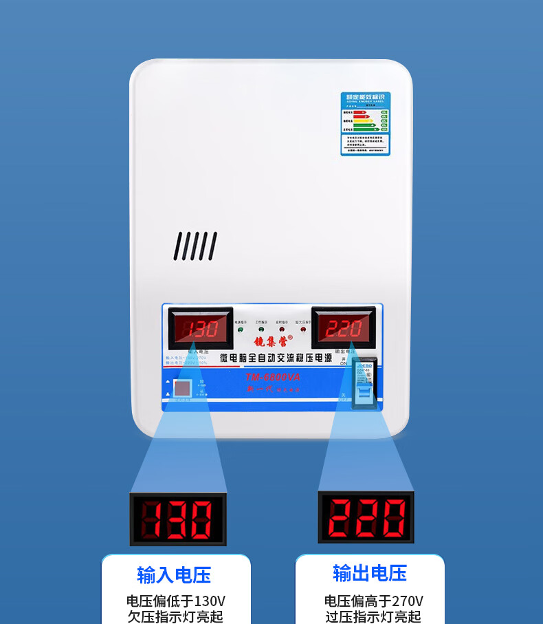 Mirror Camp Voltage Stabilizer 220v Air Conditioning Voltage Stabilizer Fully Automatic Household Voltage Stabilizer Single Phase AC High Power Low Voltage Stabilizer 6800W Model Comes with Mounting Screws and Wall Mounting Bracket