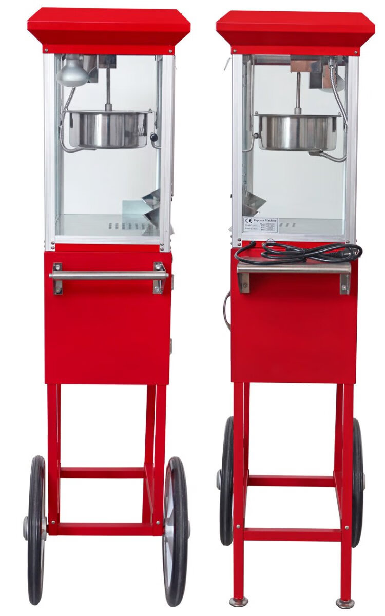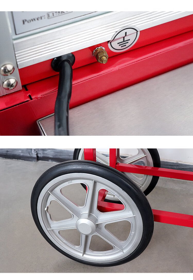 ETON commercial popcorn machine, fully automatic stainless steel pot, popcorn making machine with truck, POP6E-R black