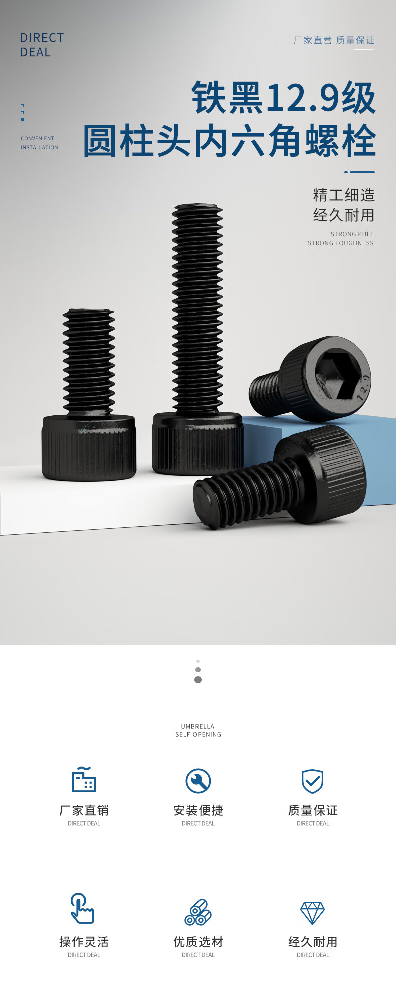 Guwanji grade 12.9 cup head hexagonal socket screws cylindrical head screws full thread high strength black hexagon socket bolts national standard M4*8 50 pieces