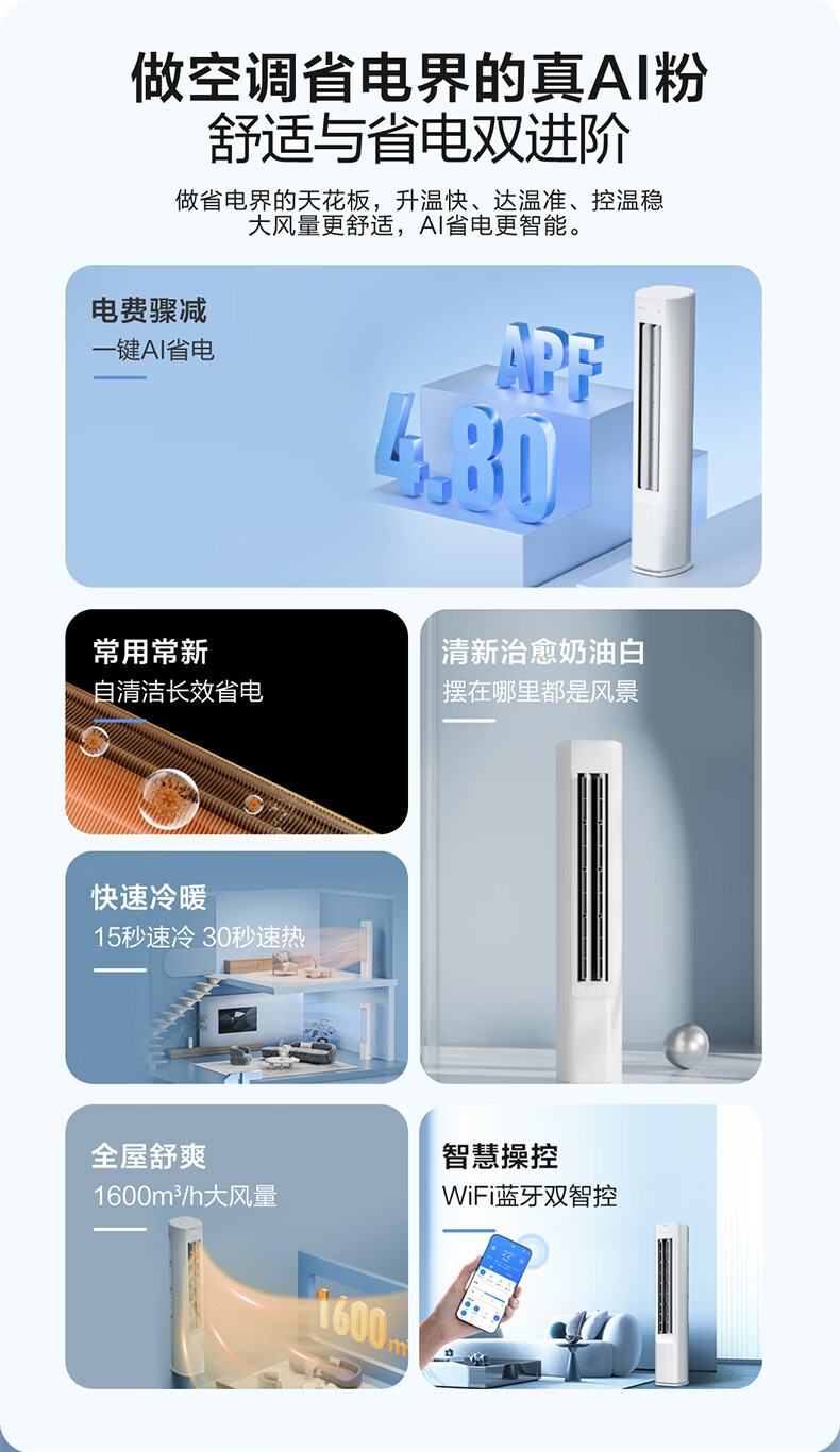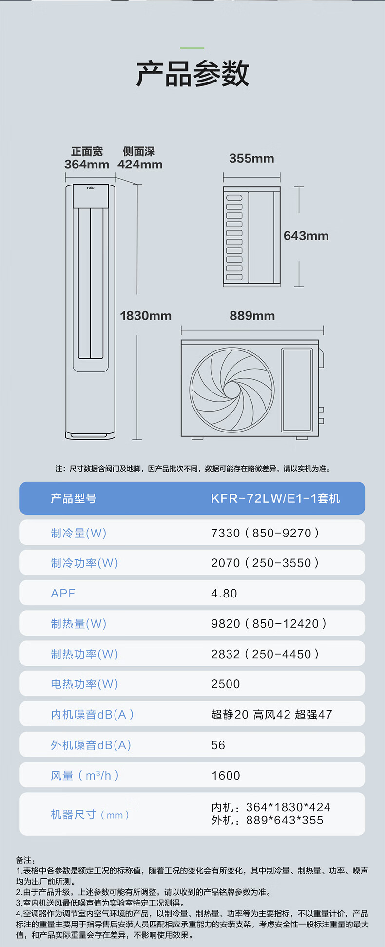 Haier air conditioner set, buy one set, 3 HP vertical cabinet unit, 1.5 HP on-hook, new level frequency conversion heating and cooling, self-cleaning, living room, bedroom, vertical cabinet air conditioner, wall-mounted air conditioner, three rooms and one living room, 3 HP cabinet unit + 1.5 HP on-hook*3