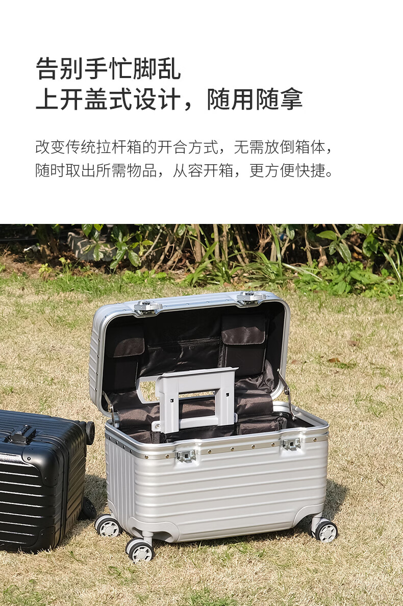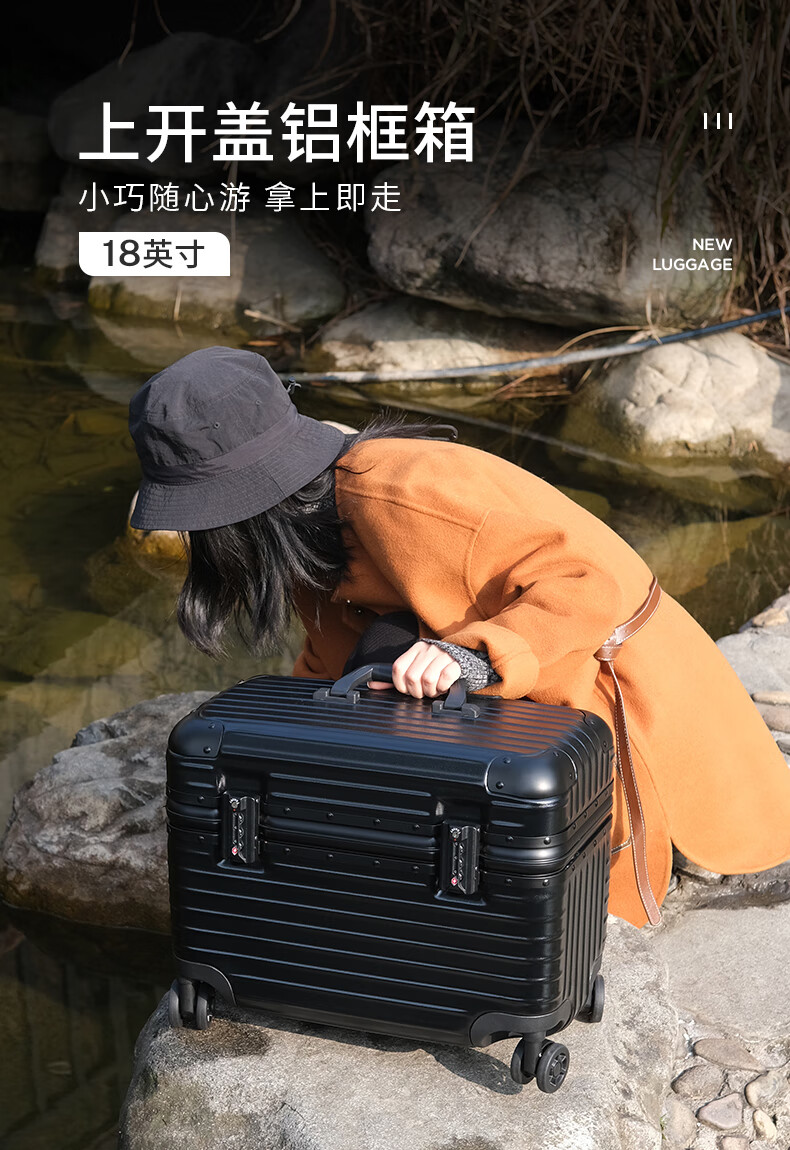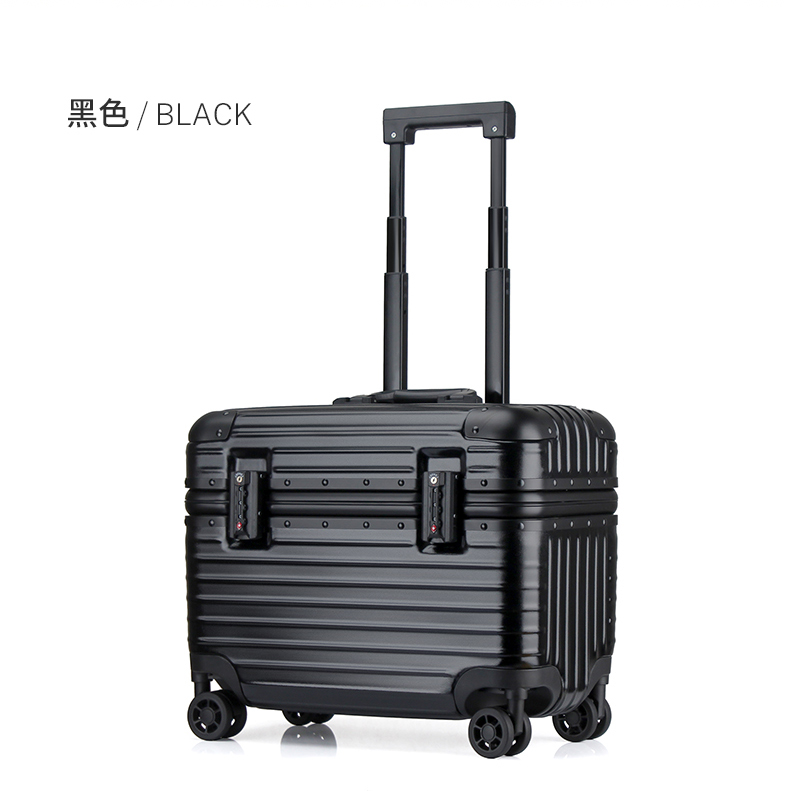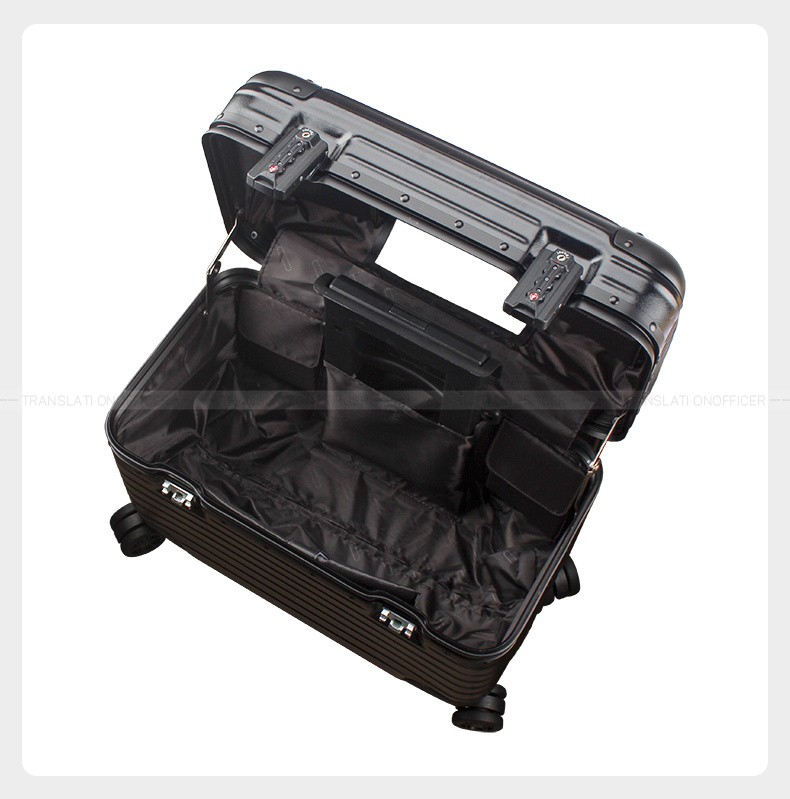 Translator Trolley Case Top Opening Luggage Women's Thickened Anti-Scratch Suitcase Men's Tool Box Password Boarding Red Wine Box PC Top Opening Aluminum Frame - Black 18 Inch 1-5 Days (Large Capacity Boarding Case)