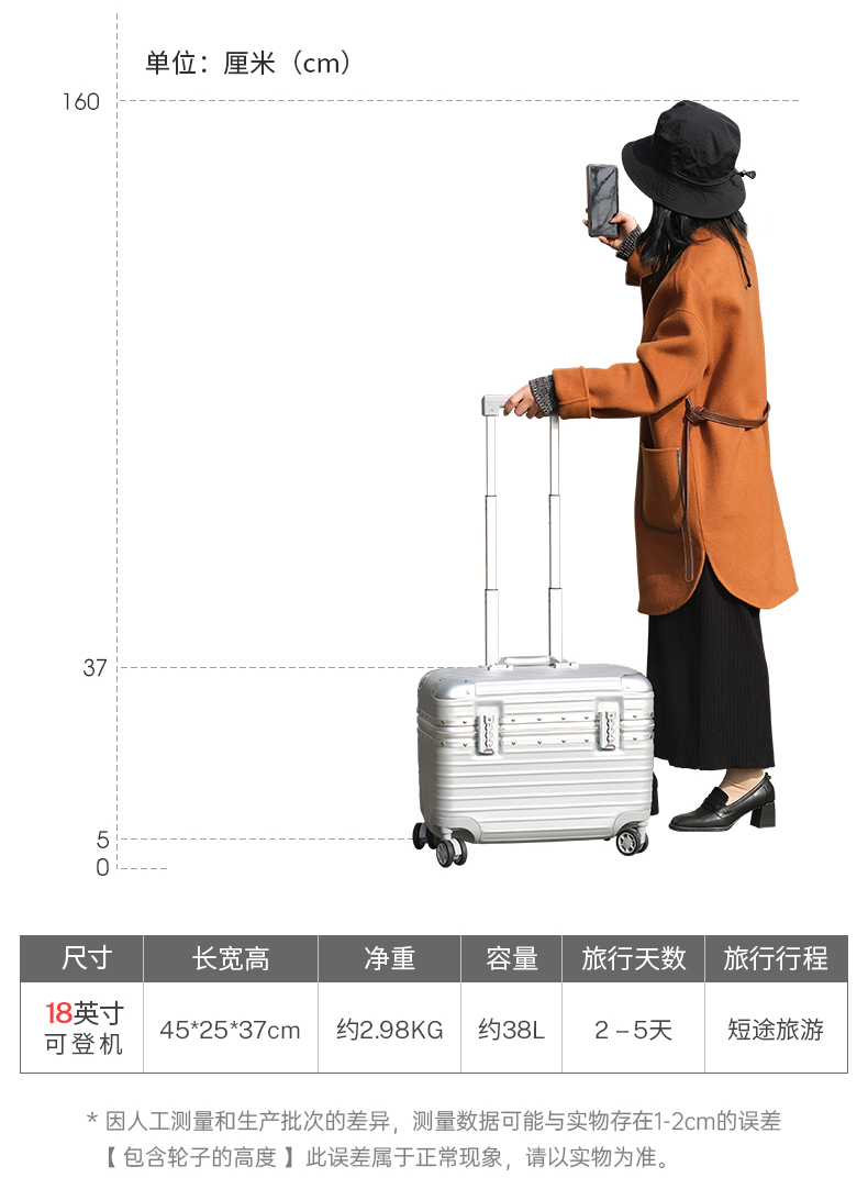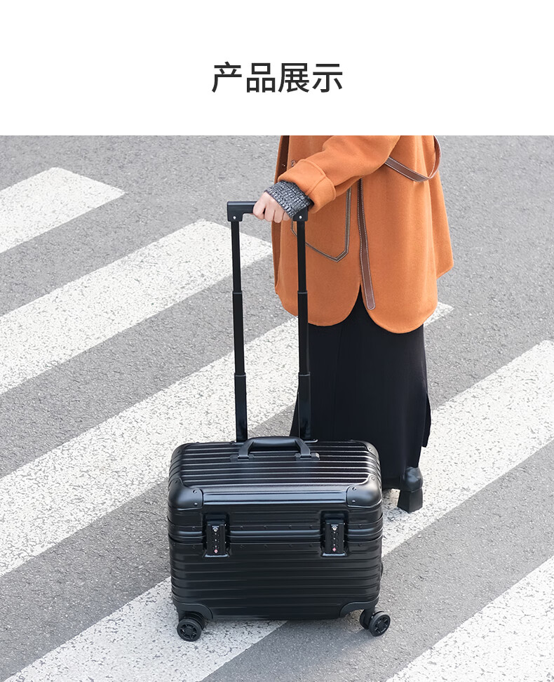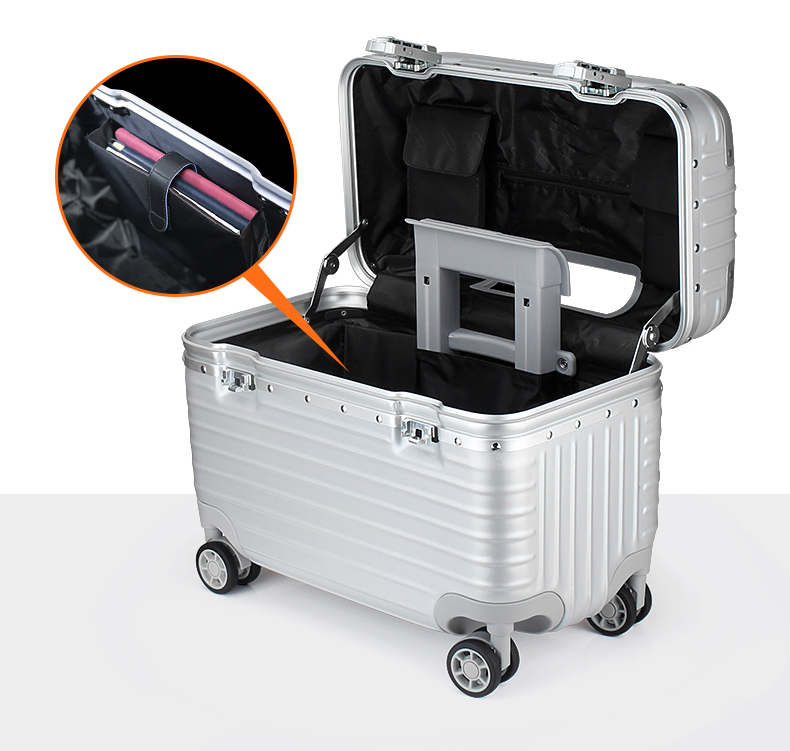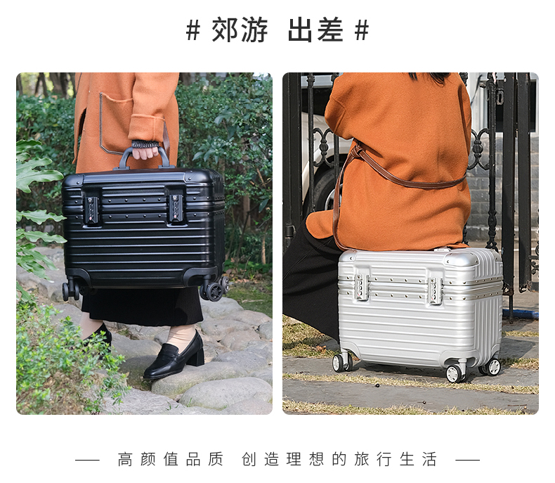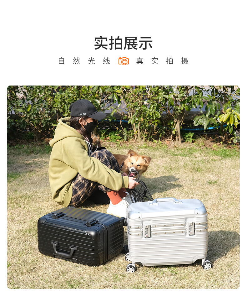 Translator Trolley Case Top Opening Luggage Women's Thickened Anti-Scratch Suitcase Men's Tool Box Password Boarding Red Wine Box PC Top Opening Aluminum Frame - Black 18 Inch 1-5 Days (Large Capacity Boarding Case)