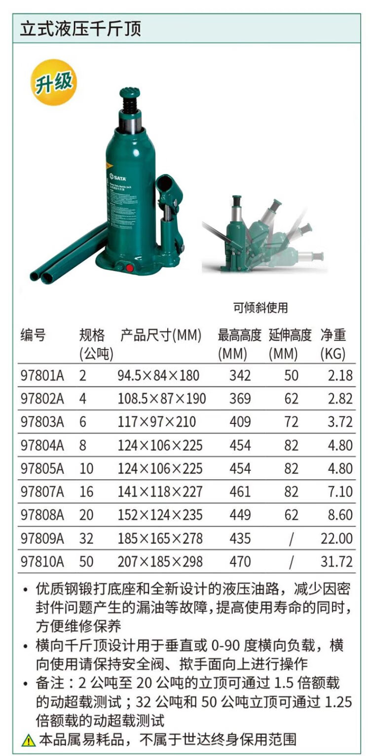SATA (SATA) 97801A 97810A hydraulic jack hydraulic vertical hand car tire changing and repair tool 2 tons 50 tons 97802A (4 tons)