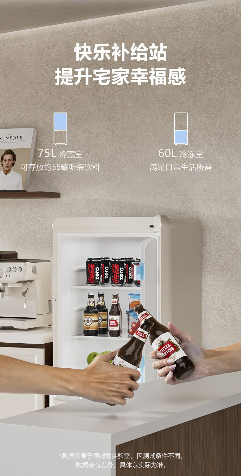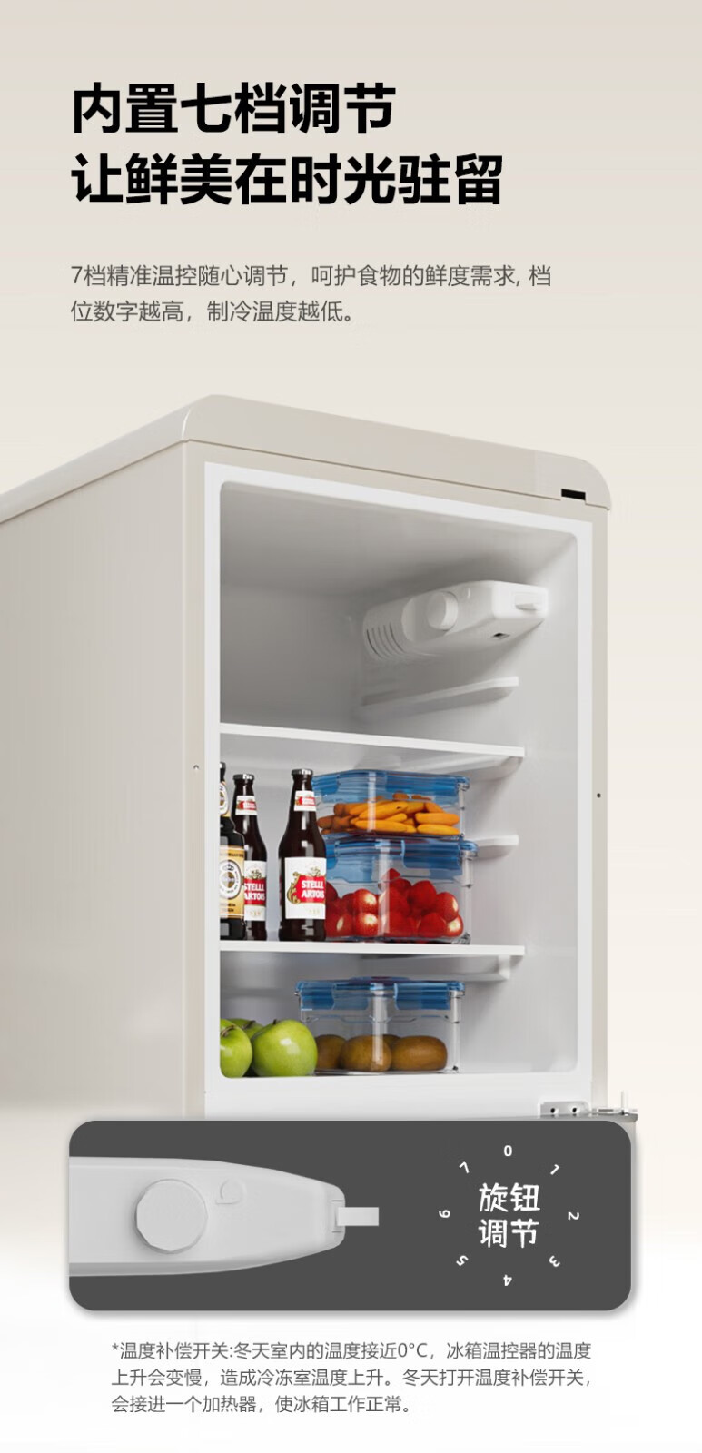 DEMULLER Retro Refrigerator Small Large Capacity Home Rental Refrigerator Cosmetics Silent Powerful Internet Celebrity Refrigerator Refrigerator Freezer Energy Saving BCD-136 Cheese White Top Refrigerator and Bottom Freezer