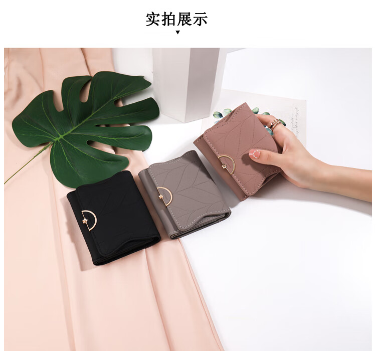 Woodpecker (TUCANO) wallet women's short style new women's folding large capacity coin purse ins cute flower student wallet black