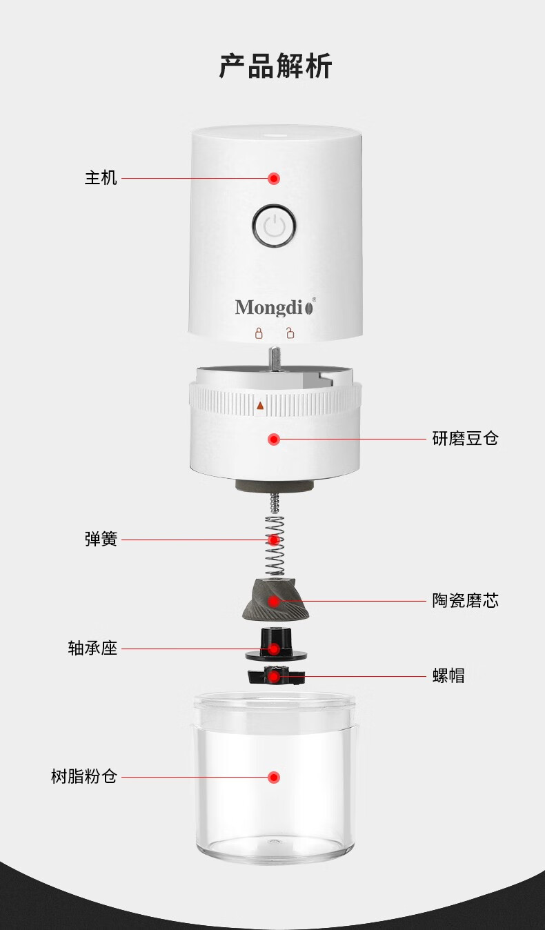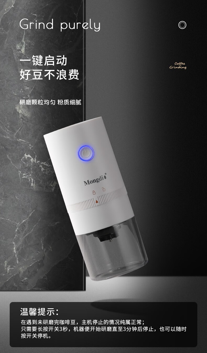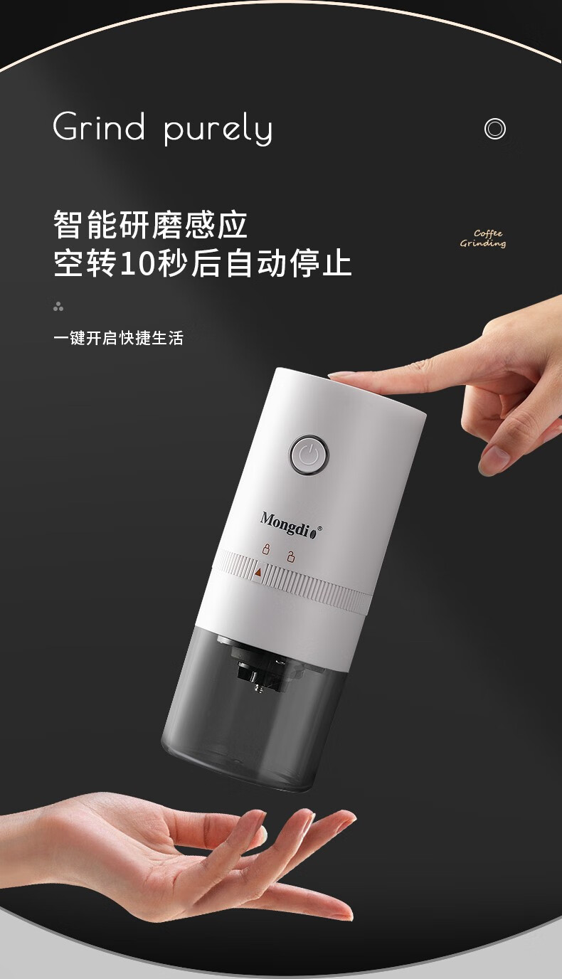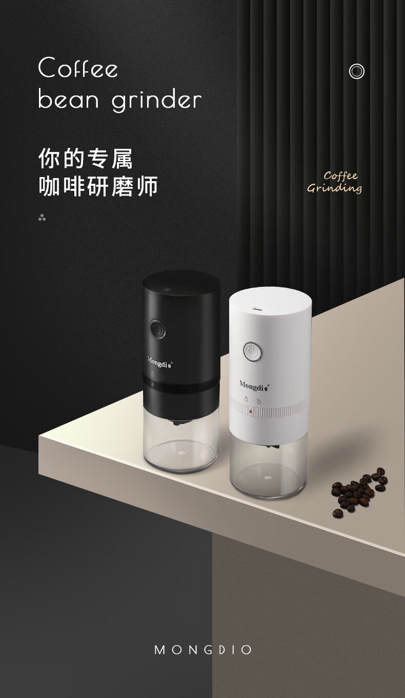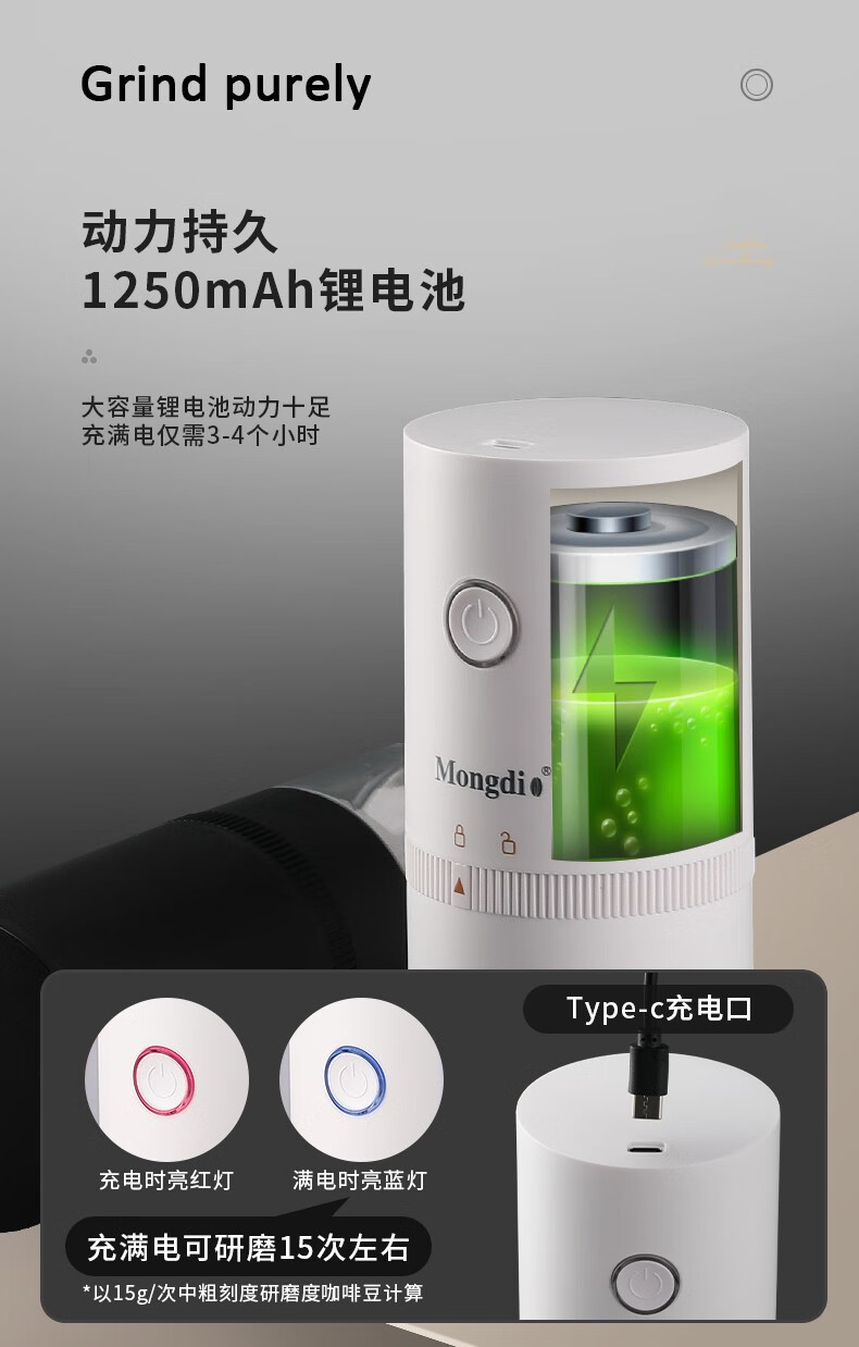 Mongdio Electric Bean Grinder Coffee Bean Grinder Fully Automatic Black Model - Rechargeable Ceramic Core