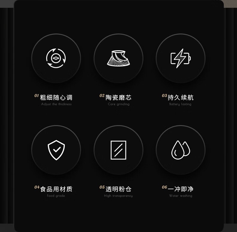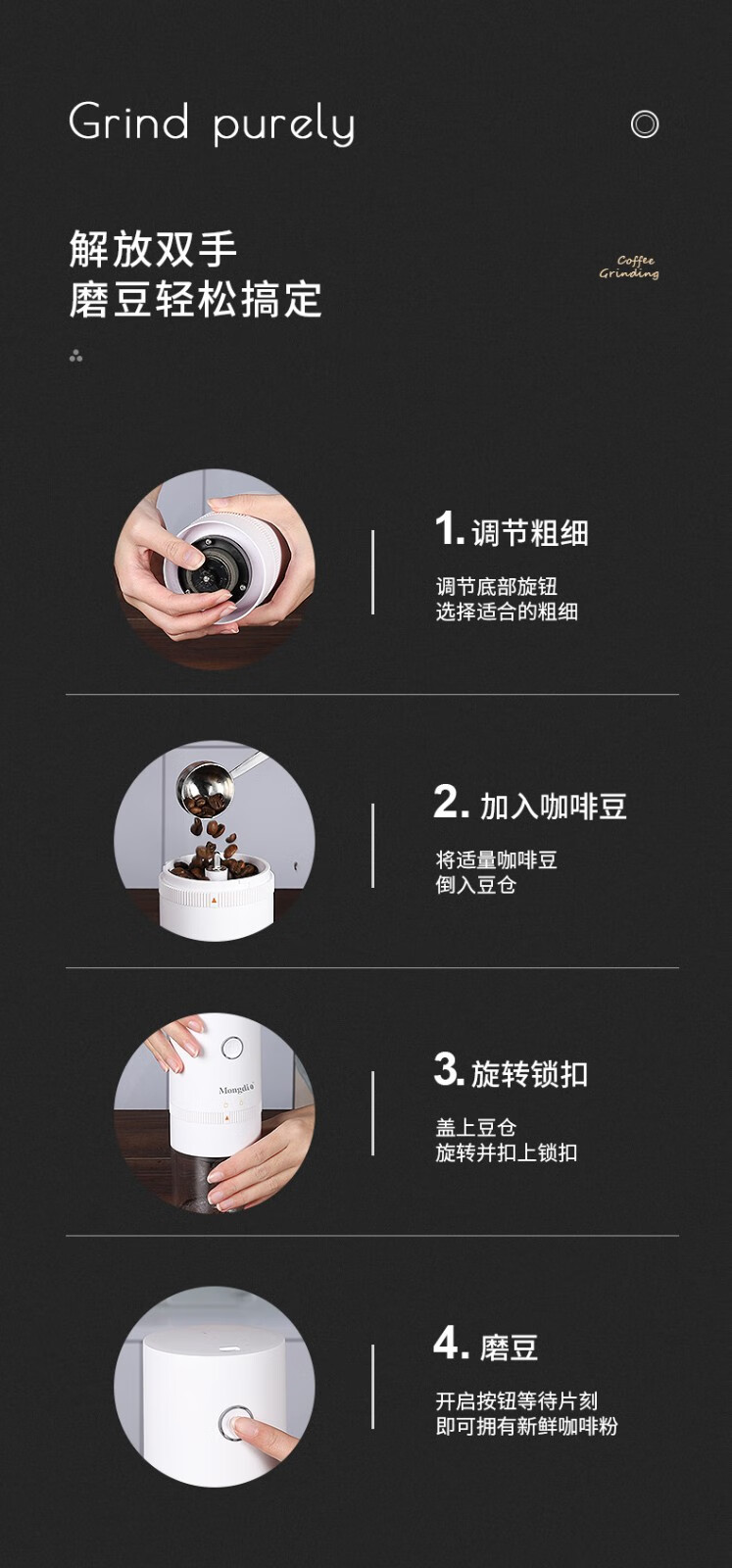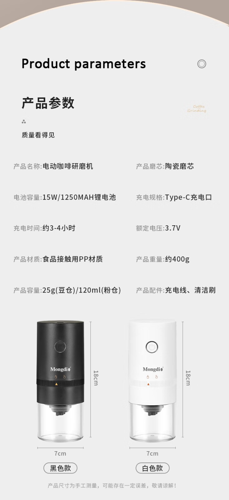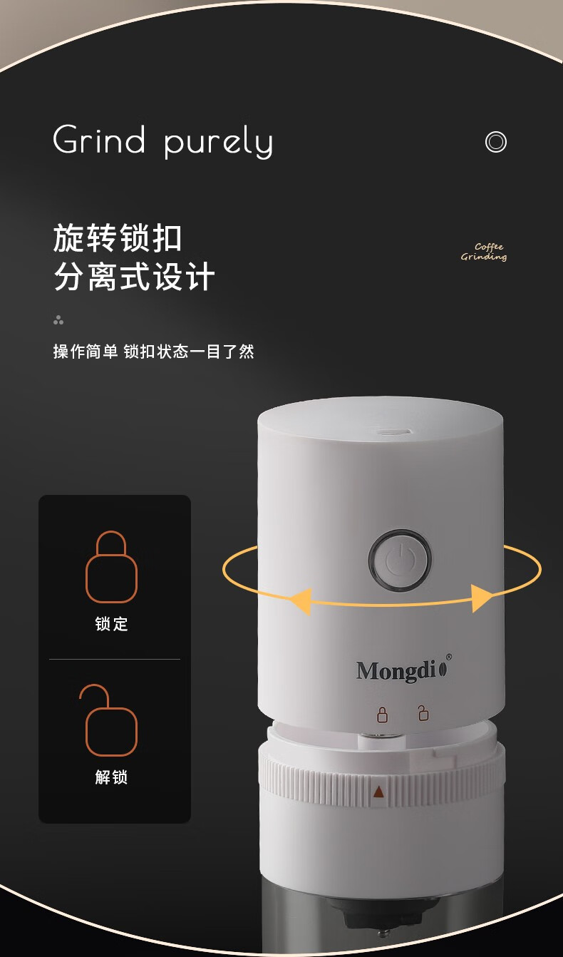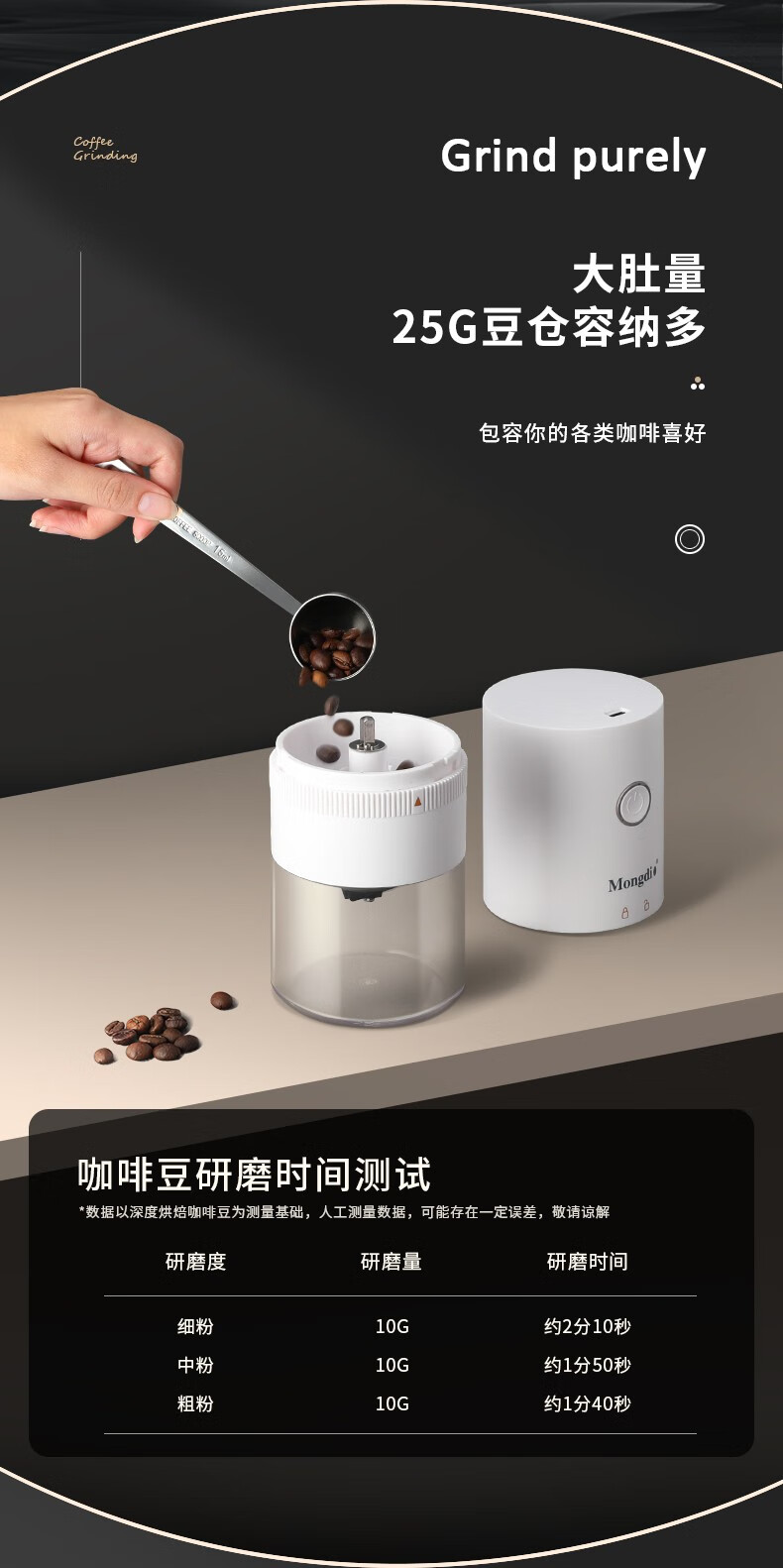Mongdio Electric Bean Grinder Coffee Bean Grinder Fully Automatic Black Model - Rechargeable Ceramic Core