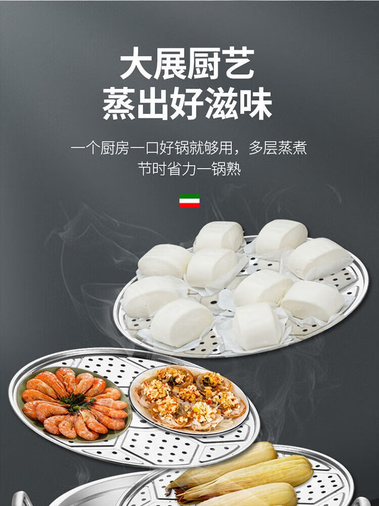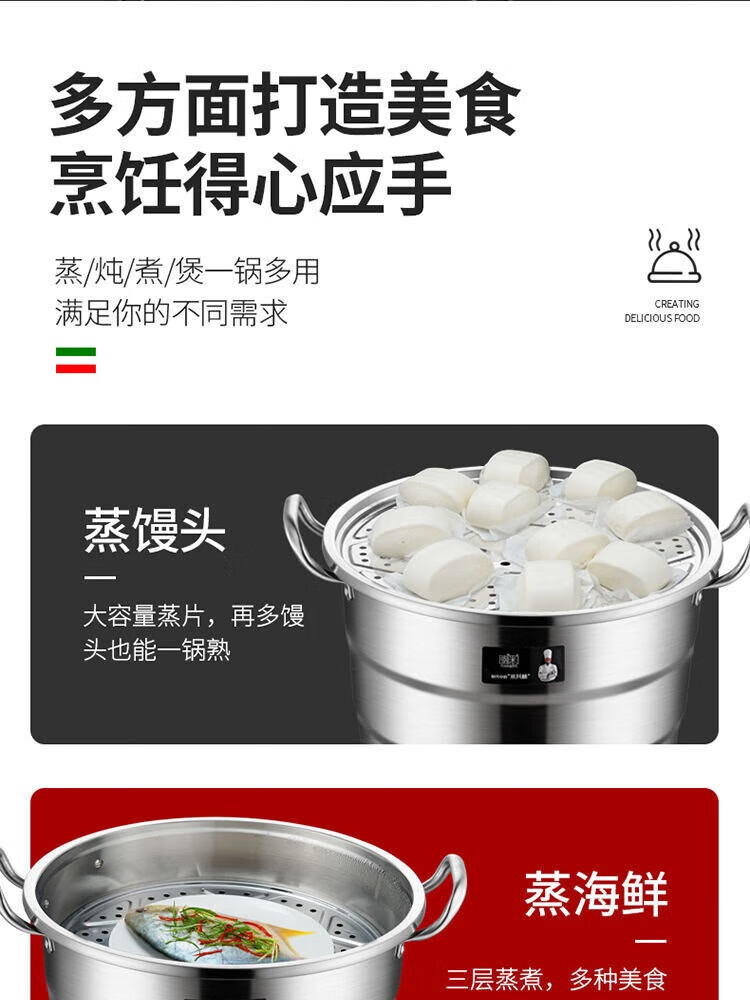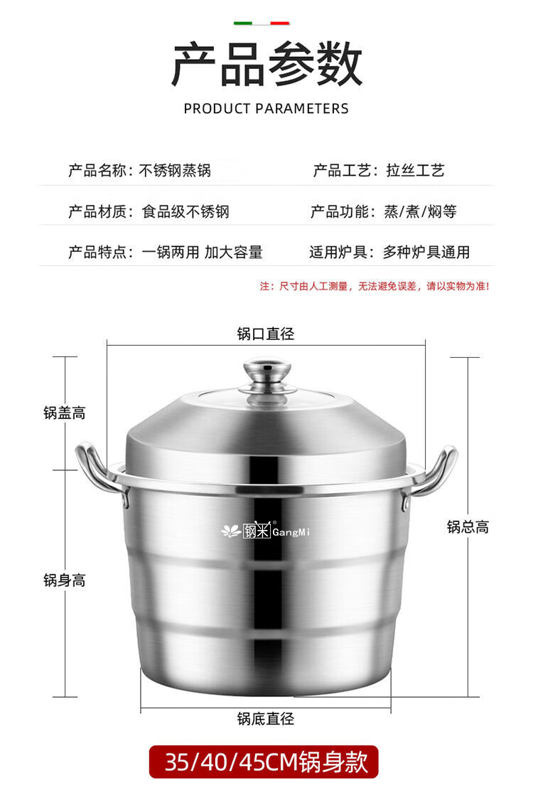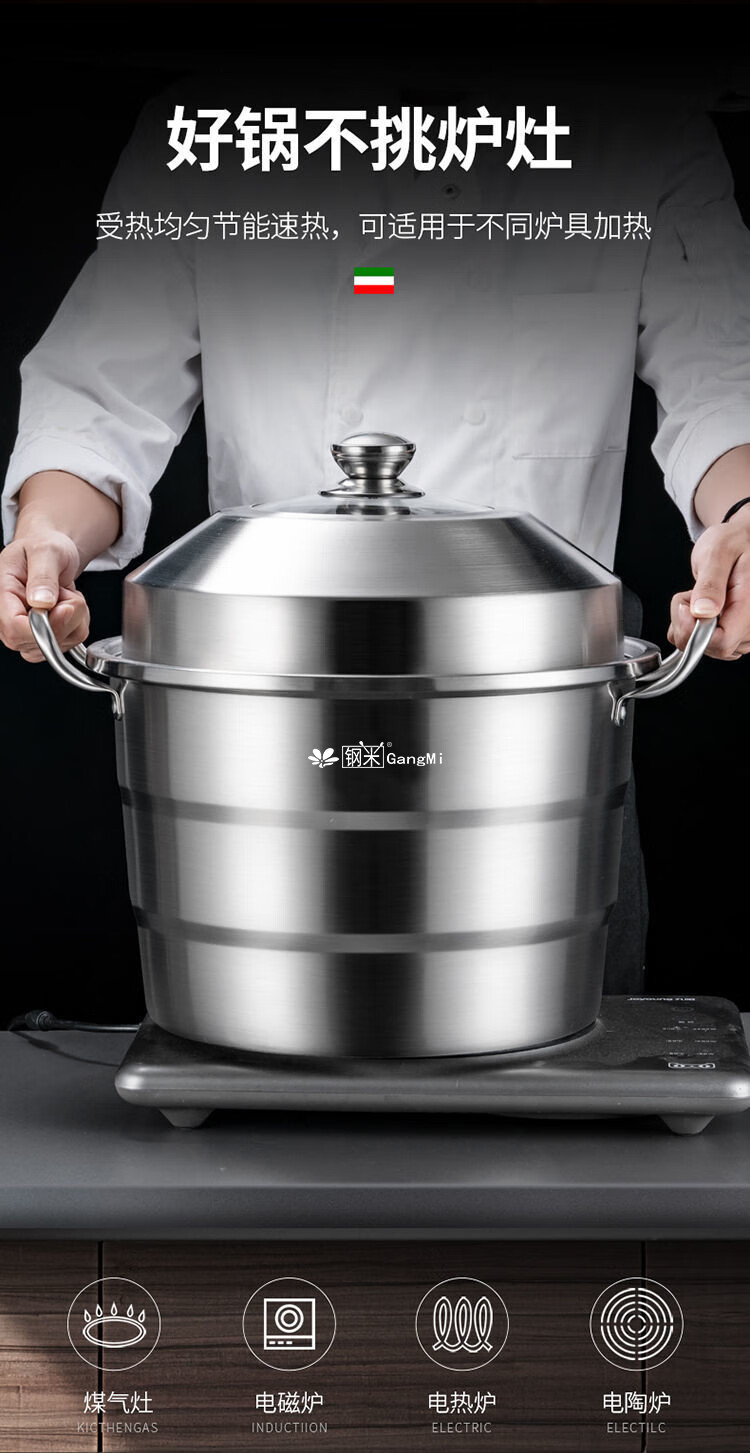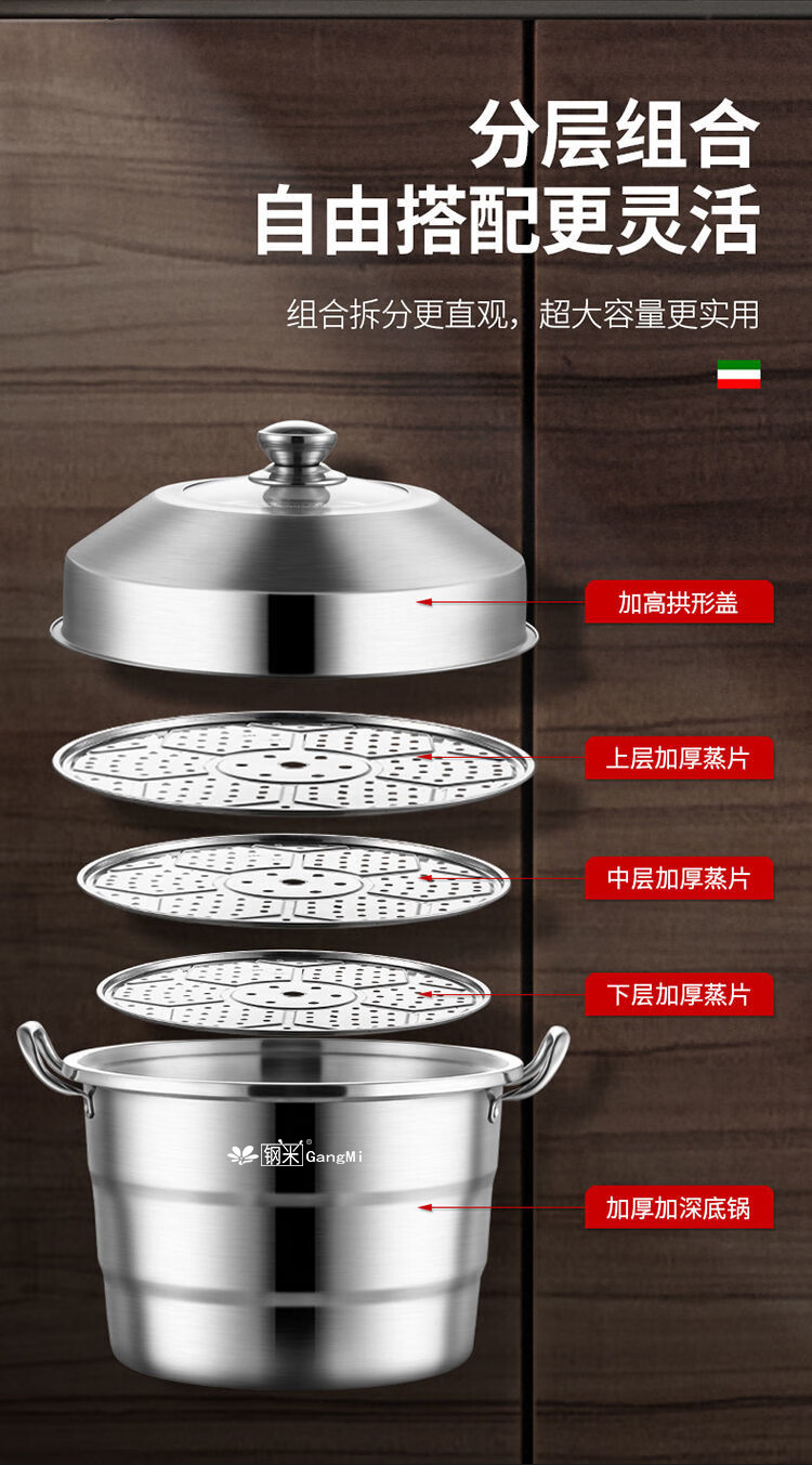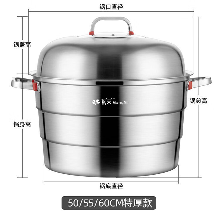 Steel rice 50cm steamer stainless steel three-layer induction cooker for gas stove commercial canteen household large capacity extra large extra thick 3 layers 35cm