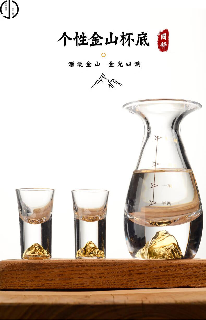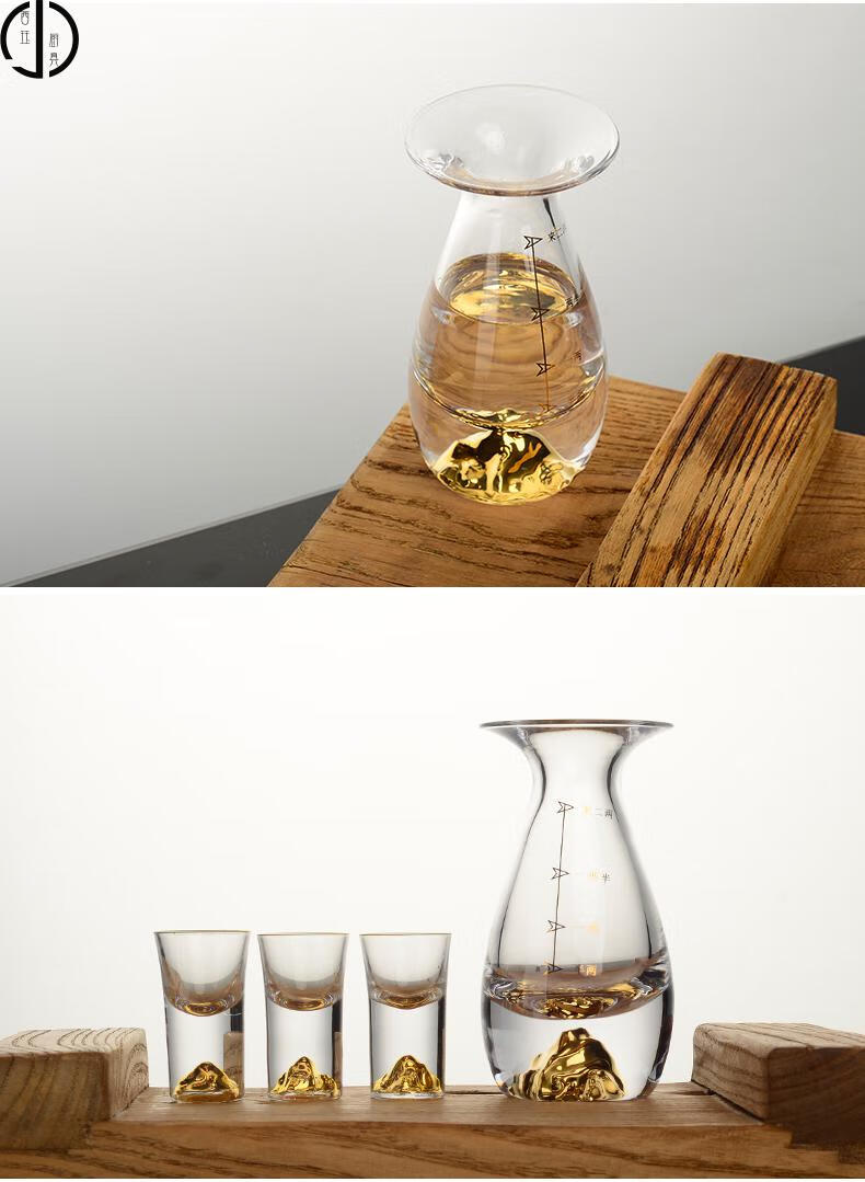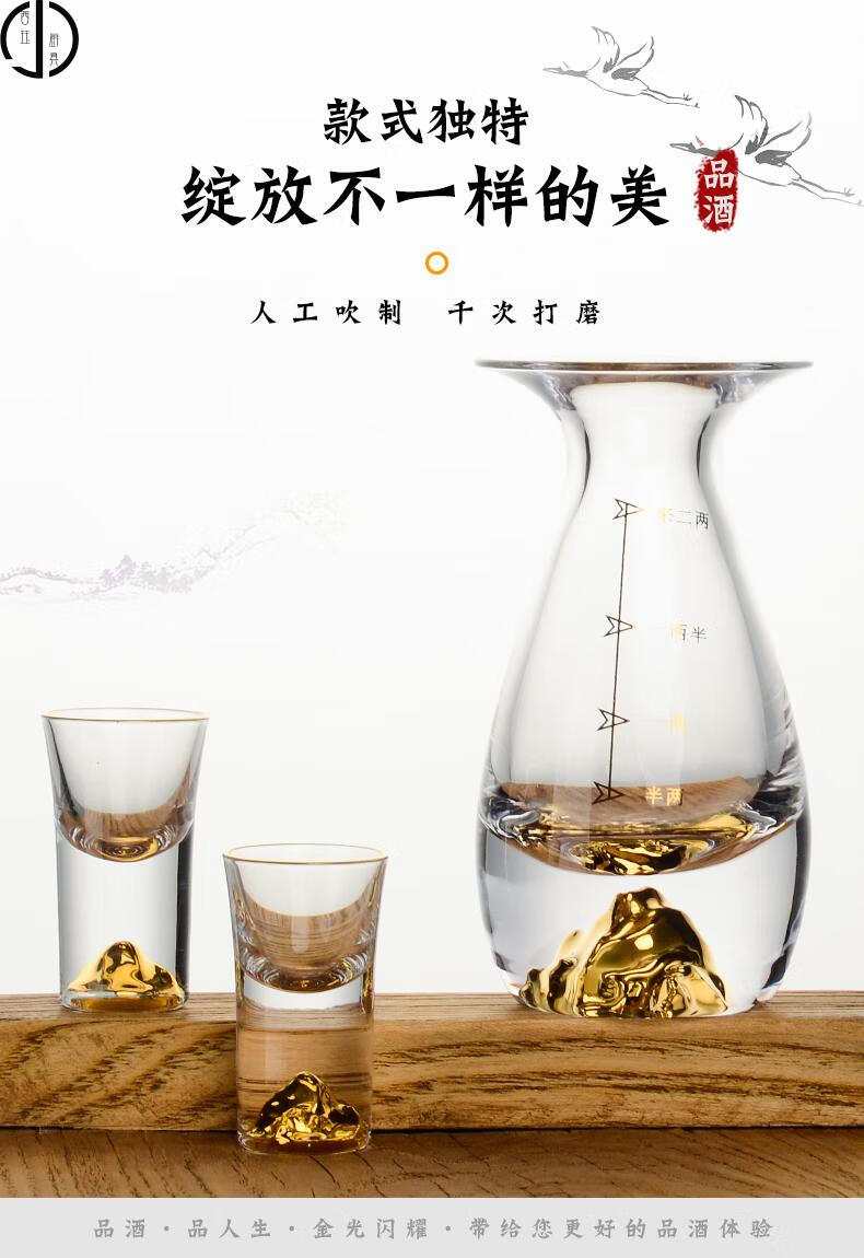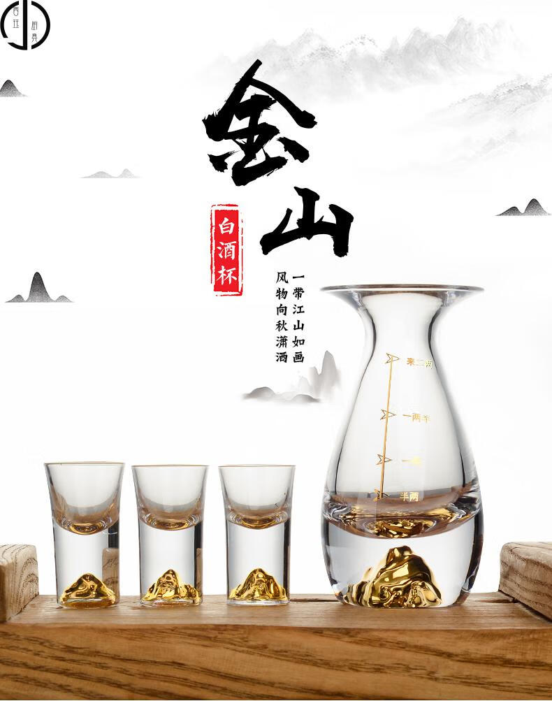 Xijue Household Gold Foil White Wine Cup Two Liang Jinshan Wine Divider Portable Crystal Glass Sealed Small Flask Portable Wine Cup (1 Pot 6 Cups) 10ml Jinshan Cup + 100ml Jinshan Pot