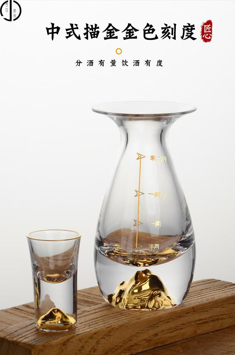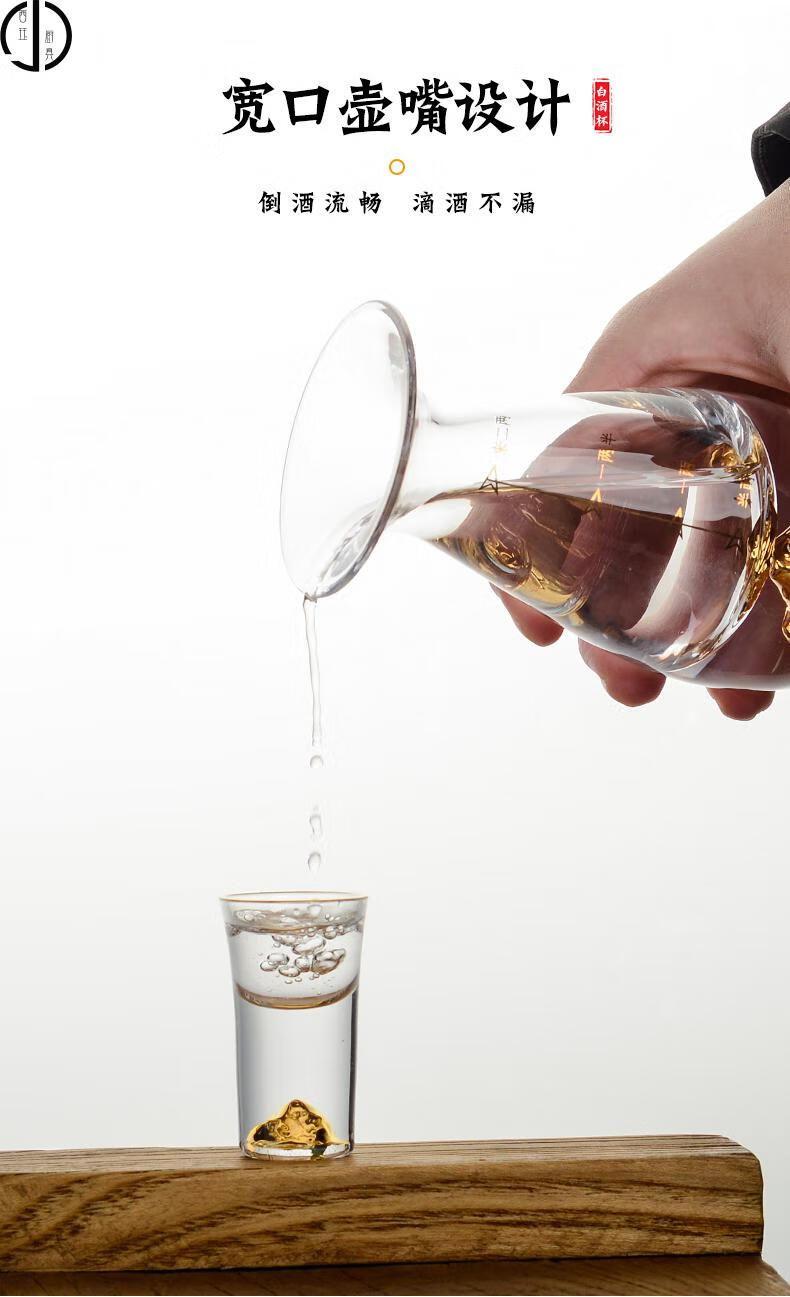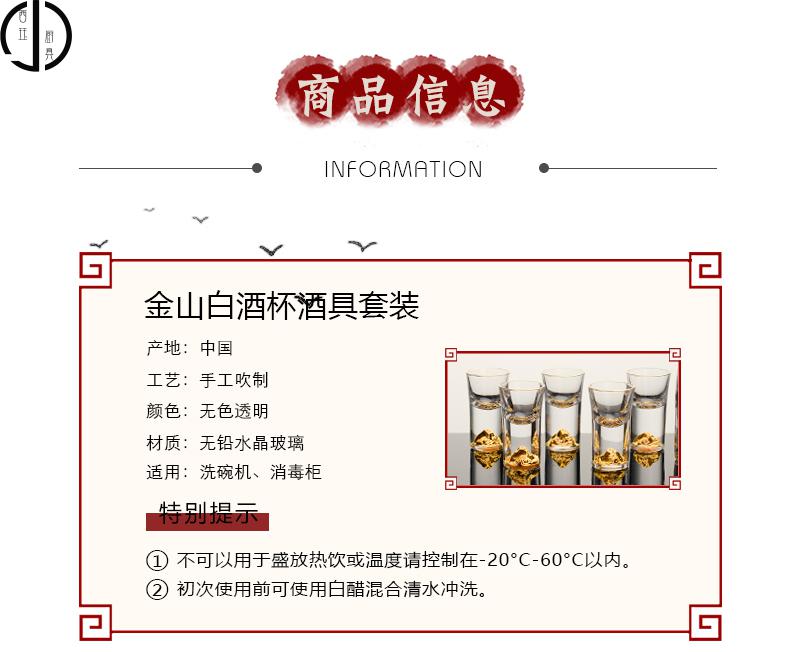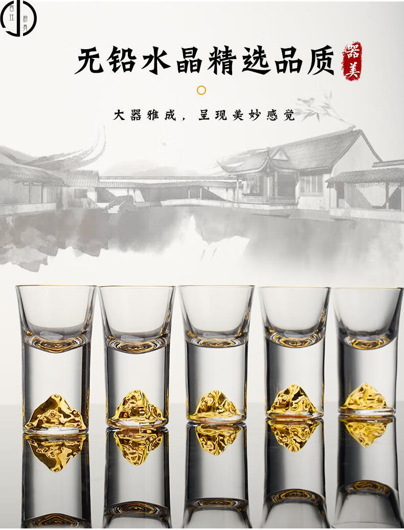 Xijue Household Gold Foil White Wine Cup Two Liang Jinshan Wine Divider Portable Crystal Glass Sealed Small Flask Portable Wine Cup (1 Pot 6 Cups) 10ml Jinshan Cup + 100ml Jinshan Pot