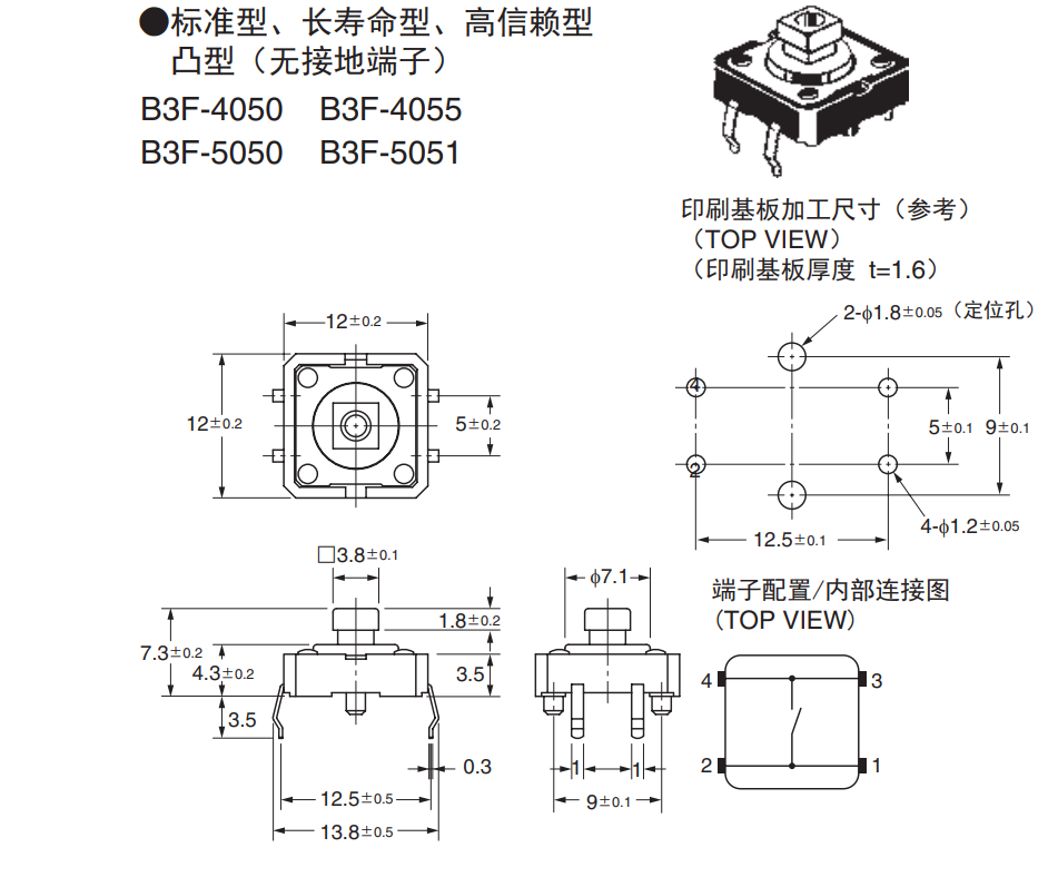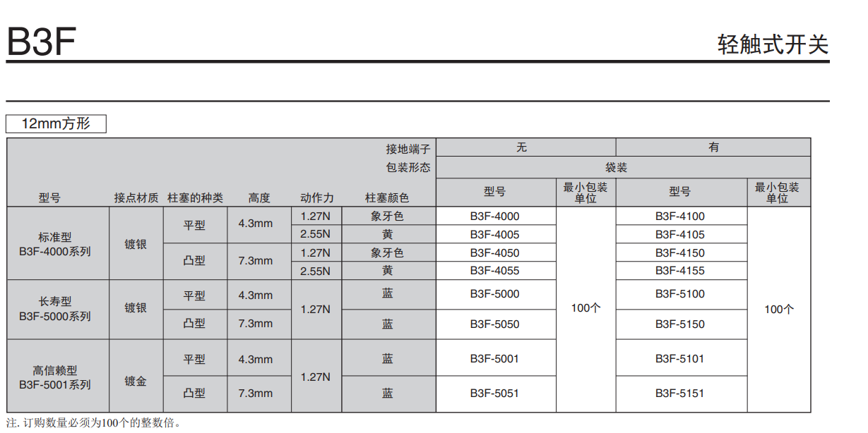 Original Omron micro touch switch B3F-4055 button button 12*12*7.3mm 4 feet B3F-4055 100 pieces in a pack