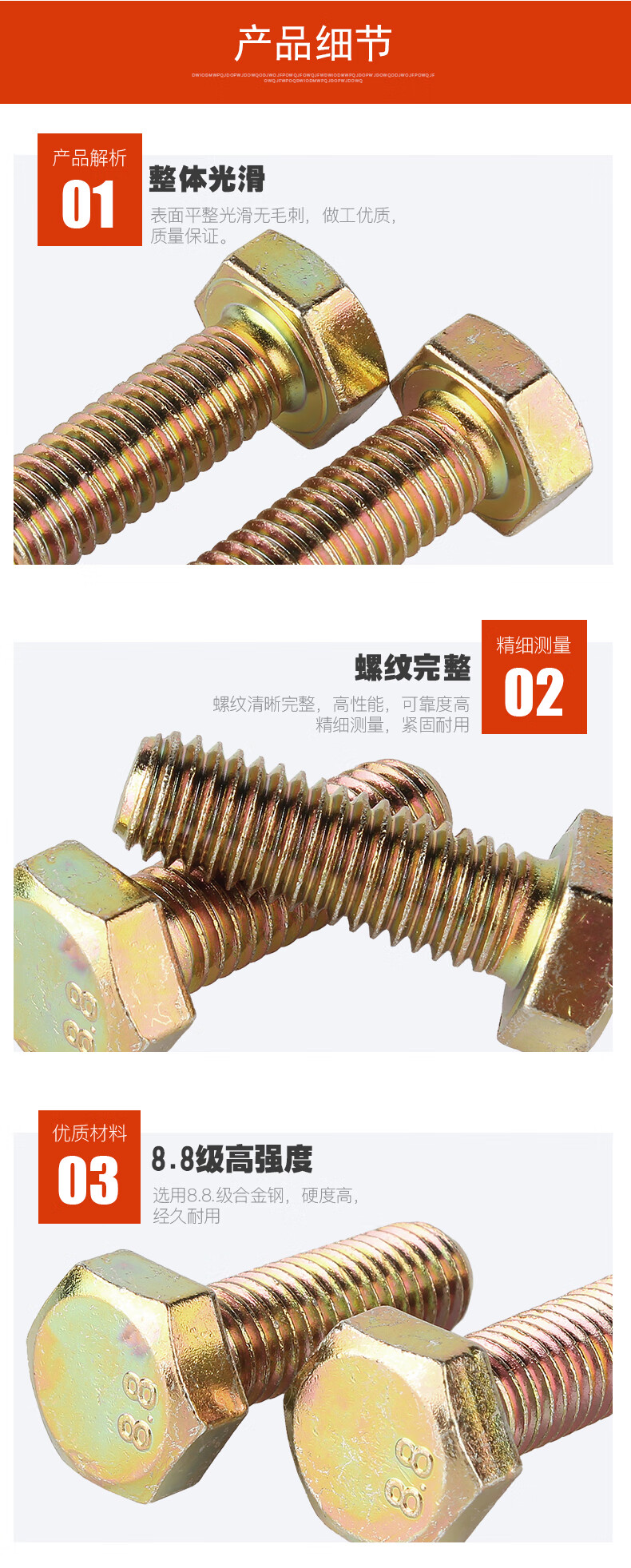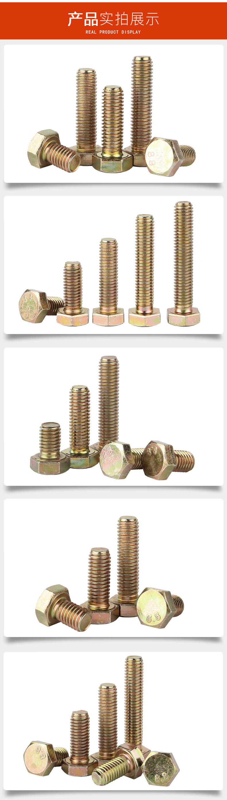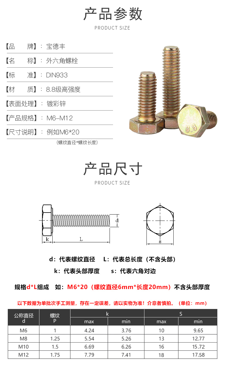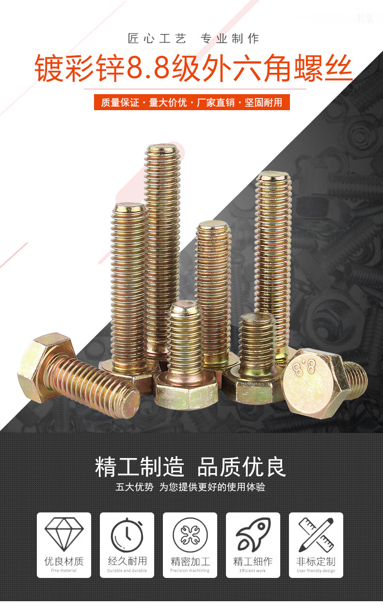 Baodefeng Colored zinc grade 8.8 external hexagonal screws, extended screws, full thread external hexagonal bolt accessories, national standard fasteners M10x60 5 pieces, color zinc grade 8.8