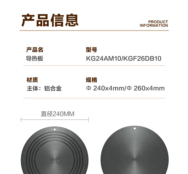 SUPOR pot heat conduction plate multifunctional gas stove heating insulation plate anti-burn black thermal pad heating and defrosting fire insulation pot pad Specification 24cm Thickness 4mm