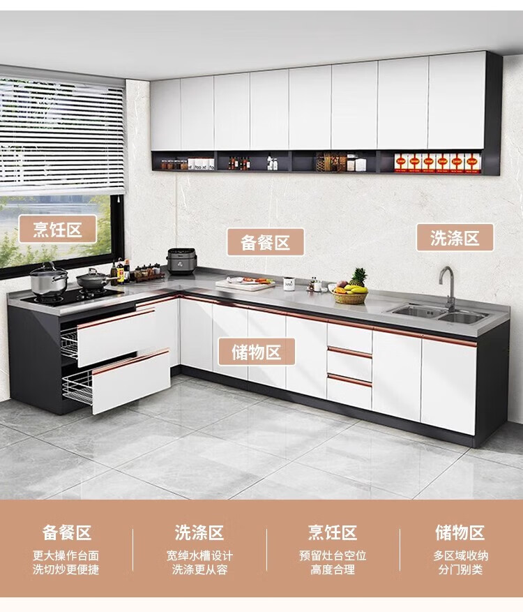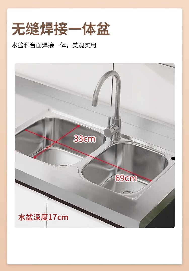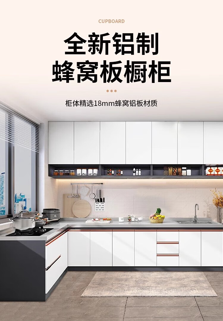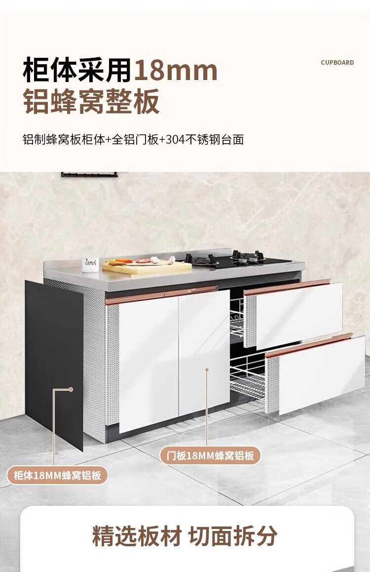 Ao Yibo 304 stainless steel cabinet stove cabinet kitchen cabinet integrated sink cabinet cupboard full honeycomb aluminum high-end cabinet 180cm stove model