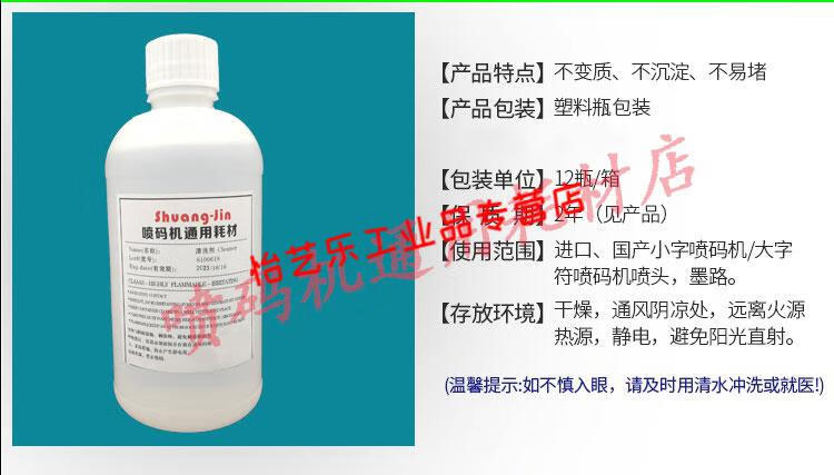 Special cleaning agent for inkjet printer, ink cleaning agent, diluent, solvent removal, ink removal agent, wiping inkjet code removal water, 1000 ml ink cleaning agent