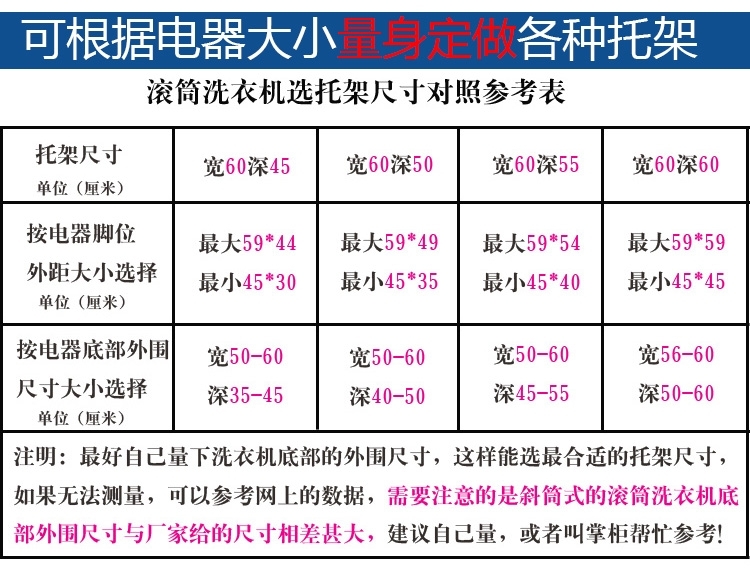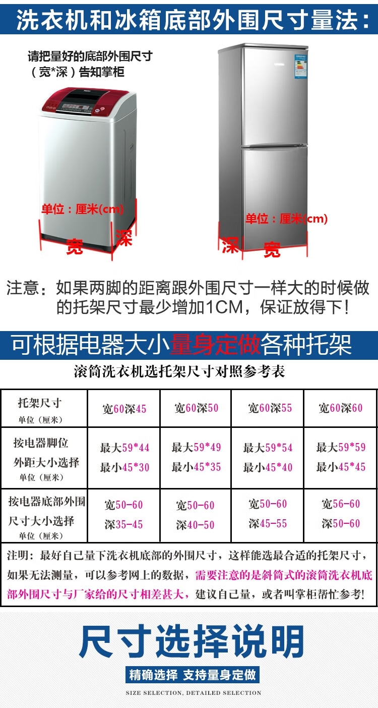 Guqin washing machine base heightened stainless steel washing machine rack drum disinfection cabinet bracket refrigerator bracket tripod customized bracket size width * depth * height
