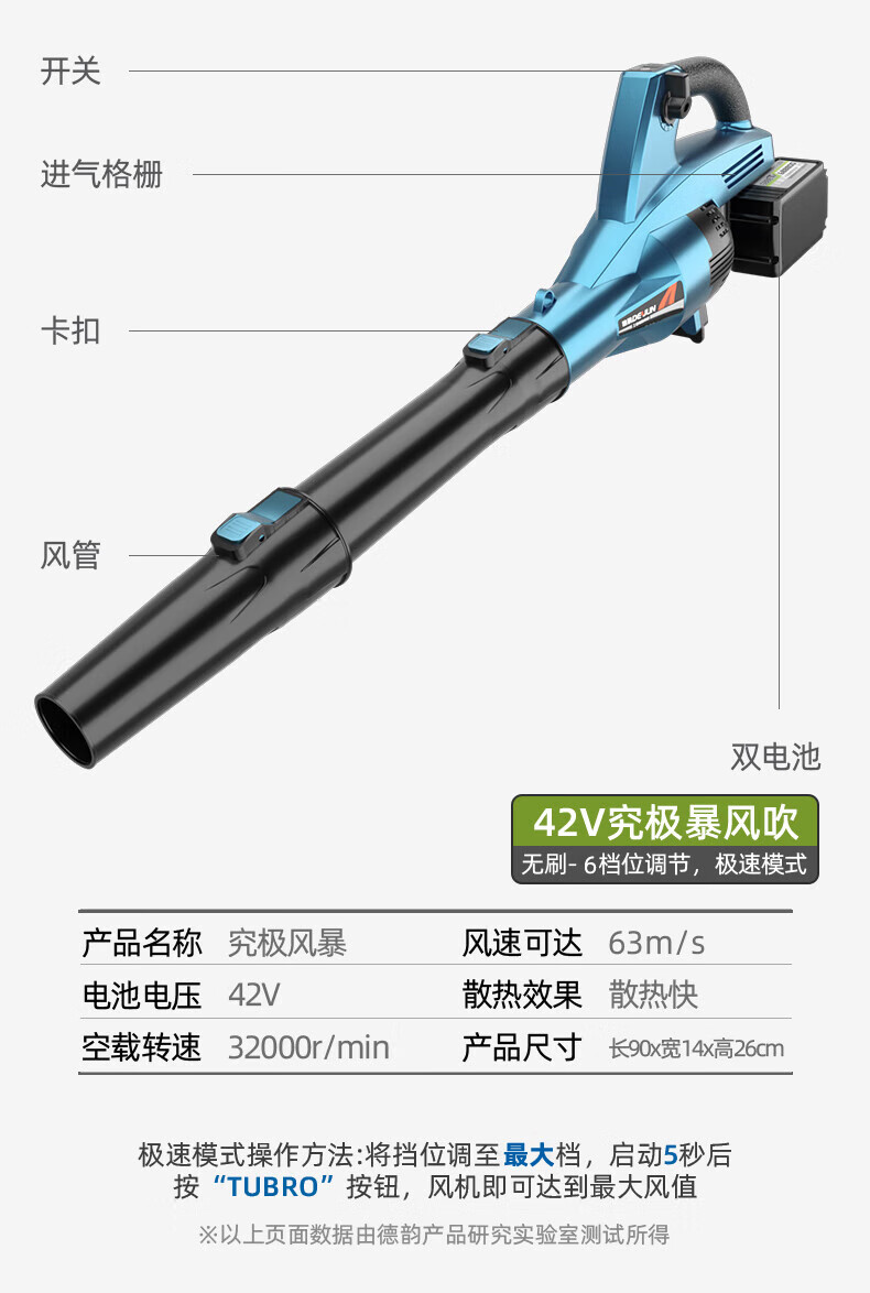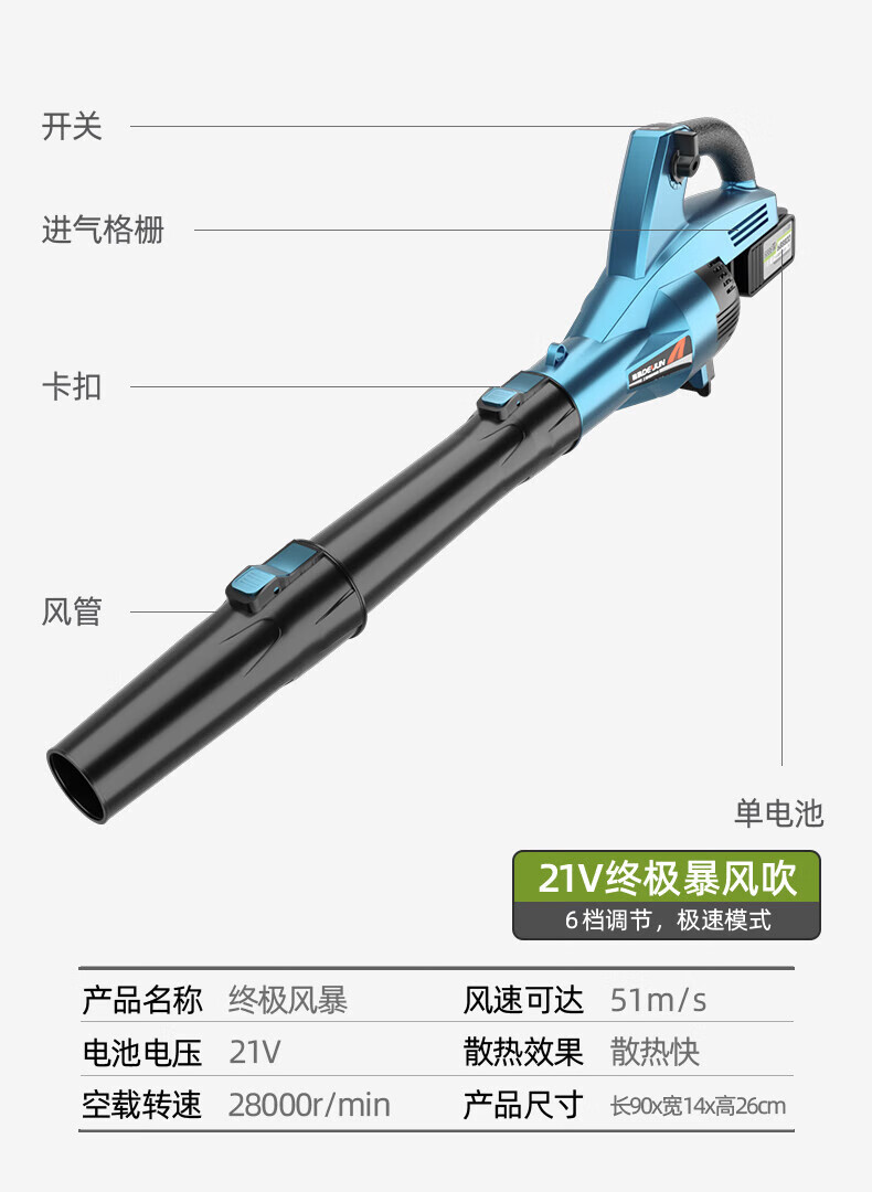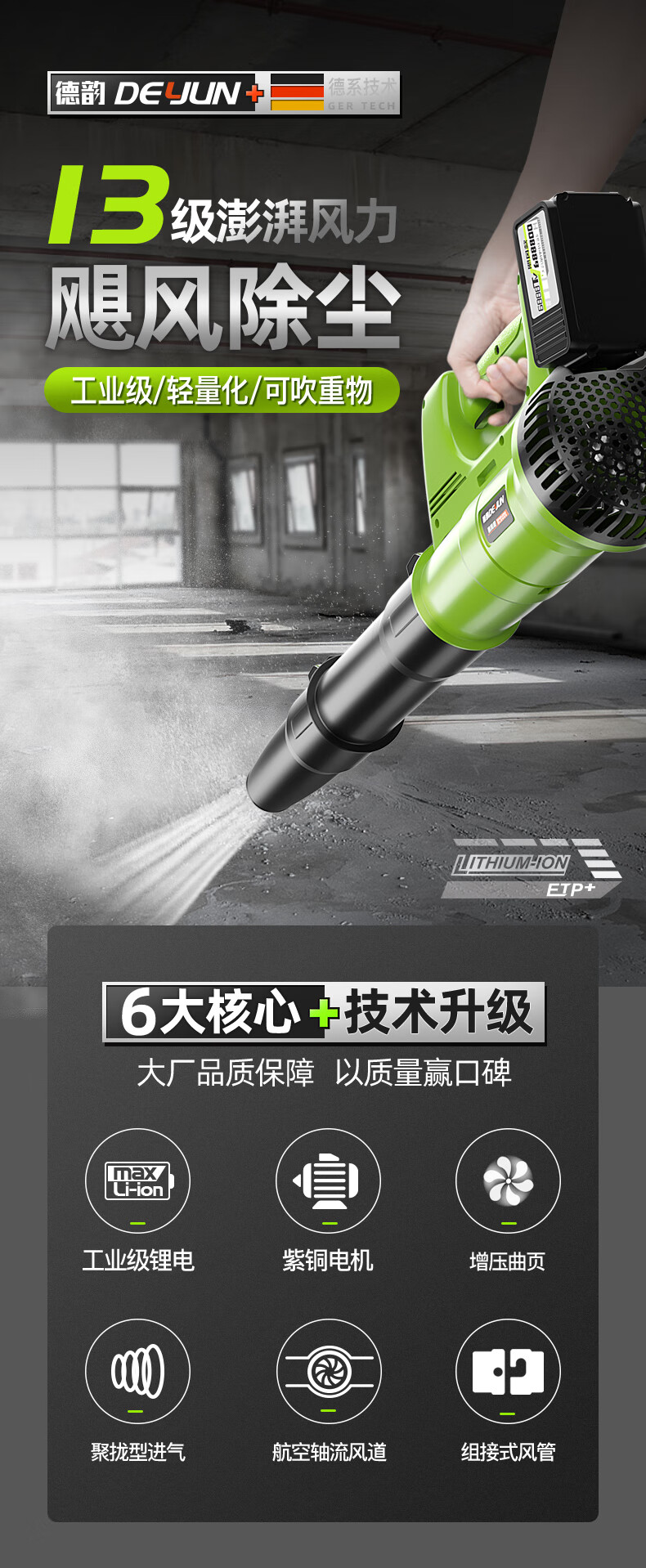 Deyun Electric Rechargeable Blower Lithium Battery High Power Industrial Storm Gun Snow Blower Soot Blower Electric Farm Tool DY-Baofengchui 6888TV2 Electric 1 Charge-Hurricane Model (21V)