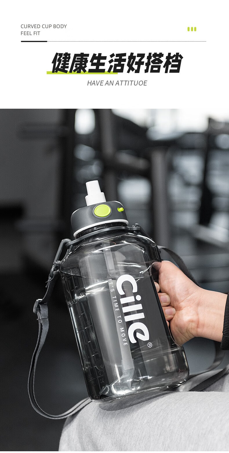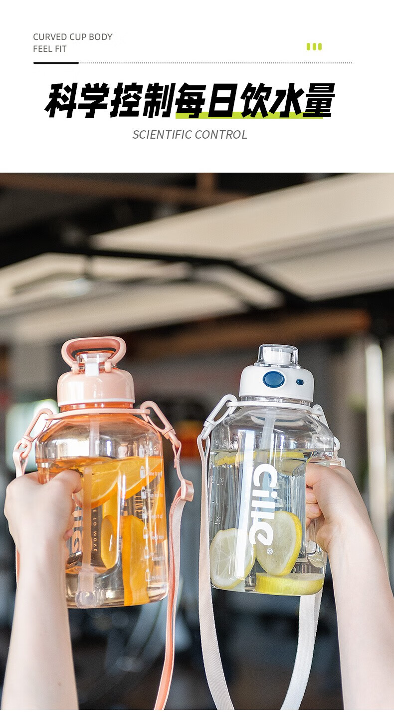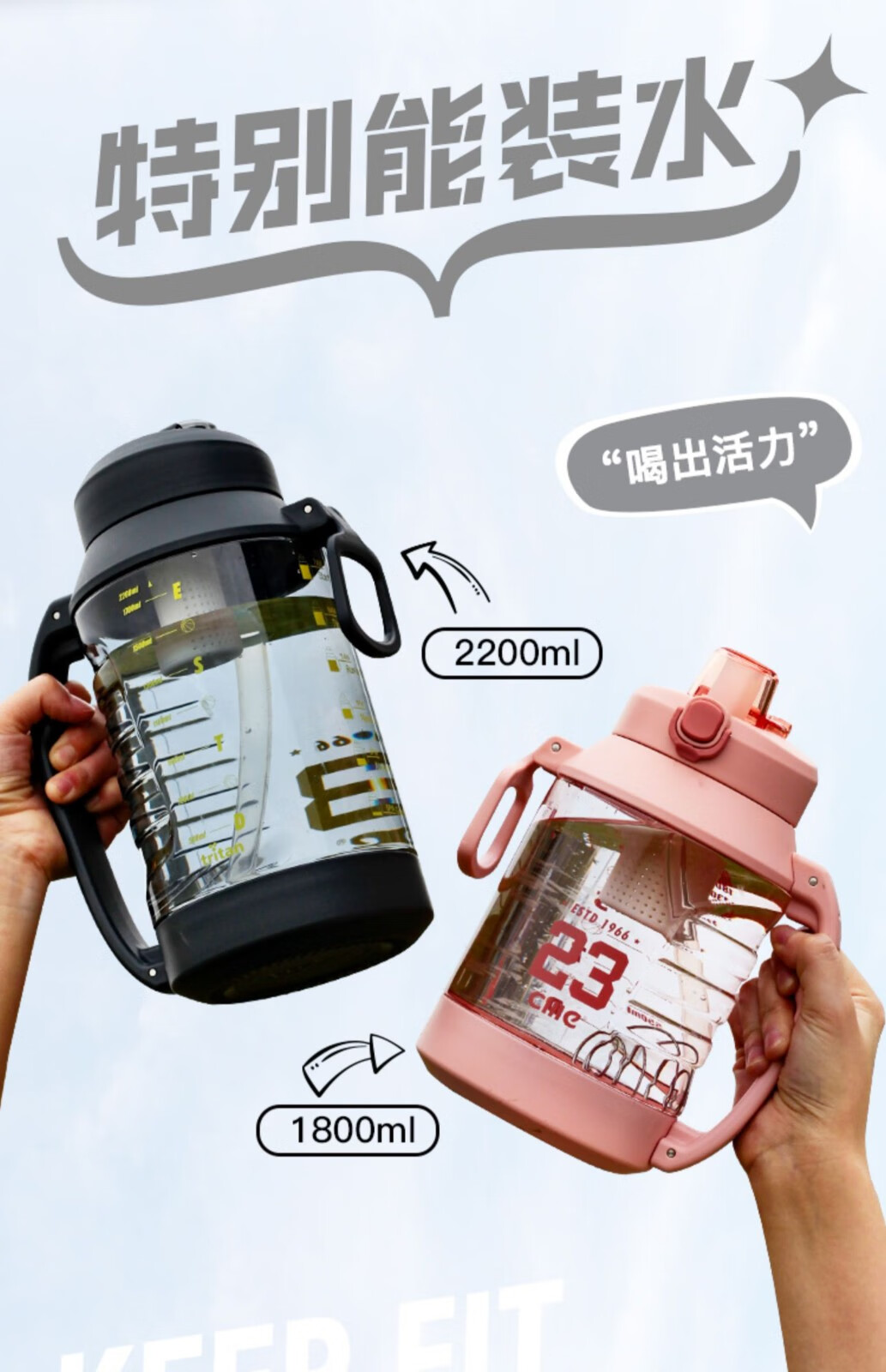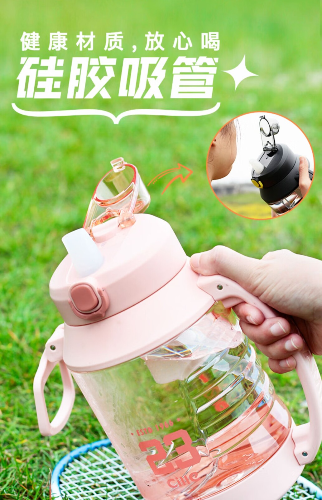 Xile Super Large Capacity Sports and Fitness Water Bottle High Temperature Resistant Water Bottle Tritan Space Cup Big Belly Bucket Pink 535-1000ML- Straw + Strap