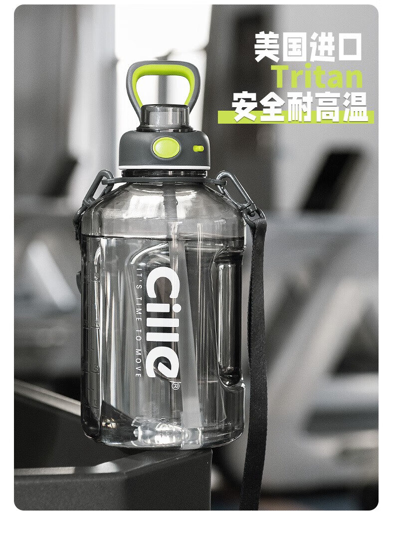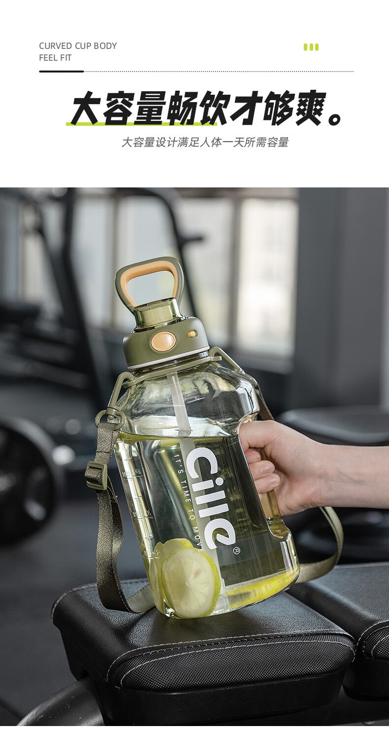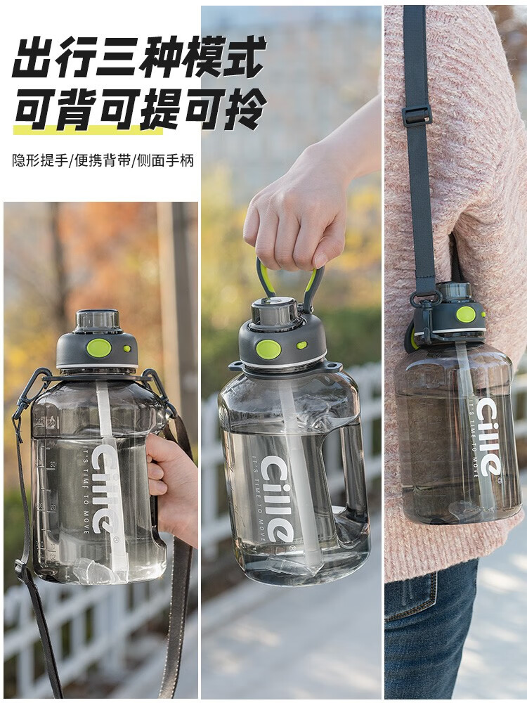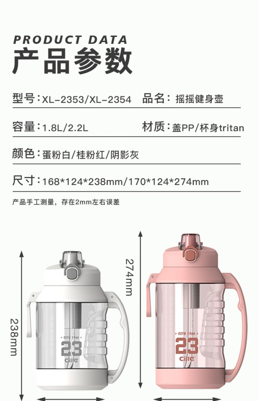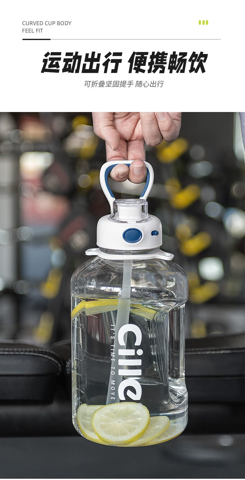 Xile Super Large Capacity Sports and Fitness Water Bottle High Temperature Resistant Water Bottle Tritan Space Cup Big Belly Bucket Pink 535-1000ML- Straw + Strap