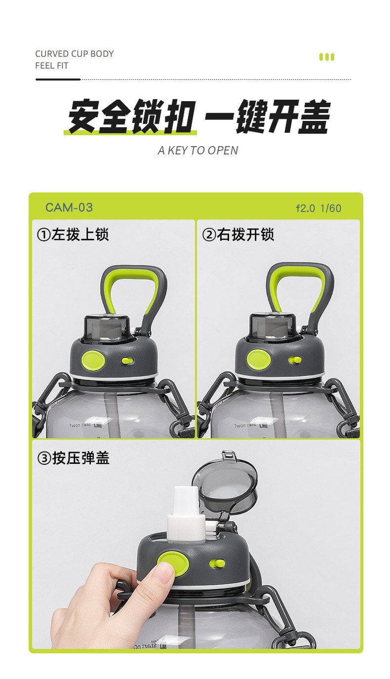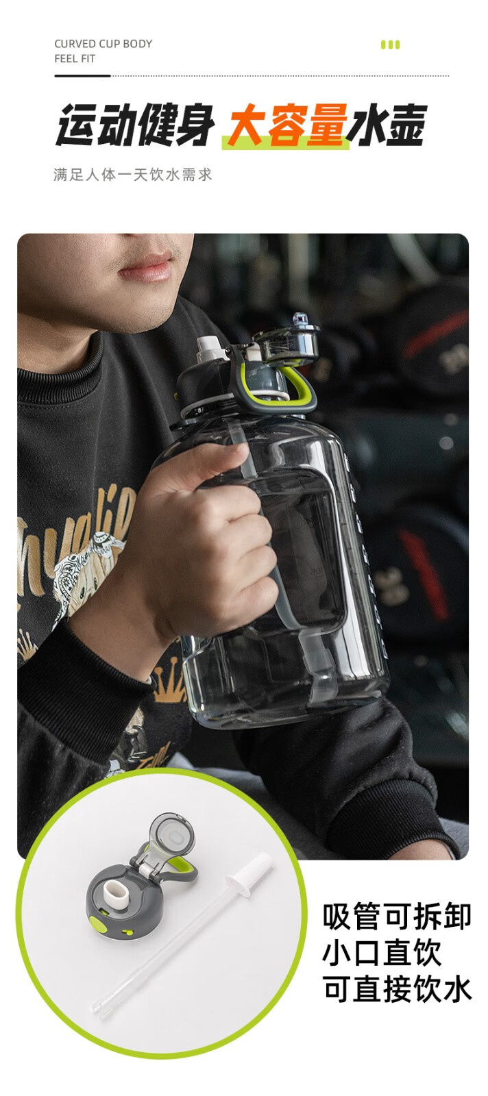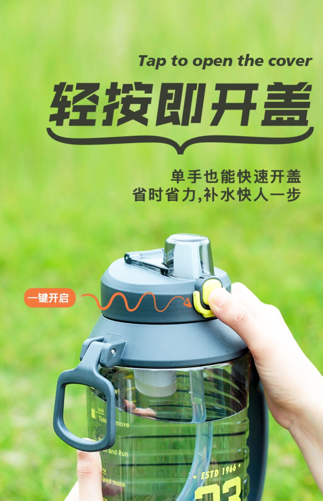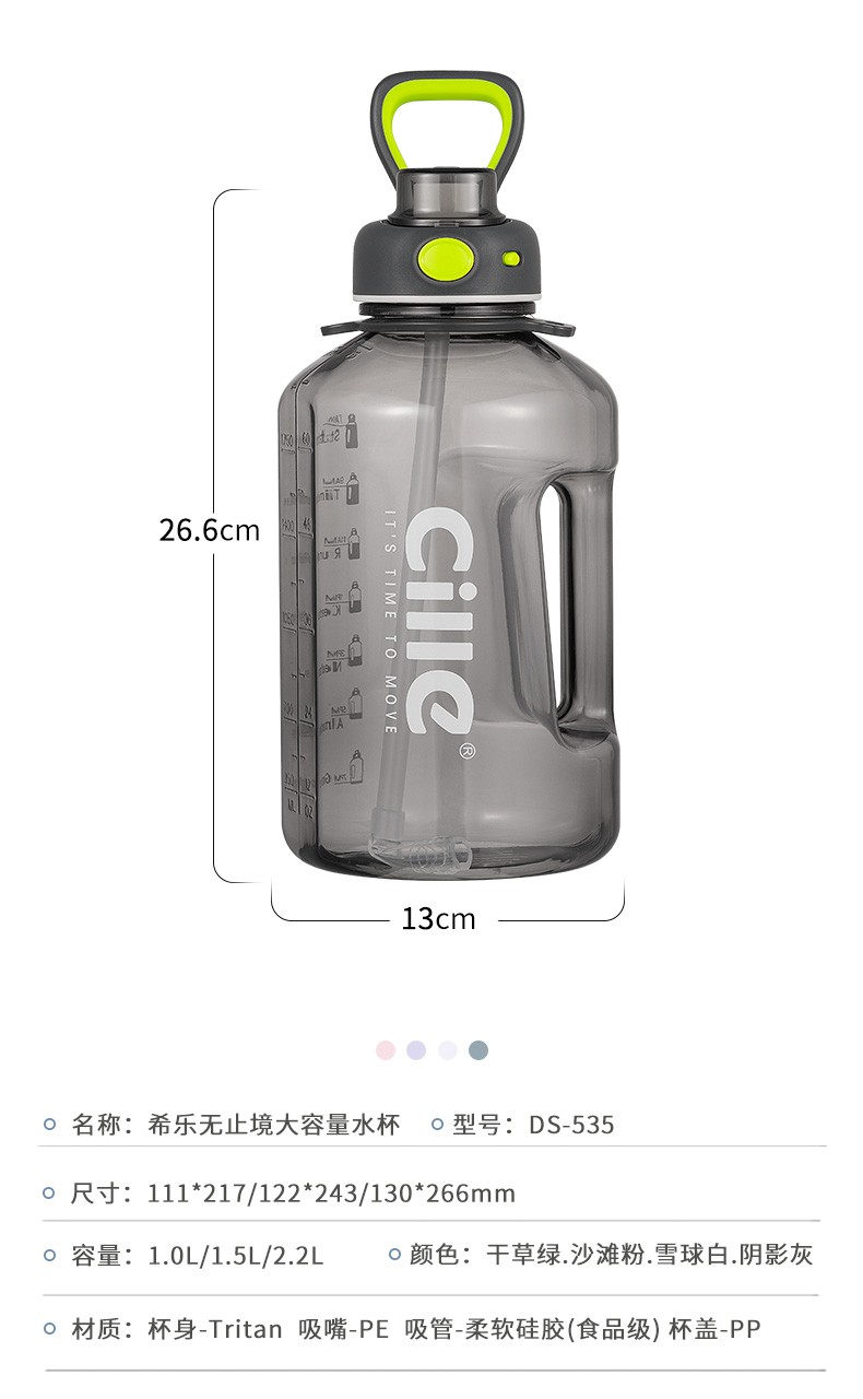 Xile Super Large Capacity Sports and Fitness Water Bottle High Temperature Resistant Water Bottle Tritan Space Cup Big Belly Bucket Pink 535-1000ML- Straw + Strap