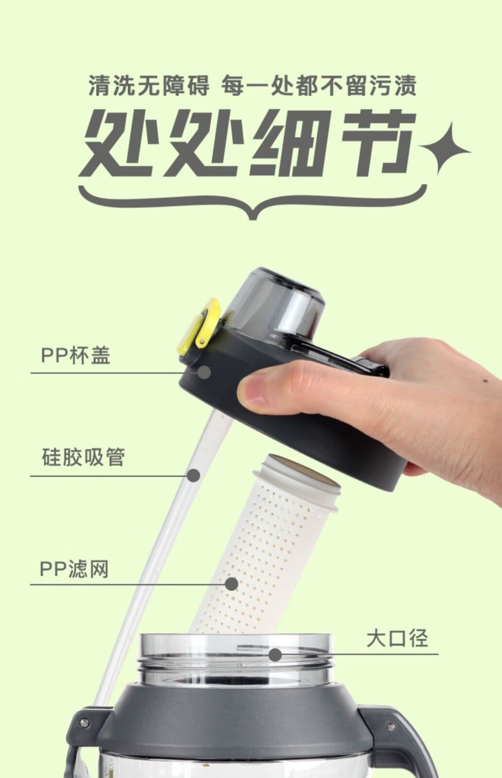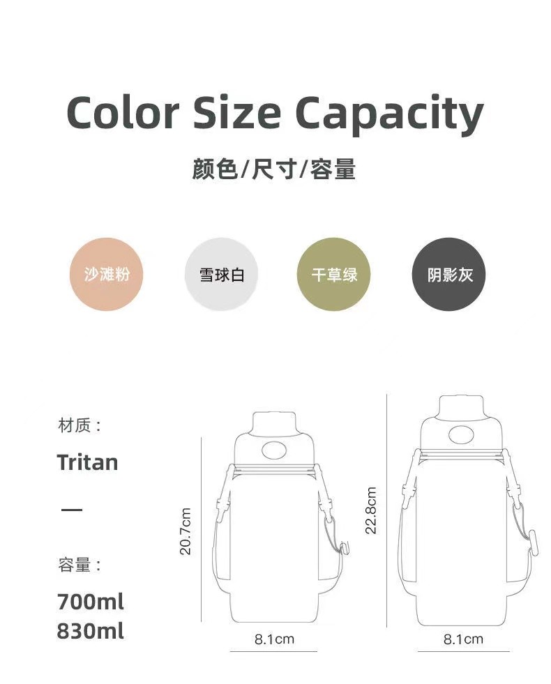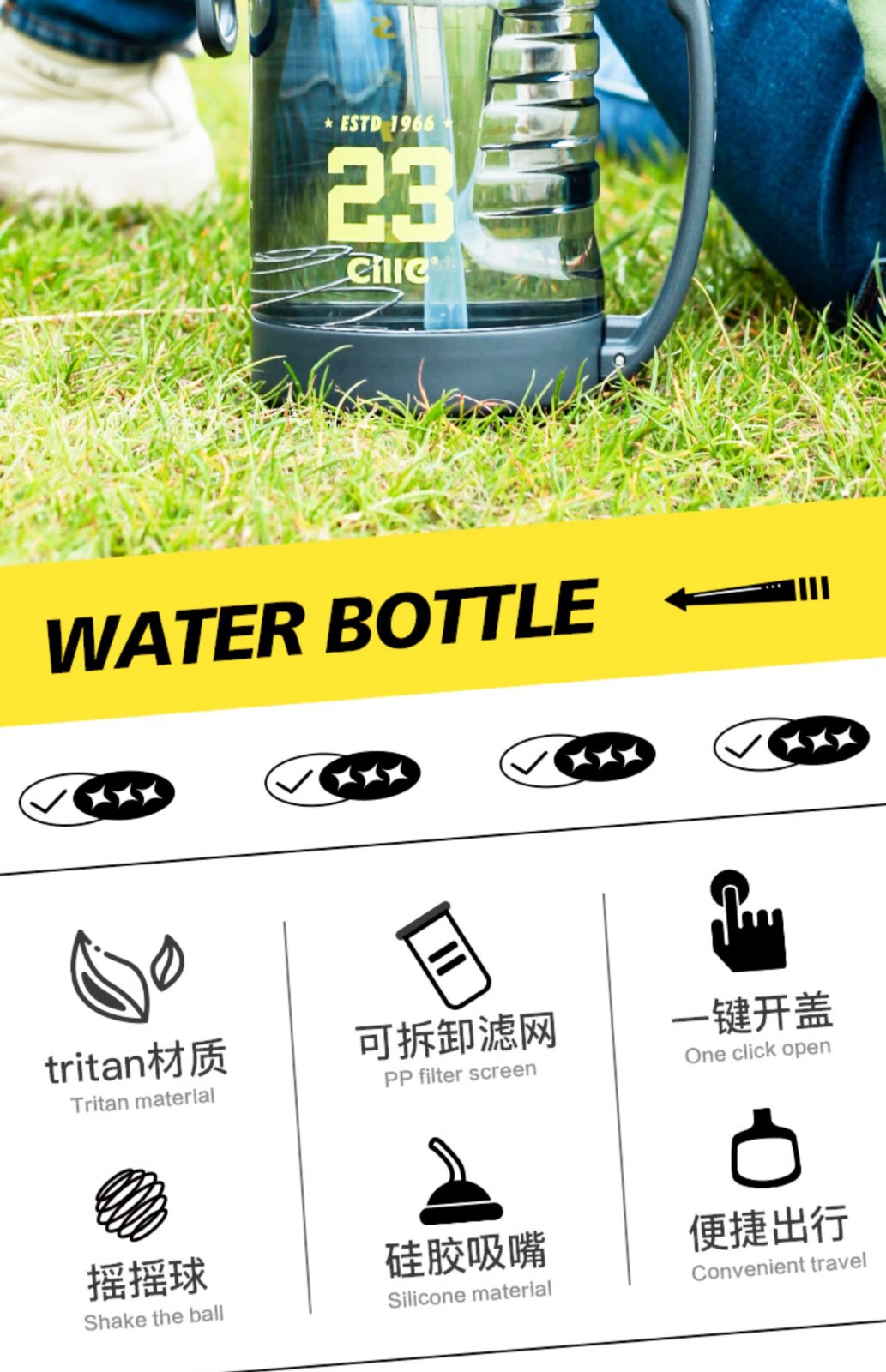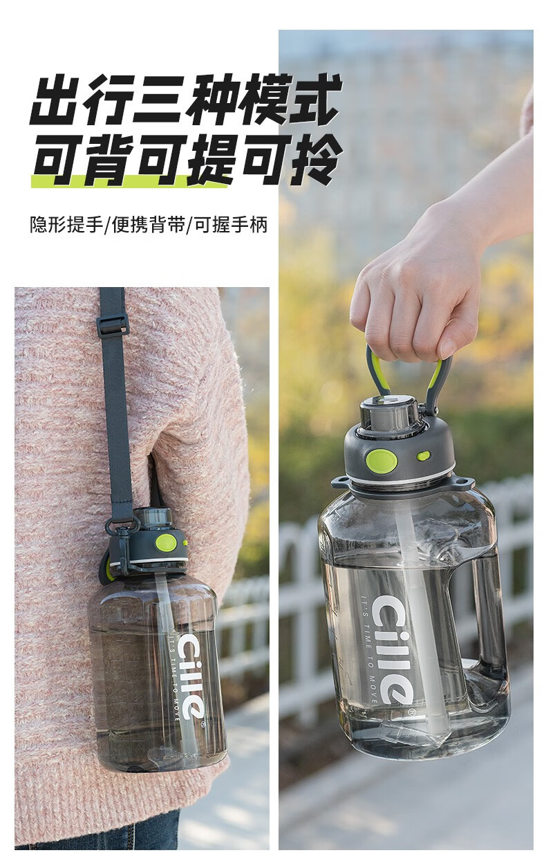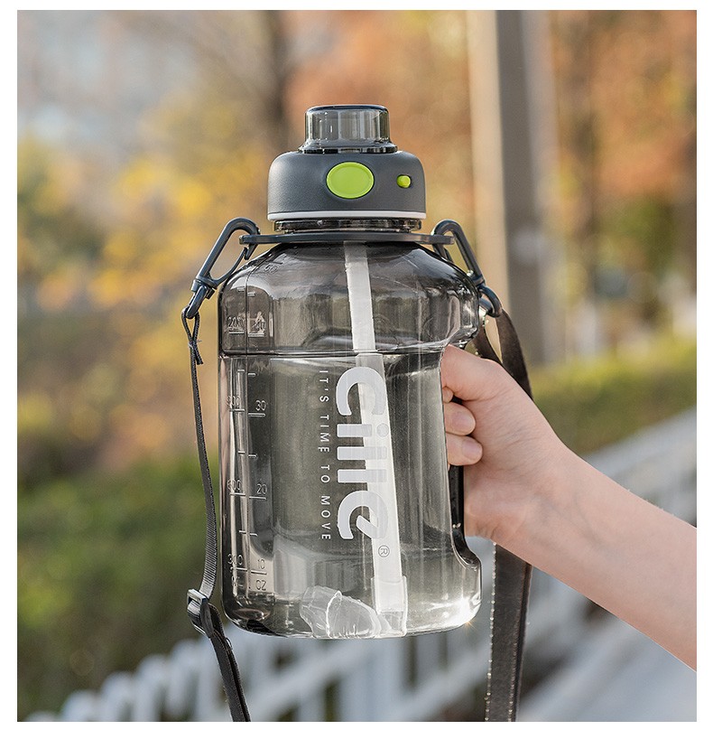 Xile Super Large Capacity Sports and Fitness Water Bottle High Temperature Resistant Water Bottle Tritan Space Cup Big Belly Bucket Pink 535-1000ML- Straw + Strap