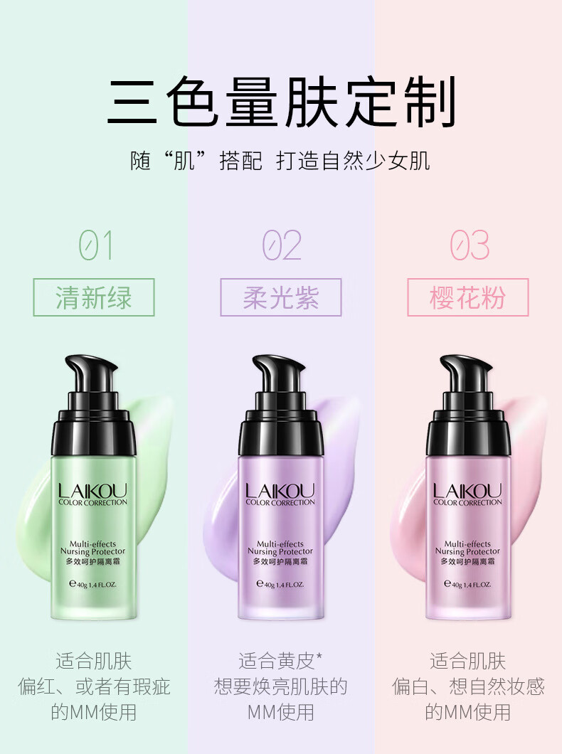 Laiko clean out good skin Laiko isolation cream three colors red, green and purple natural makeup base moisturizing student purple