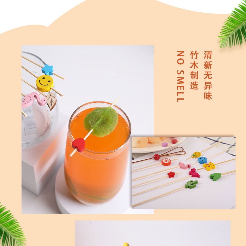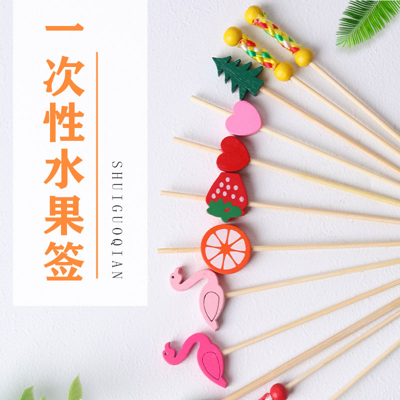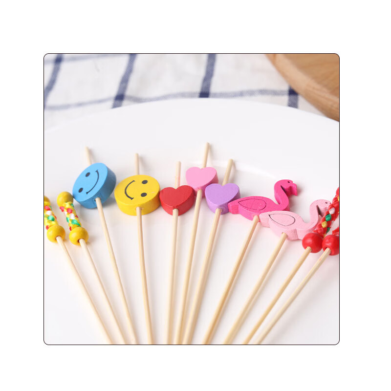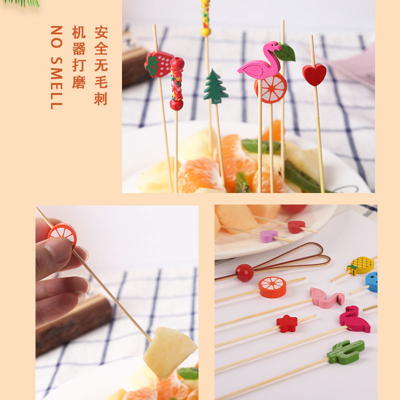 Yisheng disposable fruit picks, high-quality bamboo flower picks, fruit forks, creative art picks, cocktail picks, sandwich fruit picks, 12cm double red beads, 100 pieces